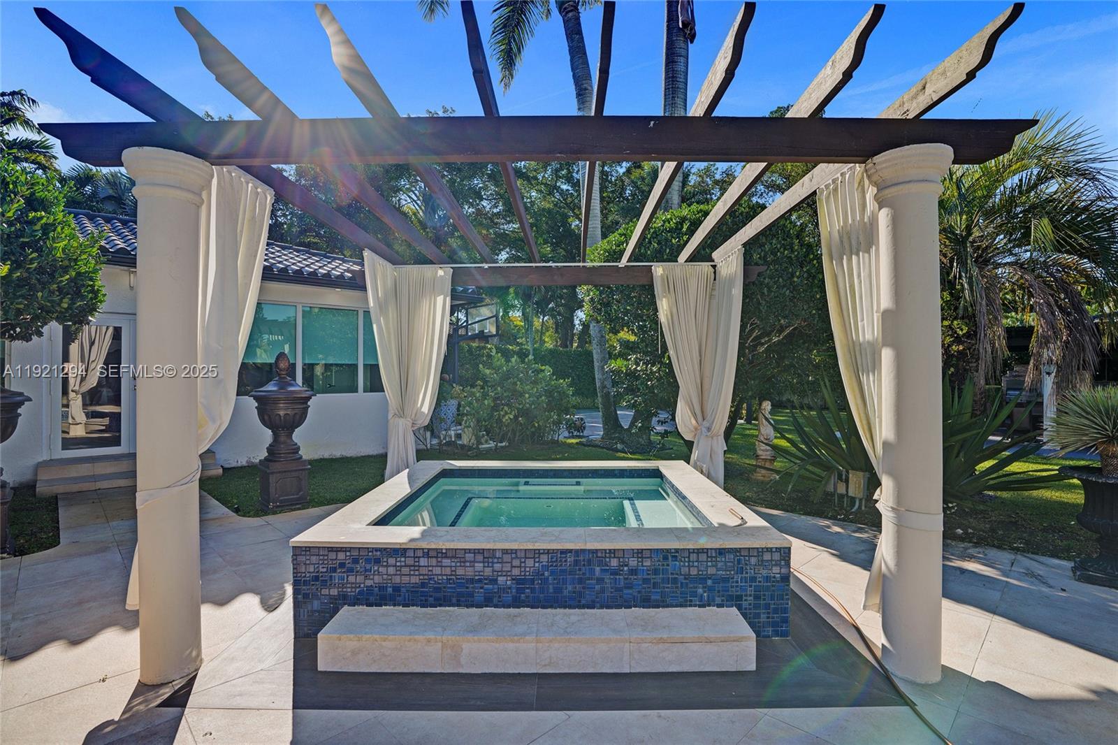 Exquisite, fully renovated home featuring a 4,496 SF main house plus a spacious guest house. Thoughtfully designed spaces, high ceilings, and elegant finishes add scale and comfort. The kitchen boasts stainless steel appliances and a gas range, as well as impact windows and doors. Bright and functional living spaces flow seamlessly to the outdoors, creating the perfect balance. The property is fully gated and surrounded by lush landscaping, offering multiple lounging areas throughout the garden, a summer kitchen, a gazebo, and a private pool with a jacuzzi—providing ample space for entertainment.