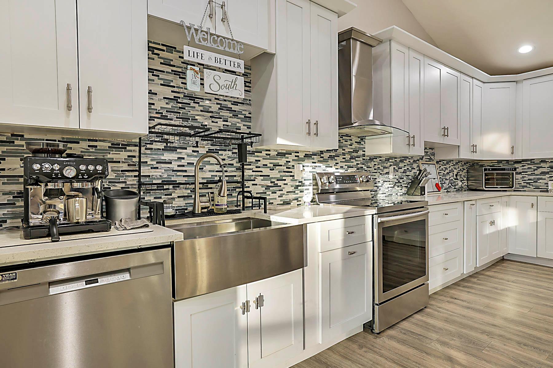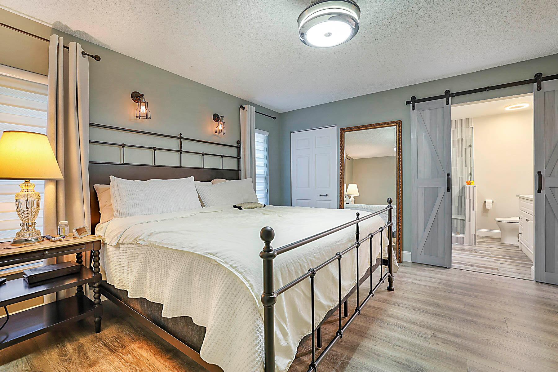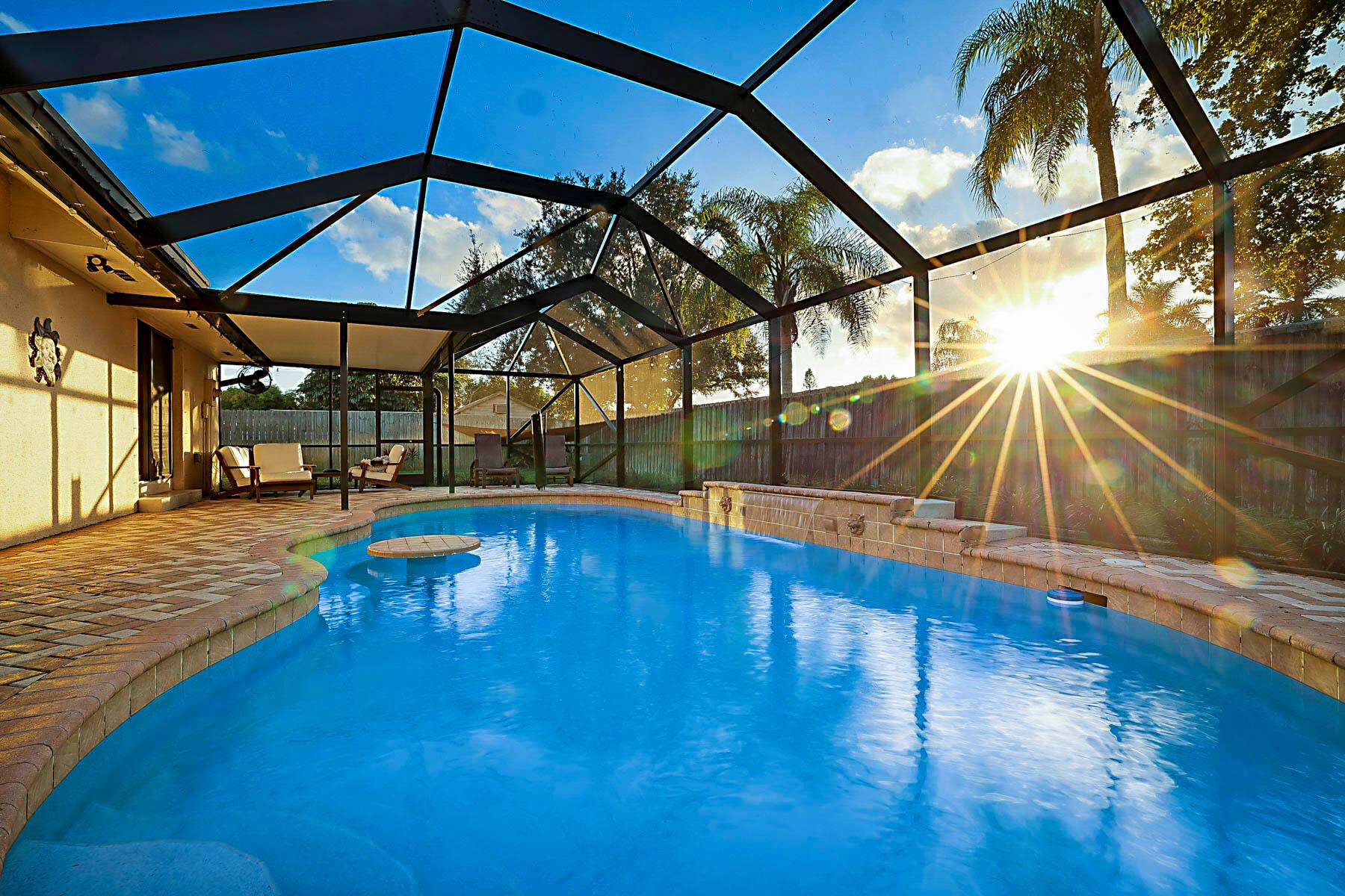 Absolutely stunning open concept floor plan featuring a dream kitchen offering plenty of storage, stainless steel appliances and a huge island, fully remodeled bathrooms, vaulted ceilings, in-ground pool, screen enclosure and aluminum pan roof installed in 2023, roof replaced in 2022, all new impact glass 2024, newer A/C and hot water heater, side entry garage and a fenced-in yard. This is a truly special home and not to be missed!