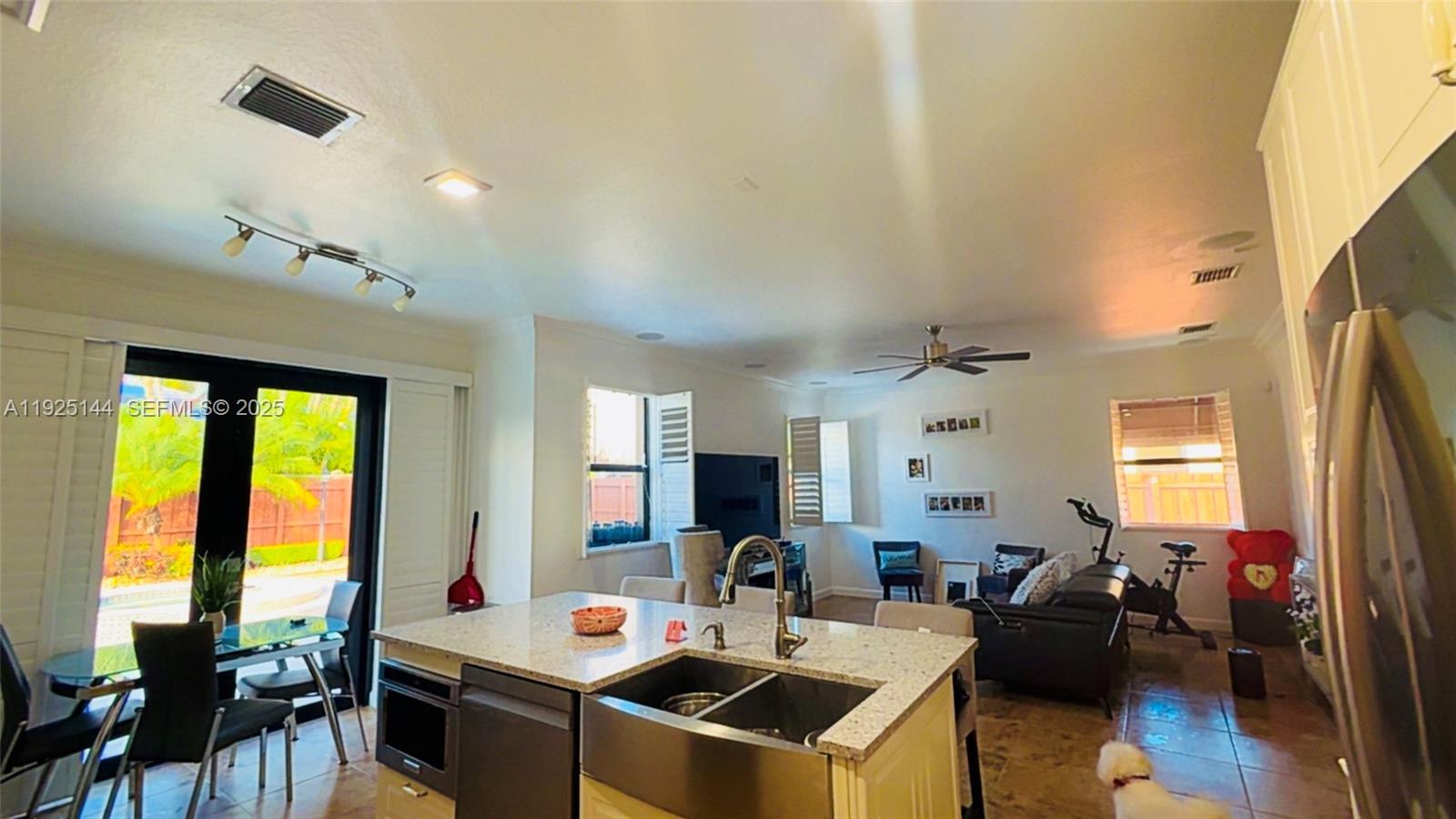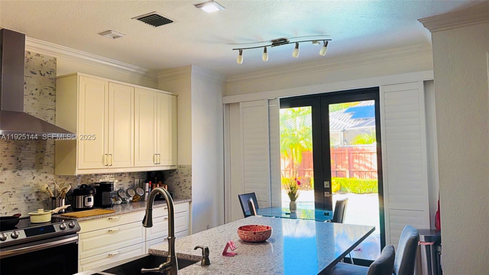 Beautiful 4/3 single-family home on an oversized lot with a spectacular backyard. Features include a freeform pool and spa, travertine deck, tiki hut, and professional landscaping. Mediterranean-style exterior with stone façade, keyless entry, 2-car garage, accordion shutters, pavers, concrete borders, and side yard with room for a boat. Inside, you’ll find a welcoming foyer, formal living and dining areas, tile throughout with wood flooring in the bedrooms, separate laundry room, volume ceilings, crown moldings, and plantation shutters. The spacious upgraded kitchen offers granite countertops, stainless steel appliances, breakfast area, and an island snack bar. This one won’t last!
