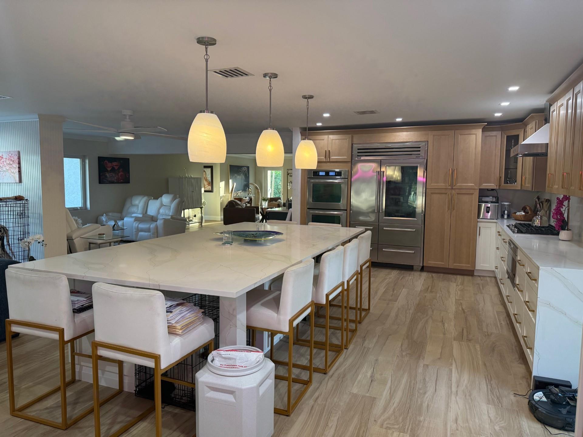 STUNNING WATERFRONT HOME COMPLETELY REMODELED FROM TOP TO BOTTOM IN 2025. THE FABULOUS OVERSIZED CHEF'S KITCHEN FEATURES A 12' ISLAND, A SUB ZERO REFRIGERATOR, PERFECT FOR COOKING, GATHERING, & ENTERTAINING. NEW METAL ROOF (2024), ALL IMPACT WINDOWS PROVIDE PEACE OF MIND & LONG TERM VALUE. INSIDE YOU'LL FIND 6 INCH BASEBOARDS, A STONE FIREPLACE, 3 BATHROOMS, EACH FINISHED WITH DESIGNER TOUCHES. THE PRIMARY SUITE IS A TRUE RETREAT, WITH A SOAKING TUB, OPEN SHOWER, ACCENT WALL IN THE MAIN BEDROOM. EXQUISITE FLOORING THROUGHOUT THE ENTIRE RESIDENCE. OUTDOORS THE HOME CONTINUES TO IMPRESS WITH WIDE WATERFRONT VIEWS, 175' ON THE WIDE CANAL, BEAUTIFUL LANDSCAPING, POOL & SPA, AND A SERENE KOI POND, CREATING THE PERFECT SETTING FOR RELAXING OR HOSTING GUESTS. IDEAL FOR A LARGE FAMILY . NO HOA!