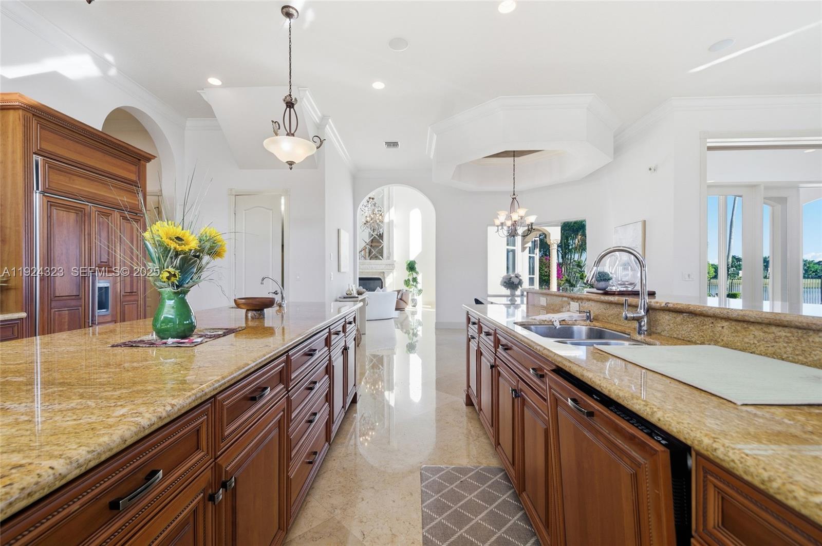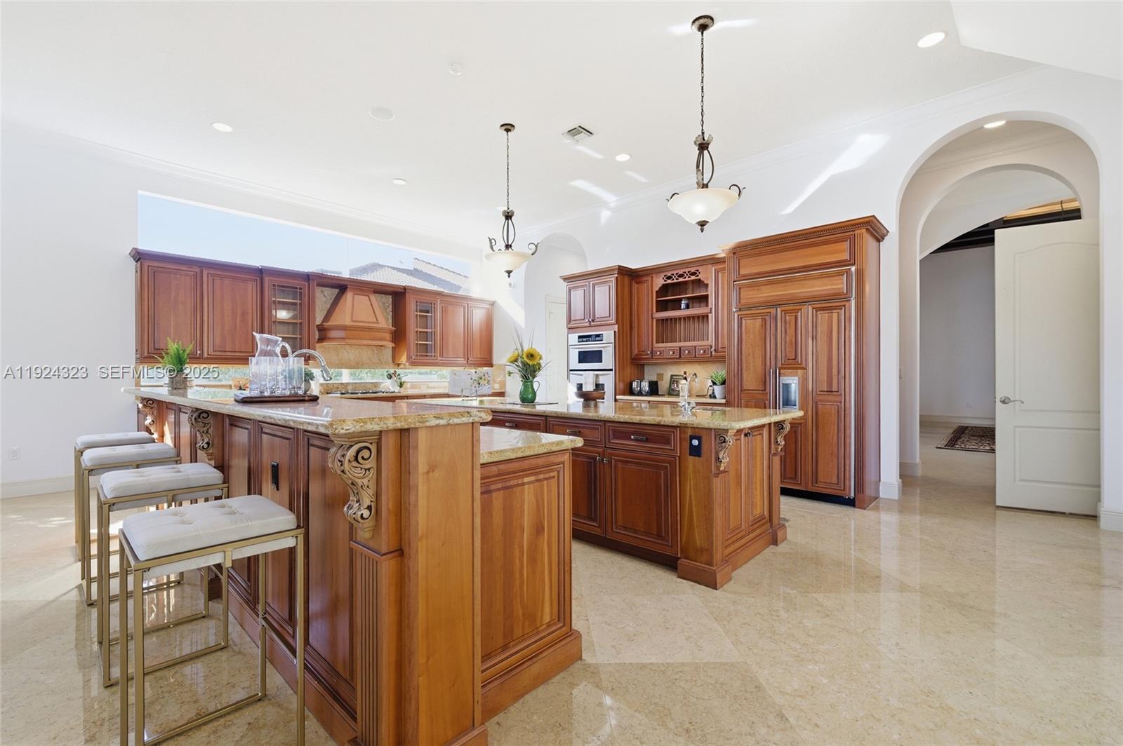Mediterranean-inspired estate set on long, peaceful lakefront in the gated community of Windmill Reserve. This 6-bedroom, 7.5-bath residence offers more than 8,500 sqft of elegant living space with grand living room centered around marble fireplace. Chef’s kitchen features oversized center island, Sub-Zero refrigeration, gas cooktop, wall oven with warming drawer, breakfast area, and dedicated wine storage room. Spacious butler’s pantry and oversized laundry room sit nearby for added convenience. First floor includes billiard room with full bar, formal dining room, spacious family room, full guest bath, powder room, and additional first-floor office separate from private office located within primary suite. Primary suite occupies its own private wing with media room, sitting area, dual walk-in closets, dual powder rooms, spa-style bath, and direct access to outdoor areas. Upstairs, 4 additional ensuite bedrooms with walk-in closets, open hallway overlooking living areas below to create a bright, connected second level. Outdoor living is designed for year-round enjoyment with long lake views, heated pool with water feature, and summer kitchen enhanced with roller shades for comfortable, shaded entertaining. Additional upgrades include full impact windows and doors, new electric wiring and circuit breaker, elevator, Savant sound system, and oversized 3 car garage. This residence blends space, function, and refined living in one of Weston’s most desirable luxury communities.
