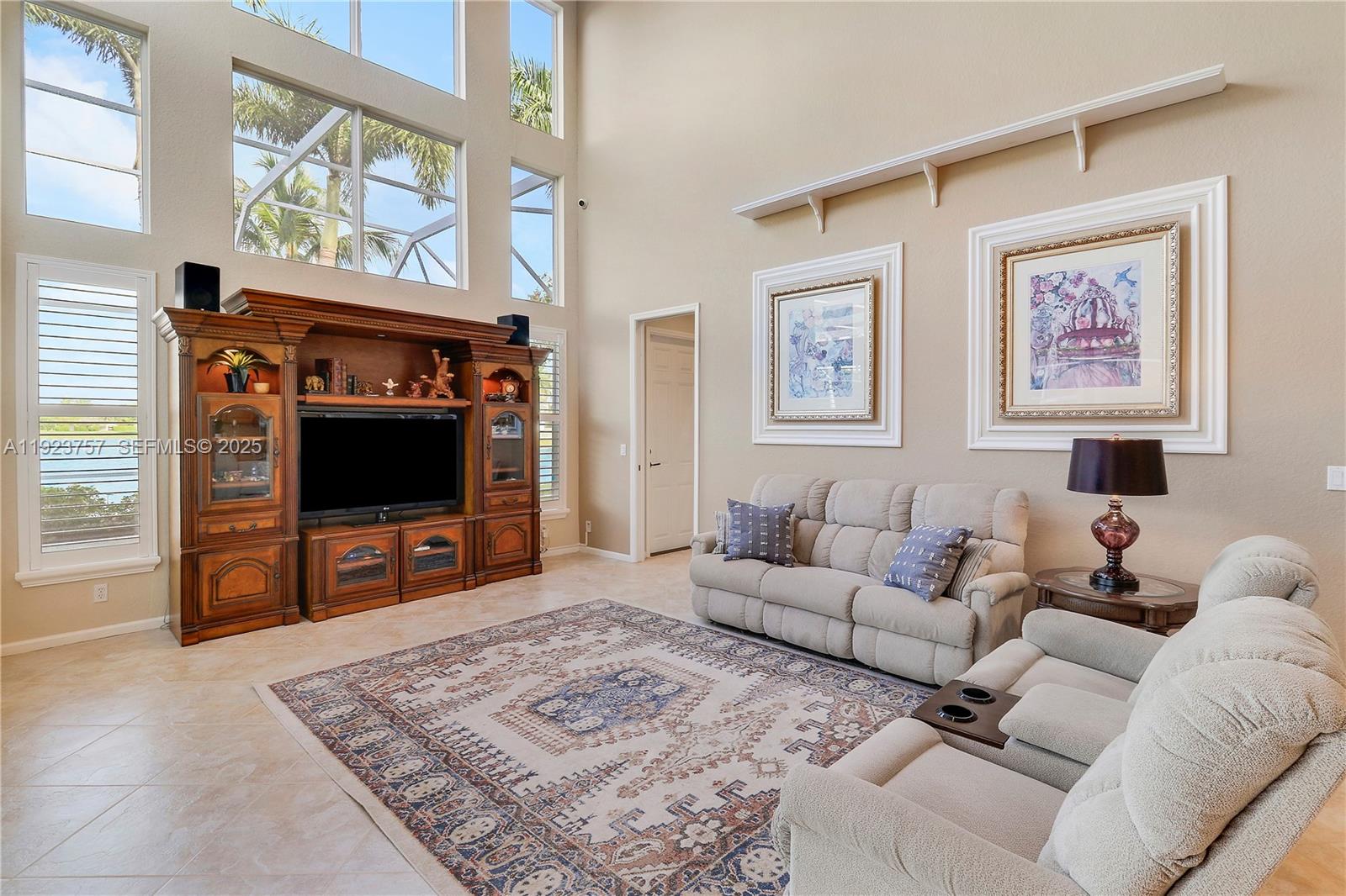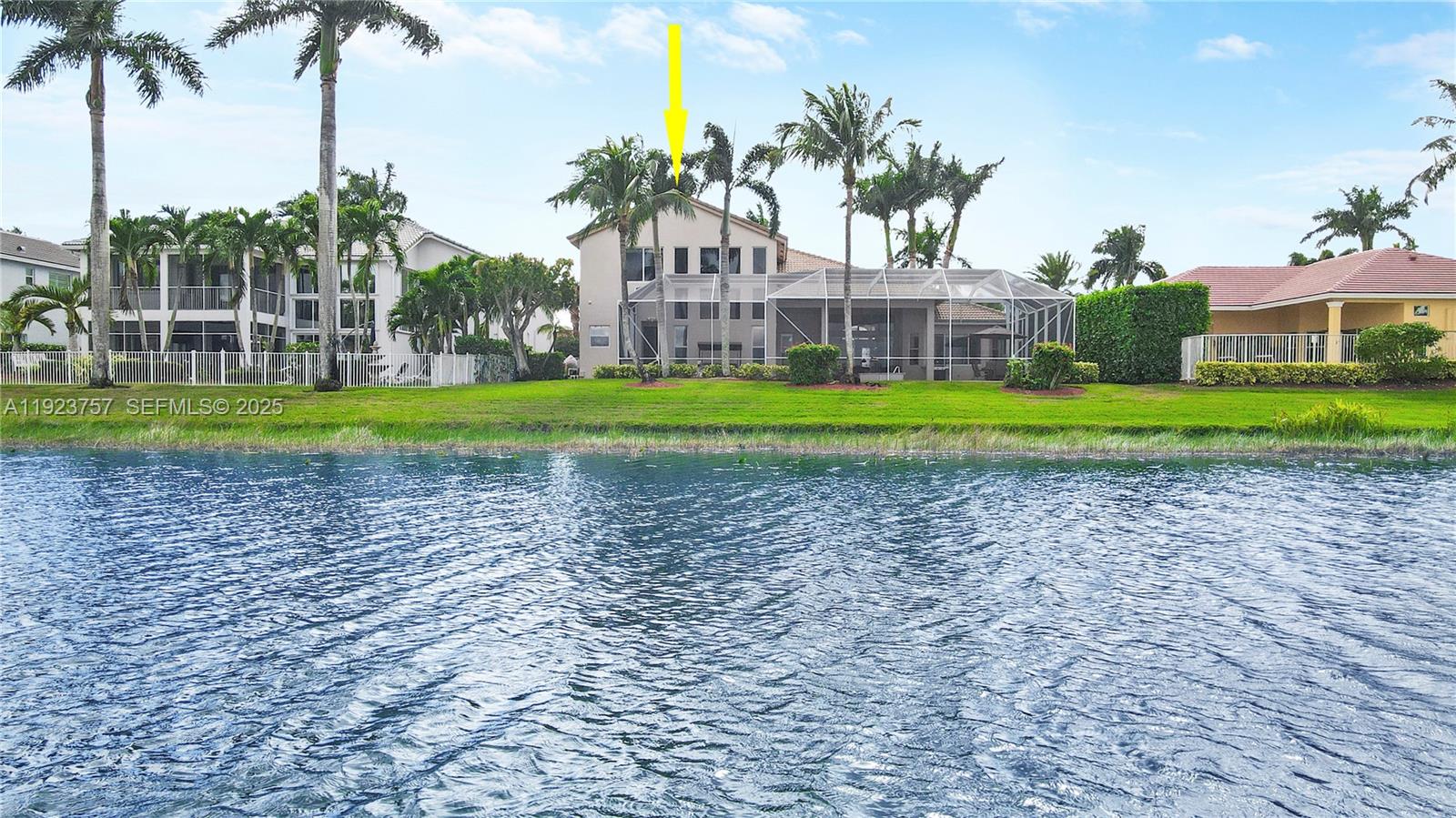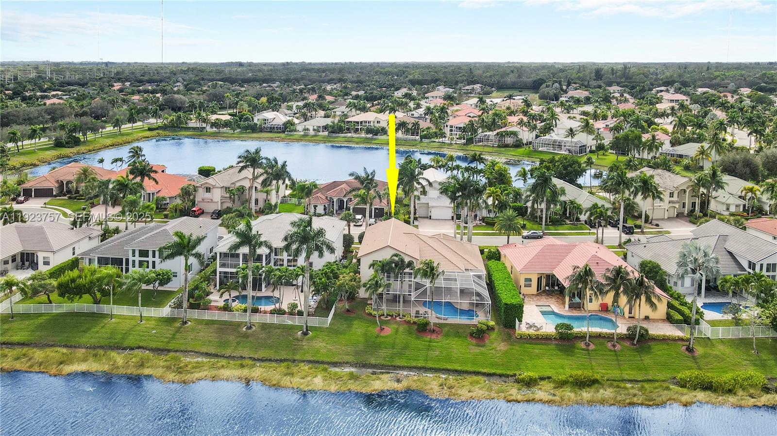 Best lake view in the gated community of The Isles! Located on a quiet street, this move in ready home has 5 beds 4 baths, and 3 car garage. Screen enclosed, heated pool for year around fun. The custom front door welcomes you to the bright, open floor plan with soaring ceilings and windows in the family room. Bedrooms are situated for optimal privacy with the Primary suite on the first floor, which has 2 walk in closets, the primary bath has his & her showers & vanities. A bright, open floor plan with soaring ceilings and natural light along with a cabana bath that 2 showers. Newer roof 2020 & A/C units 2022 & 2023. Exterior painted in 2024. The spacious loft can be a media room, gym, office, etc. Impact windows on the second floor and easy to install shutters on the first floor. The kitchen features a large pantry, island and updated appliances. The spacious backyard with heated pool overlooks the lake and is perfect for entertaining or relaxing. Located 5 minutes from the Polo grounds, near the Turnpike and excellent schools. Minutes to Wellington Mall. HOA includes monitored house alarm. Home has exterior cameras.
