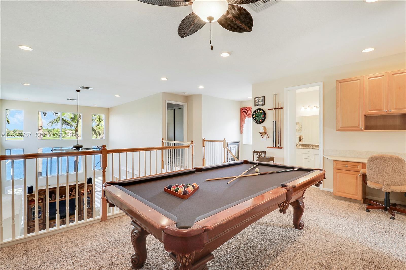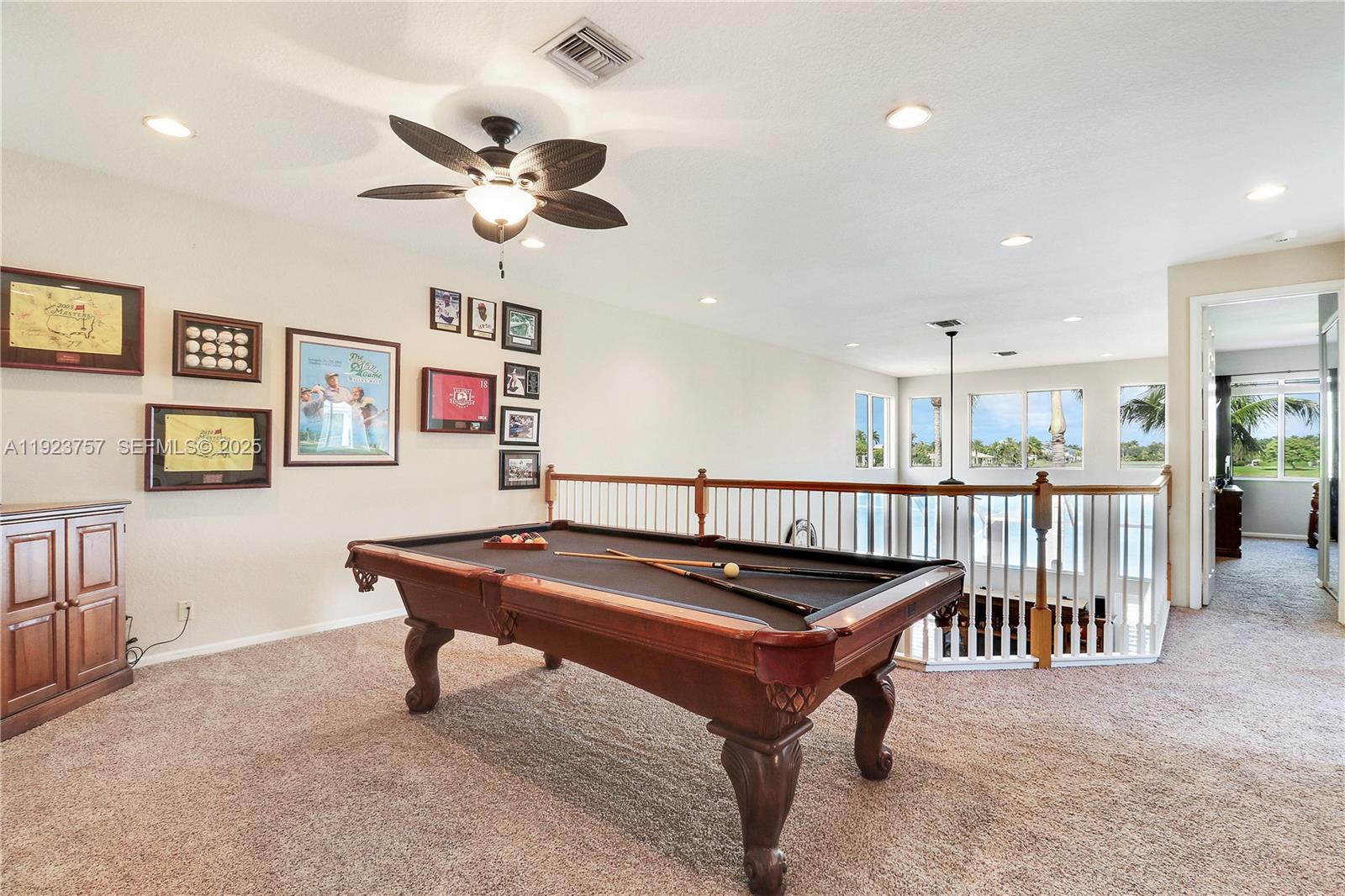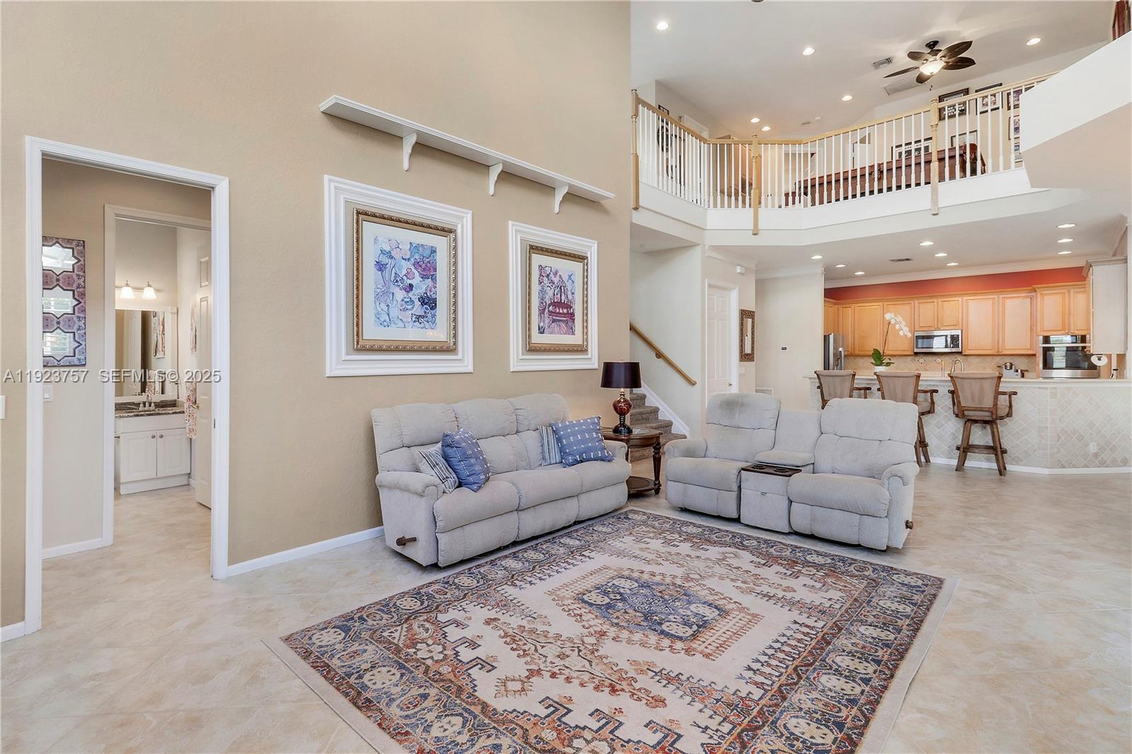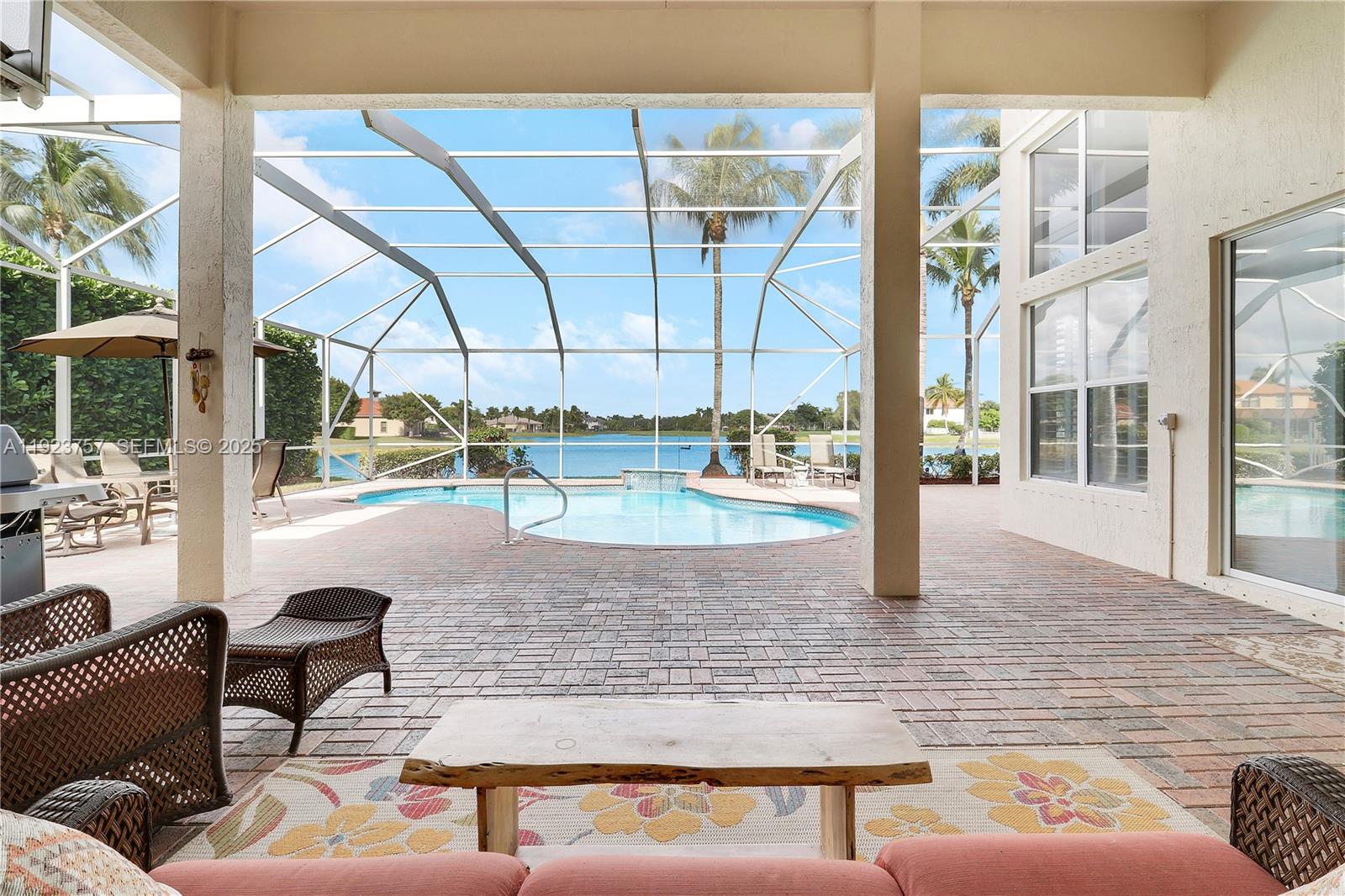 Best lake view in the gated community of The Isles! Located on a quiet street, this move in ready home has 5 beds 4 baths, and 3 car garage. Screen enclosed, heated pool for year around fun. The custom front door welcomes you to the bright, open floor plan with soaring ceilings and windows in the family room. Bedrooms are situated for optimal privacy with the Primary suite on the first floor, which has 2 walk in closets, the primary bath has his & her showers & vanities. A bright, open floor plan with soaring ceilings and natural light along with a cabana bath that 2 showers. Newer roof 2020 & A/C units 2022 & 2023. Exterior painted in 2024. The spacious loft can be a media room, gym, office, etc. Impact windows on the second floor and easy to install shutters on the first floor. The kitchen features a large pantry, island and updated appliances. The spacious backyard with heated pool overlooks the lake and is perfect for entertaining or relaxing. Located 5 minutes from the Polo grounds, near the Turnpike and excellent schools. Minutes to Wellington Mall. HOA includes monitored house alarm. Home has exterior cameras.