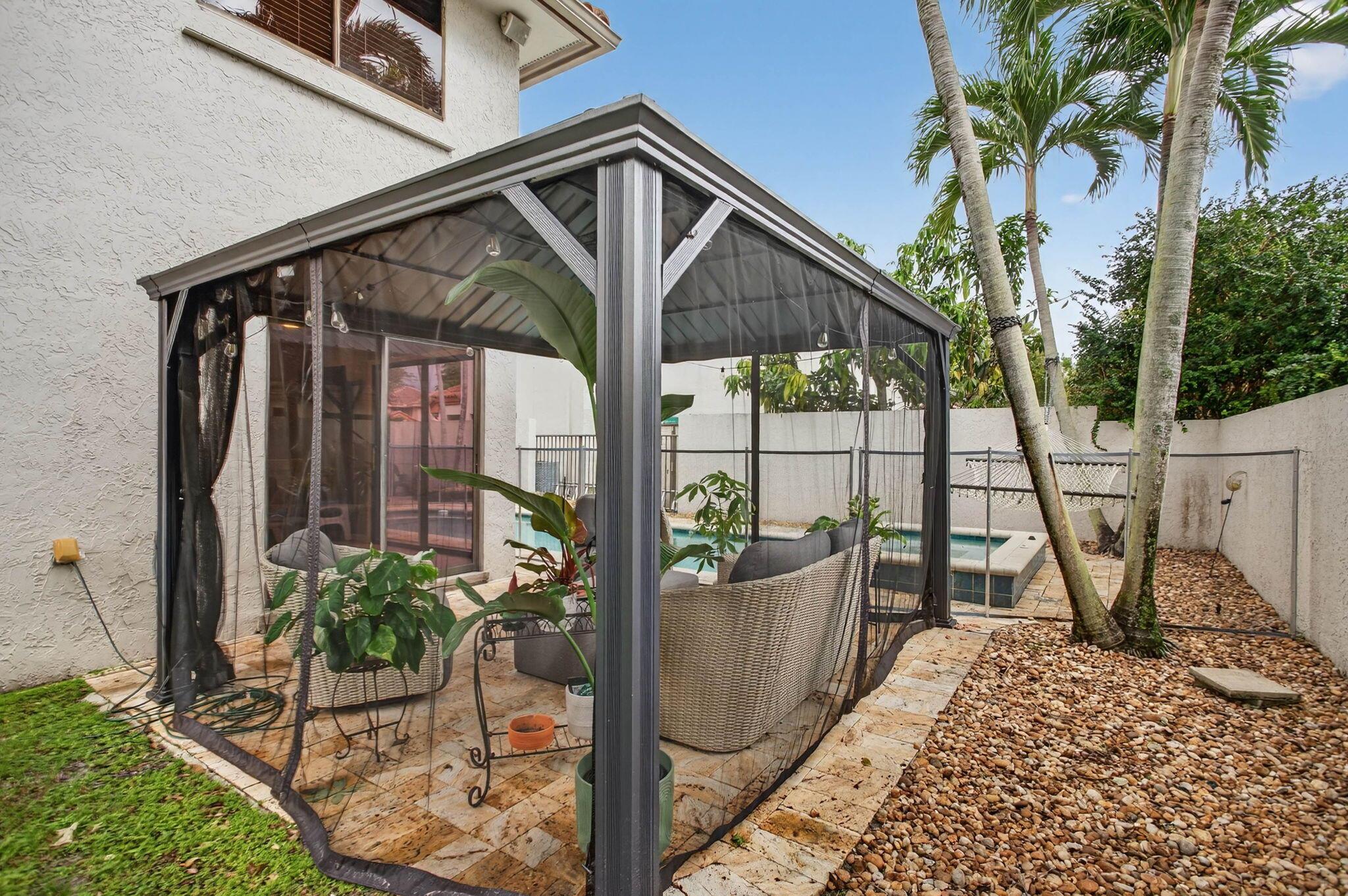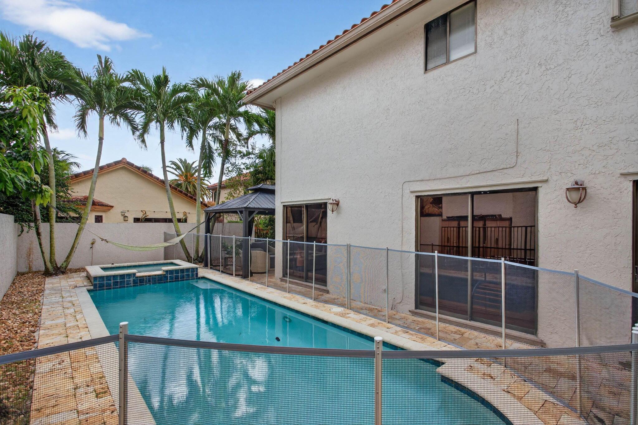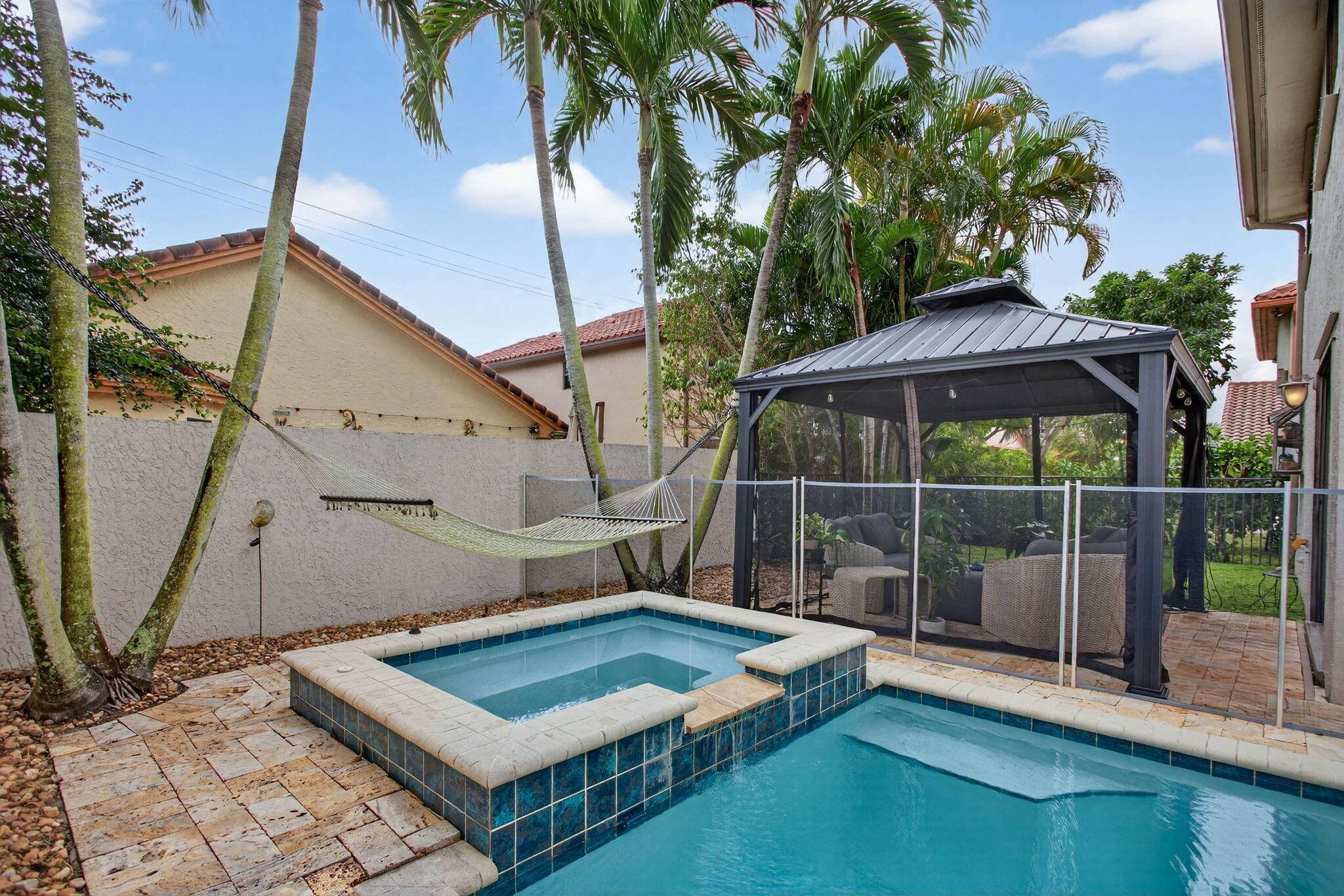 Located in the sought-after Starlight Cove community with low HOA fees, this 2-story pool home offers 3 bedrooms, 2.5 baths, and a bright, open floor plan ideal for everyday living and entertaining. Tile and laminate flooring flow throughout the home, and the eat-in kitchen features freshly painted wood cabinetry, granite countertops, and stainless steel appliances. Recent updates include a 2022 A/C, newer electrical panel, updated pool pump, new washer and dryer, and new recessed lighting. The spacious primary suite includes a sitting area, double walk-in shower, and generous closet space. Enjoy outdoor living with a private pool and gazebo. Walk to the 10-acre Villages of Hillsboro Community Park with recreation and amenities.