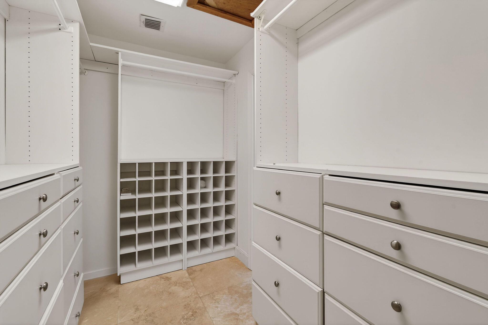 Set on 1.69 acres in 'Loxahatchee Groves', this home offers privacy, generous space, and comfortable indoor and outdoor living. The living room features impact windows, vaulted ceilings, a wood-burning fireplace, and a bar area with a wine cooler, icemaker, wet bar, and built-in TV. The kitchen includes a center island with sink and electric access, a six-burner Thermador gas range, Miele dual wall ovens, and Subzero refrigerator and freezer. Plantation shutters and laminate flooring run throughout much of the home. The primary suite offers a spacious sitting area, custom built-in closet wall, and a beautifully finished bathroom with a garden tub, walk-in shower with glass enclosure, mosaic tile accents, and a vanity at the sink.