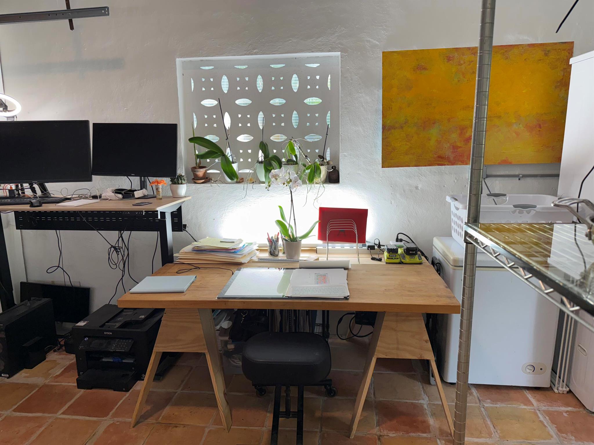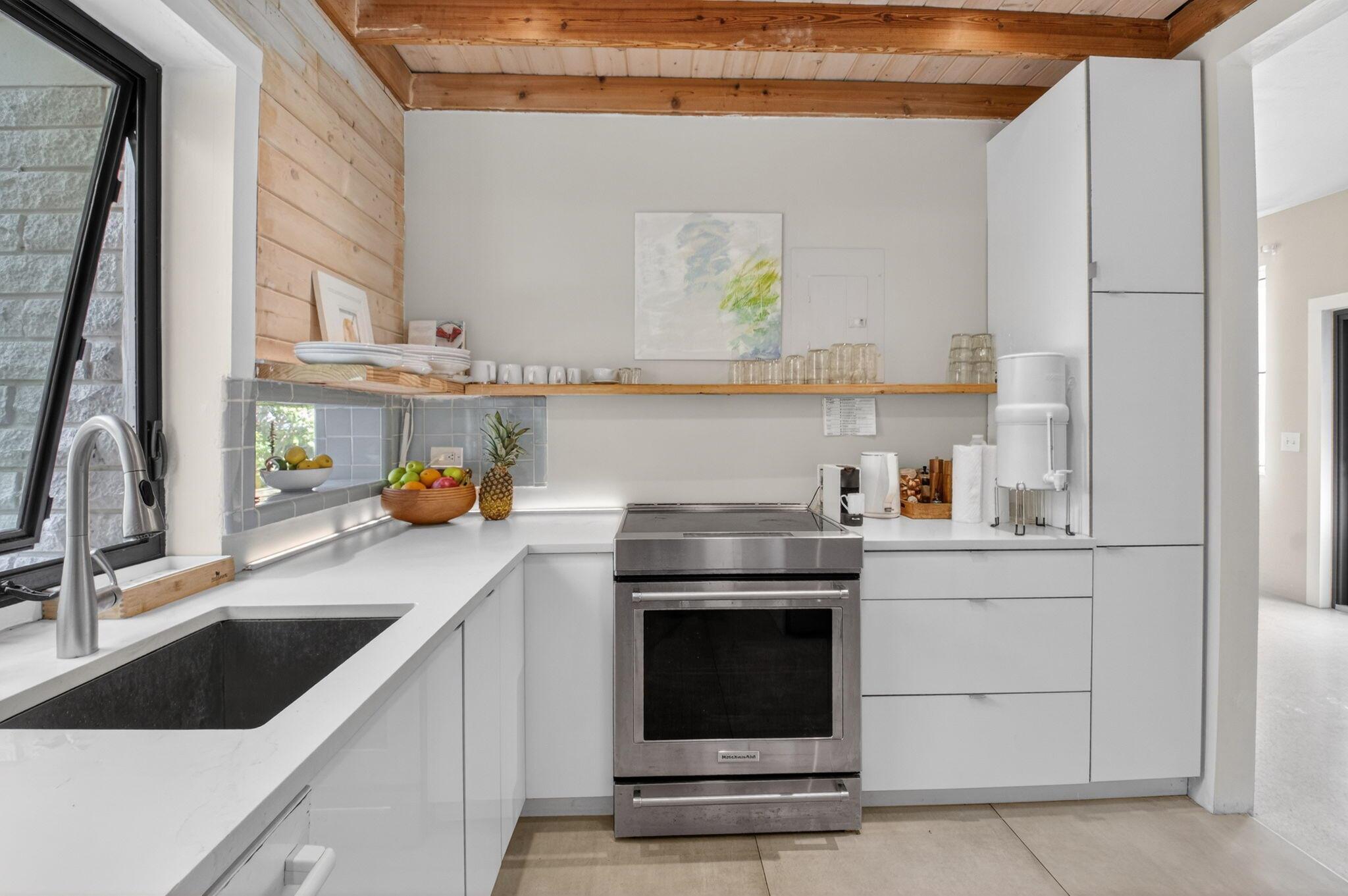 Discover this mid-century modern gem located in highly desirable East Delray, nestled in a charming non-HOA neighborhood. This light and bright home features high ceilings and a blend of terrazzo, hardwood, and tile flooring for timeless appeal. The updated kitchen (2020) boasts synthetic marble countertops, an induction range, and generous prep space, blending modern style with exceptional practicality. The primary suite includes an ensuite bathroom with a newer vanity and sink. Enjoy peace of mind with impact windows and garage door, new AC, gas hot water heater, new washer/dryer, access to natural gas line in the kitchen and a 6-zone sprinkler system. The 1-car garage is air-conditioned for added versatility. The backyard is fenced to ensure privacy with photo renderings that provide