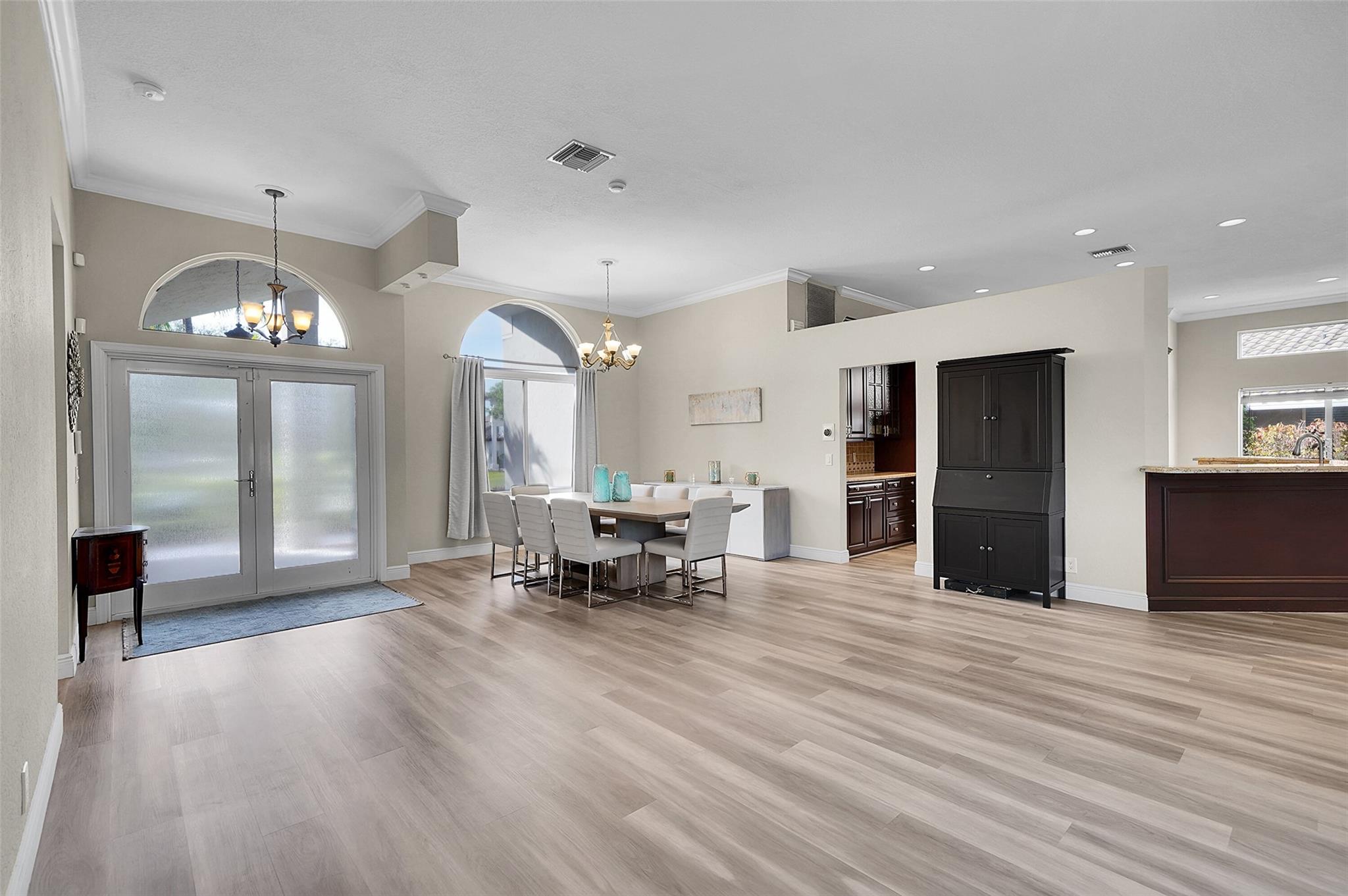 Welcome to this beautifully updated 4-bedroom, 2.5-bath Pool home in the prestigious Kensington Gardens community. Featuring an Oversized 11,500ft. lot, modern kitchen, a renovated primary suite with spa-like bathroom, and new luxury vinyl flooring throughout, this home blends comfort with style. The split bedroom floor plan offers privacy, while impact windows provide peace of mind. Enjoy the convenience of a circular driveway and 2-car garage, plus the benefit of a top-rated school district. Major updates include a Screened in Saltwater pool, Sprinkler on a well. 2020 Water Heater, a 2015 AC, and a 2006 roof, Solar panels for a lower electric bill—ensuring long-term value. This is the perfect combination of location, lifestyle, and lasting quality. HOA fees only $219 per Quarterly.
