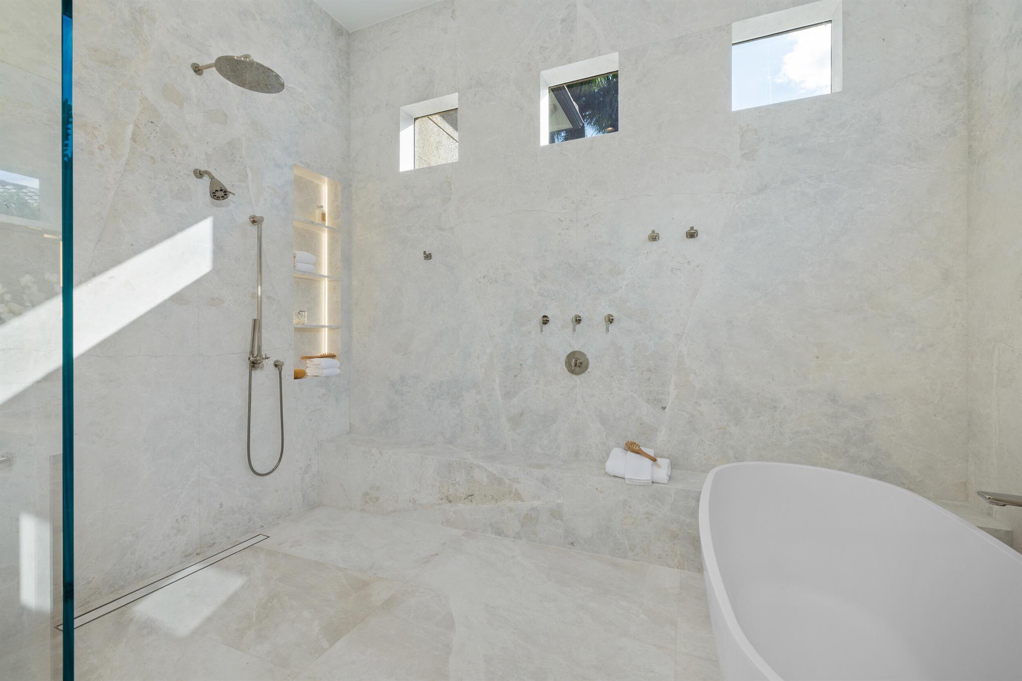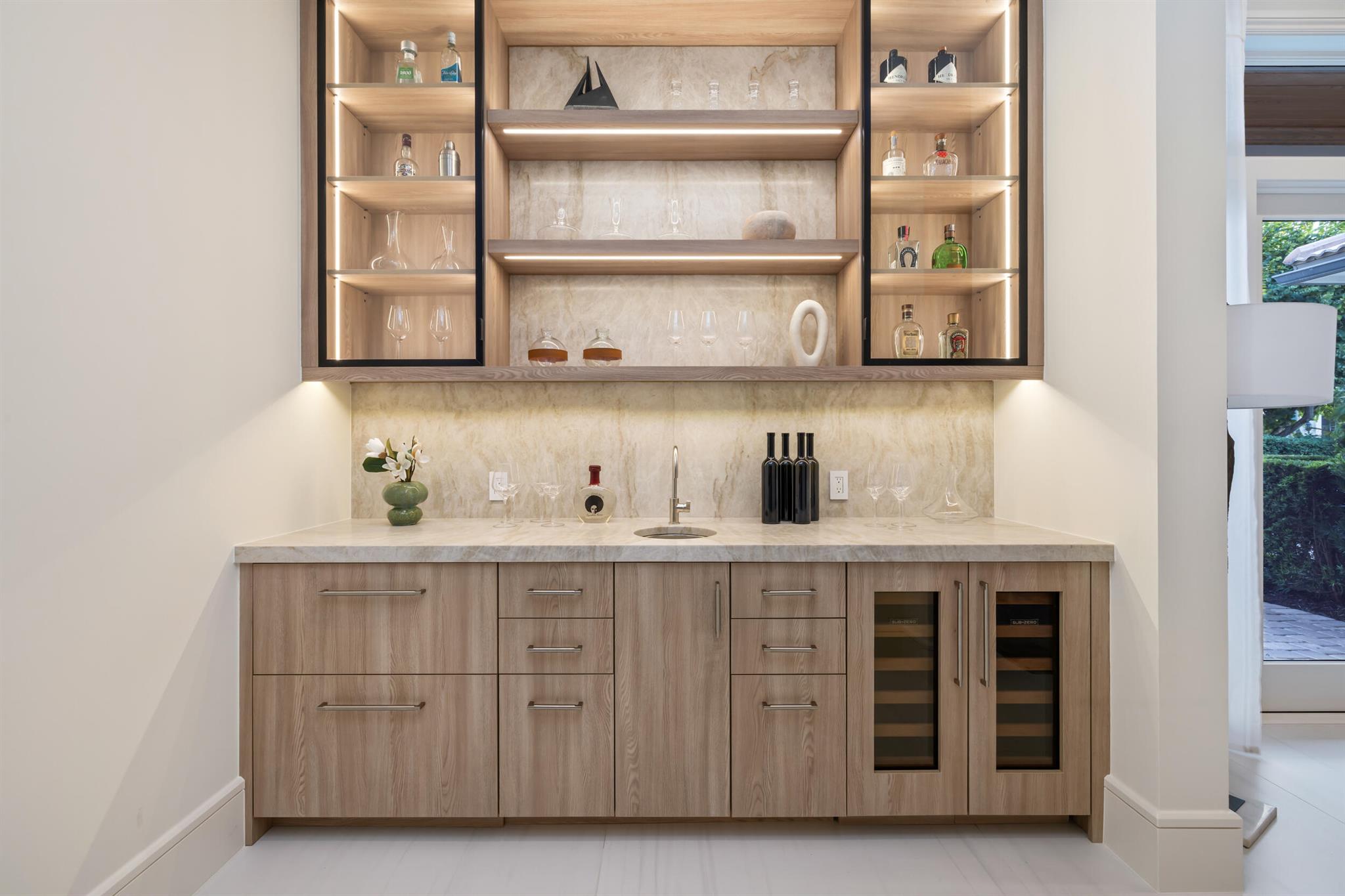 This fully reimagined 4-bedroom, 4.2-bath estate offers modern Palm Beach luxury in the exclusive gated community of Old Palm. Completely transformed, the home features new landscaping, manicured hedging for privacy, a resort-style screened outdoor lounge and dining area, and a heated pool with shaded pet-run.Inside, natural light, French oak floors, custom millwork, and clean architectural lines create an elegant, inviting atmosphere. The chef's kitchen includes Wolf, Sub-Zero, and Bosch appliances, bespoke cabinetry, hidden pantry, and dedicated water filtration, with a nearby bar and media room for entertaining.All bathrooms feature new stone surfaces, refined fixtures, and spa-like finishes. The private primary suite offers custom closets and a calming retreat.