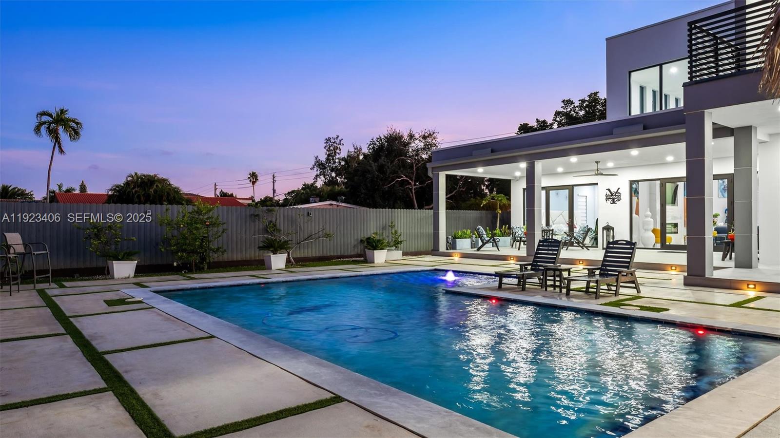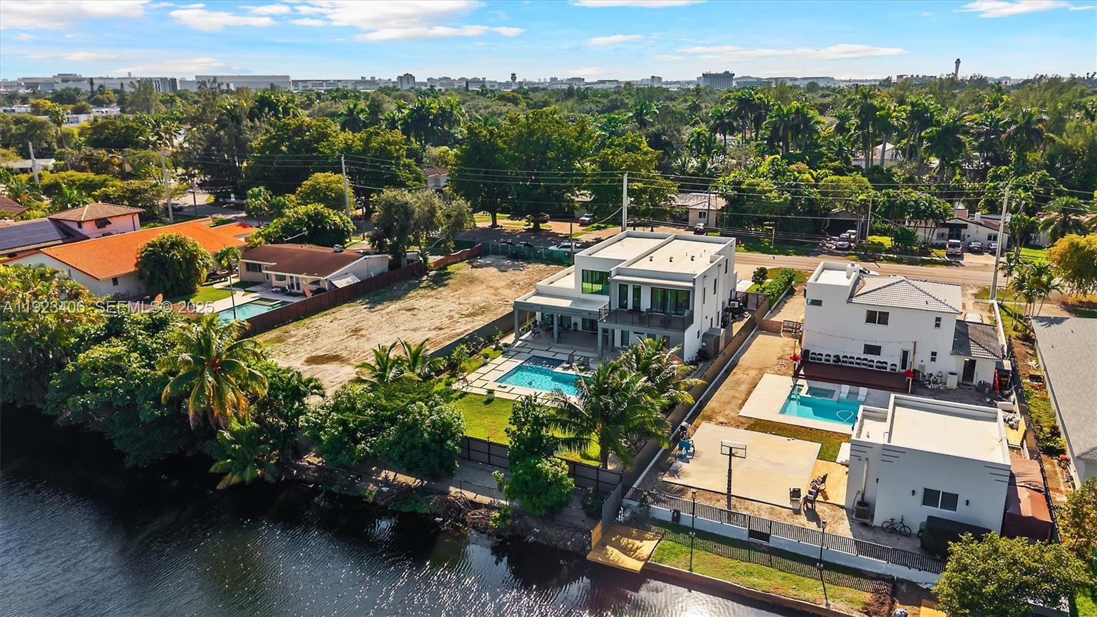 Experience modern luxury living in this breathtaking contemporary waterfront home in the heart of Miami Springs. This over 5,000 sq ft masterpiece offers soaring 23-ft ceilings, expansive impact windows, and a seamless open layout designed for elegance, comfort, and entertaining. The chef’s kitchen features premium appliances, custom cabinetry, a large island, and a full home water filtration system. The spacious primary suite includes a spa-inspired bathroom with an oversized shower, designer fixtures, and generous walk-in closets. Step outside to your private resort oasis with a modern saltwater pool, spa, expansive patio, and a tiki hut perfect for dining and entertaining. Enjoy peaceful canal views, lush landscaping, and an almost 16,000 sq ft lot providing exceptional privacy. Additional highlights include premium flooring, four air-conditioning units, a one-car garage, and a flexible layout ideal for guests or multigenerational living. Located less than 10 minutes from the new Inter Miami Stadium, Miami International Airport, and Miami Springs Golf Course, and just 15 minutes from Wynwood, Brickell, Doral, Coral Gables, and the Beaches. Miami Springs is known for its hometown charm, close-knit community, parks, and tree-lined streets—offering the perfect blend of luxury and lifestyle in one of South Florida’s most desirable neighborhoods.