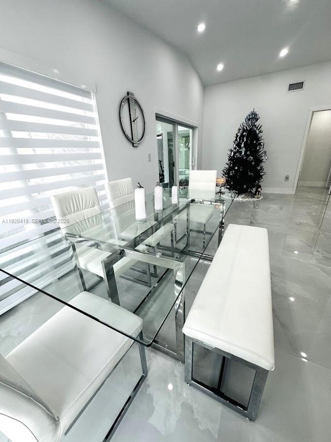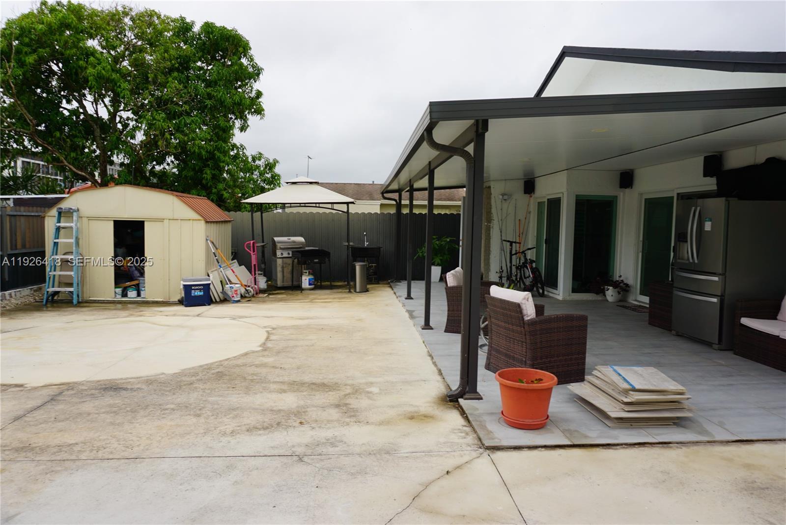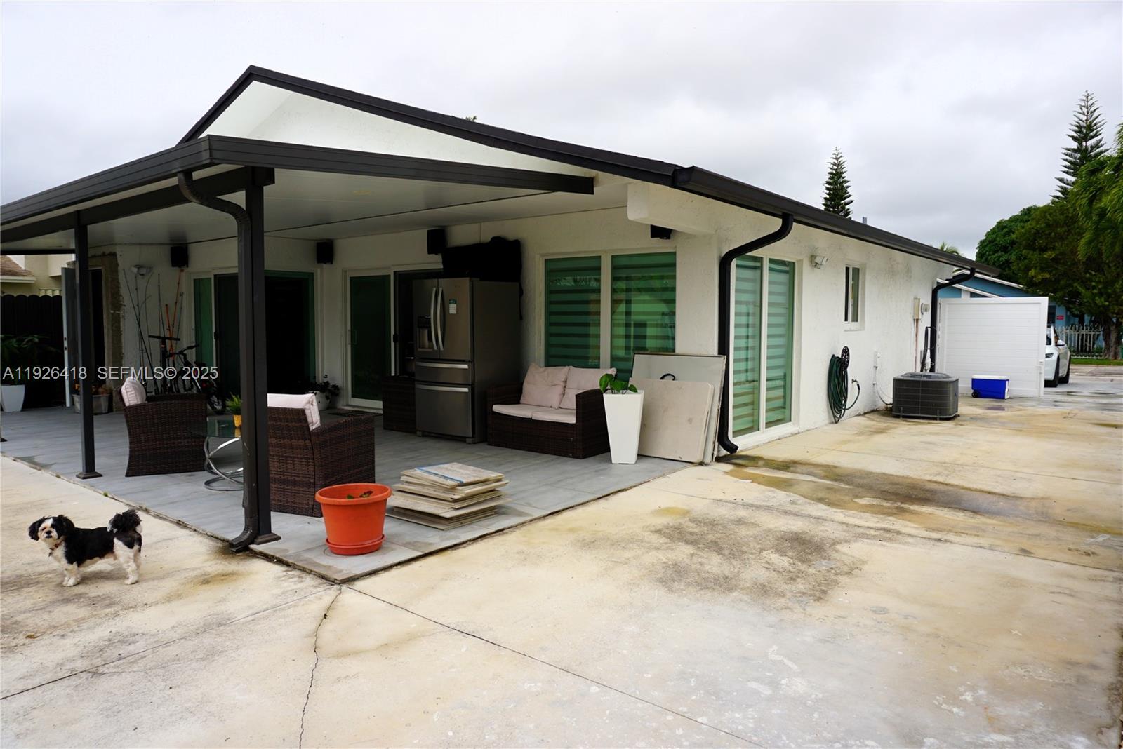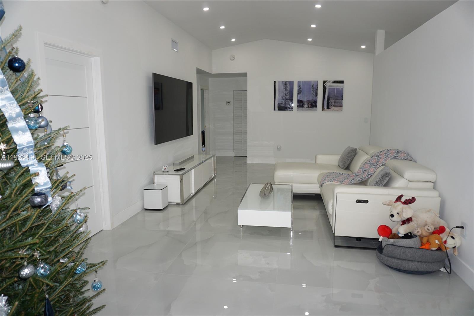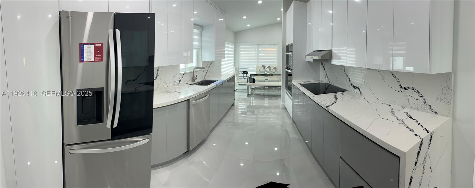 Discover this gorgeous home offering modern finishes, open concept living, and exceptional value; meticulously upgraded, every detail makes it a truly move-in ready opportunity. This is "a must-see" for buyers seeking modern style and outstanding quality features in a completely remodeled home! Featuring brand new ceramic flooring, stylish kitchen with quartz countertops, wood cabinets with glossy finish, new appliances including cooktop and range hood. Both bathrooms have been fully remodeled with floor-to-ceiling porcelain tile, sleek modern wall-mounted vanities, intelligent toilets, and beautifully glazed showers for a luxurious spa-like feel. Combining modernity and elegance, outside the home also impresses with its new long-lasting concrete driveway, a wide left side hallway secured by a lovely aluminum gate, all hurricane impact windows and doors, and recently installed gutters. The exterior AC unit has been recently replaced. This property impresses at every turn. The interior has been decorated with motorized zebra blinds and smart rescinded lighting for convenient connection to a virtual assistant. The outdoor area is perfect for entertainment and relaxation with aluminum roofed terrace, a shed for storage and one additional exterior room with a toilet and pipes ready for a 3rd bathroom. Prime location with quick access to major commuter routes like US-1 and Turnpike, nearby to shopping, dining and groceries. Don't miss this opportunity, this gem won't last.