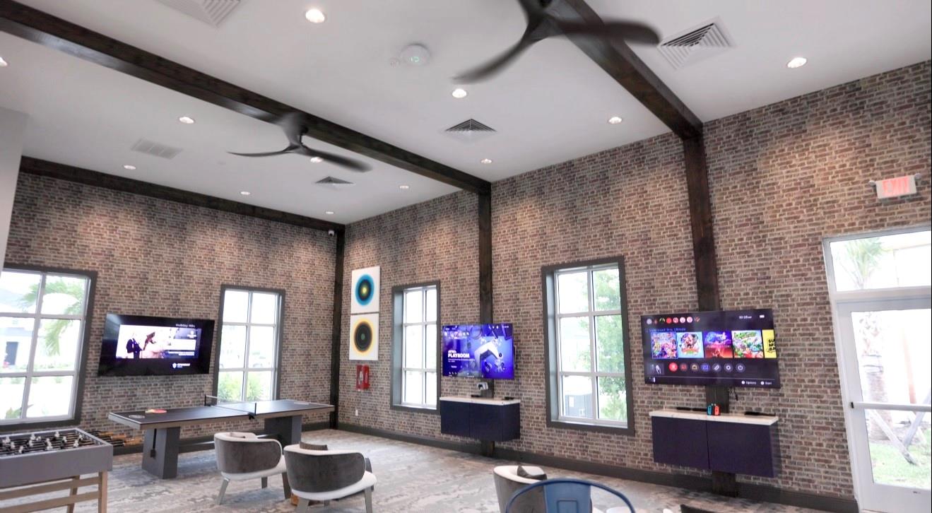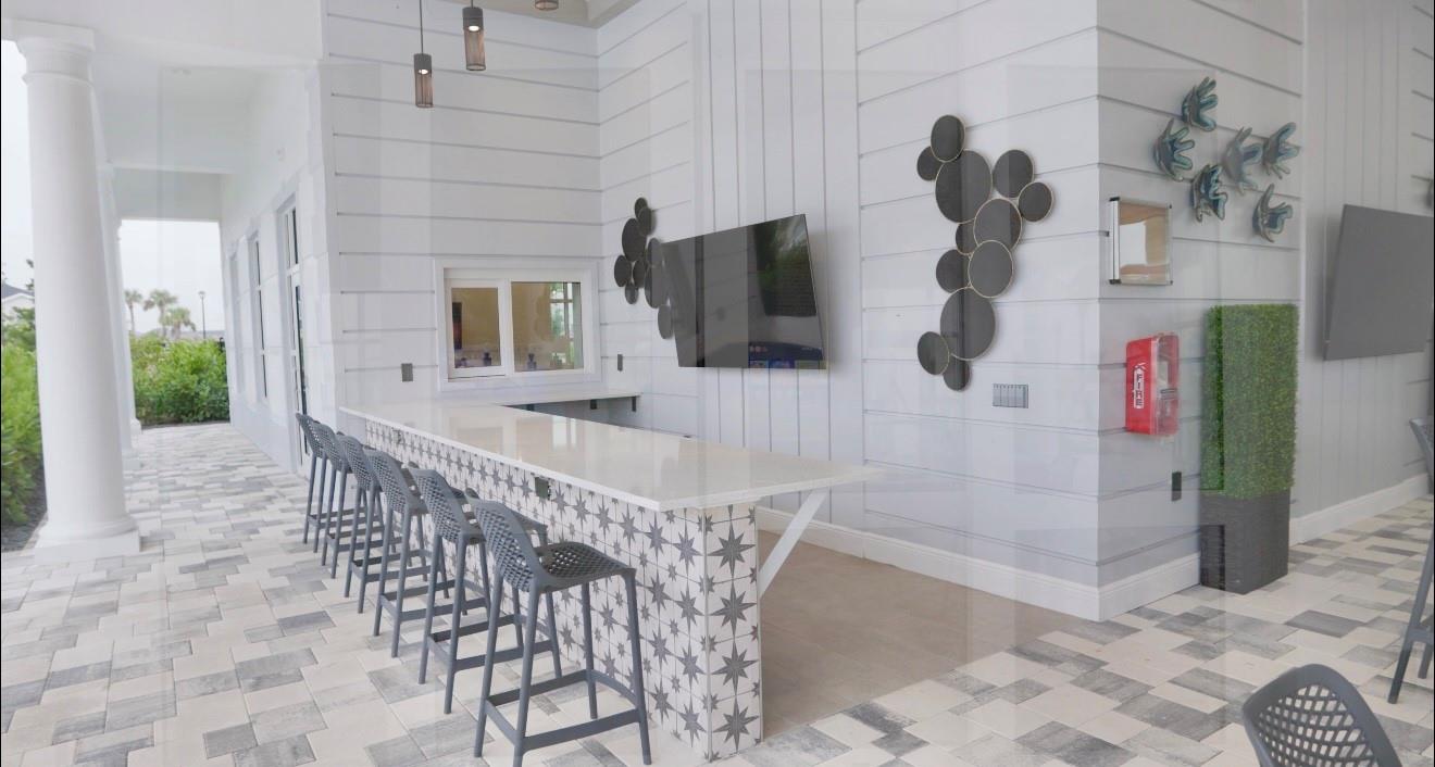 3/2 CBS garage upgraded home, Jemison model, in Central Park. Modern kitchen with a large island; white cabinets with marble countertops & upgraded backsplash, stainless appliances and impressive sized pantry. Upgraded LVP in the main areas & flex. Carpet in primary and 2nd bedroom. 2 car garage, with ceiling mounted storage. Screened patio and fenced yard. Added gutters. Upgrades include electronic window treatments, upgraded light fixtures/switches, whole house water softener system, customized primary closet, surround sound patio and garage, upgraded kitchen cabinet pulls, W/D Aluminum panels for protection from hurricane damage. Low HOA. Split floor plan. Inspiration Park inside Central Park is a 10 acre recreational area. Resort style amenities.