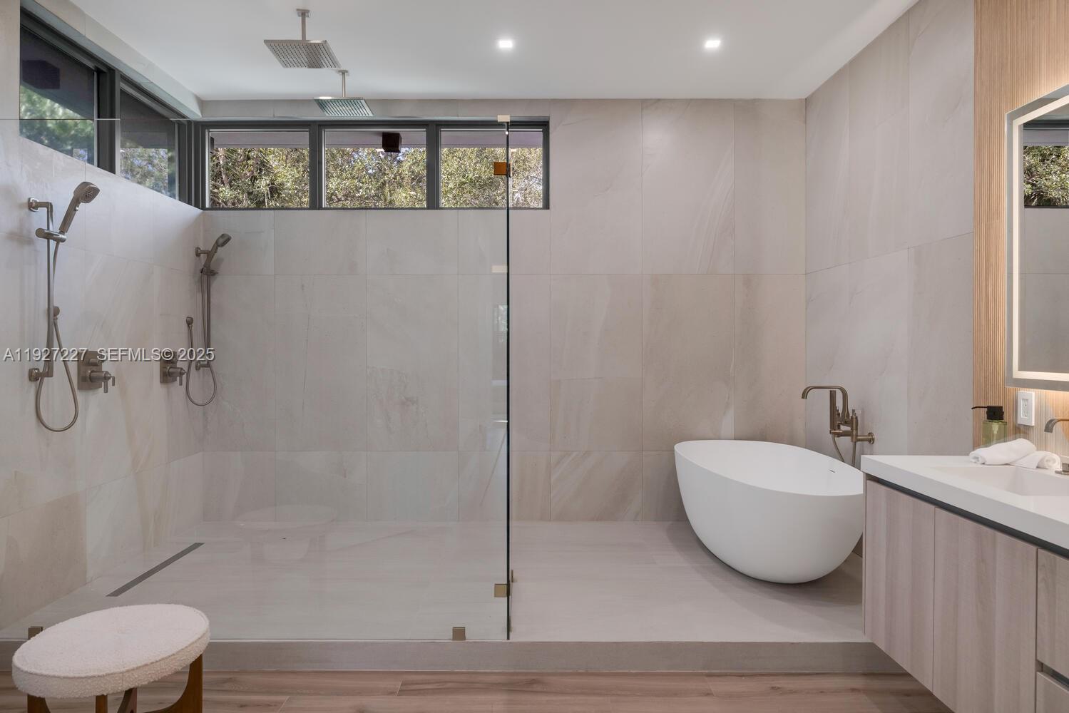 Be the first to live in this newly built contemporary residence located on one of the most desirable streets in Biscayne Park, known for its tree-lined streets and architecturally distinctive homes. This home blends Mid-Century Modern design with a dramatic 22-ft ceiling, open floor plan, sleek custom finishes, and Wolf appliances. Lush landscaping grounds the modern build and enhances privacy. Filled with natural light throughout, the home features an impressive 1,000-sq-ft primary suite with an open office/den that overlooks the canopy of mature Oaks. An oversized garage, exceptional craftsmanship, and high-quality construction materials, and solid concrete roof make this over engineered masterpiece one of a kind. Ideally located minutes from the beach, Miami Design District and some of Miami’s top private schools (Miami Country Day and Cushman) Contact listing agent for additional details and material. 3918 sq ft under AC + 483 sq ft garage. Over 5000 sq ft total