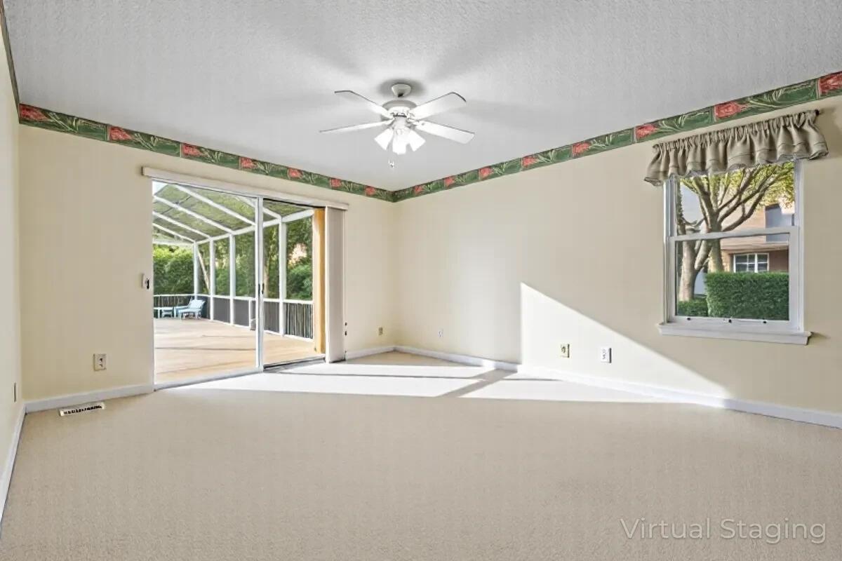 Located on a quiet cul-de-sac in River Bridge, this home sits on a beautiful private-feeling lot with a spacious backyard, screened-in pool, and large covered patio--perfect for relaxing, entertaining, and enjoying true Florida living. Inside, you'll find granite kitchen counters with white cabinets and appliances, tile flooring, and a functional split layout. AC and water heater approx. 6-8 years old. River Bridge offers resort-style amenities including 24/7 security, fitness center, tennis and pickleball courts, pools, theater, and more. HOA includes lawn care, cable, and internet.