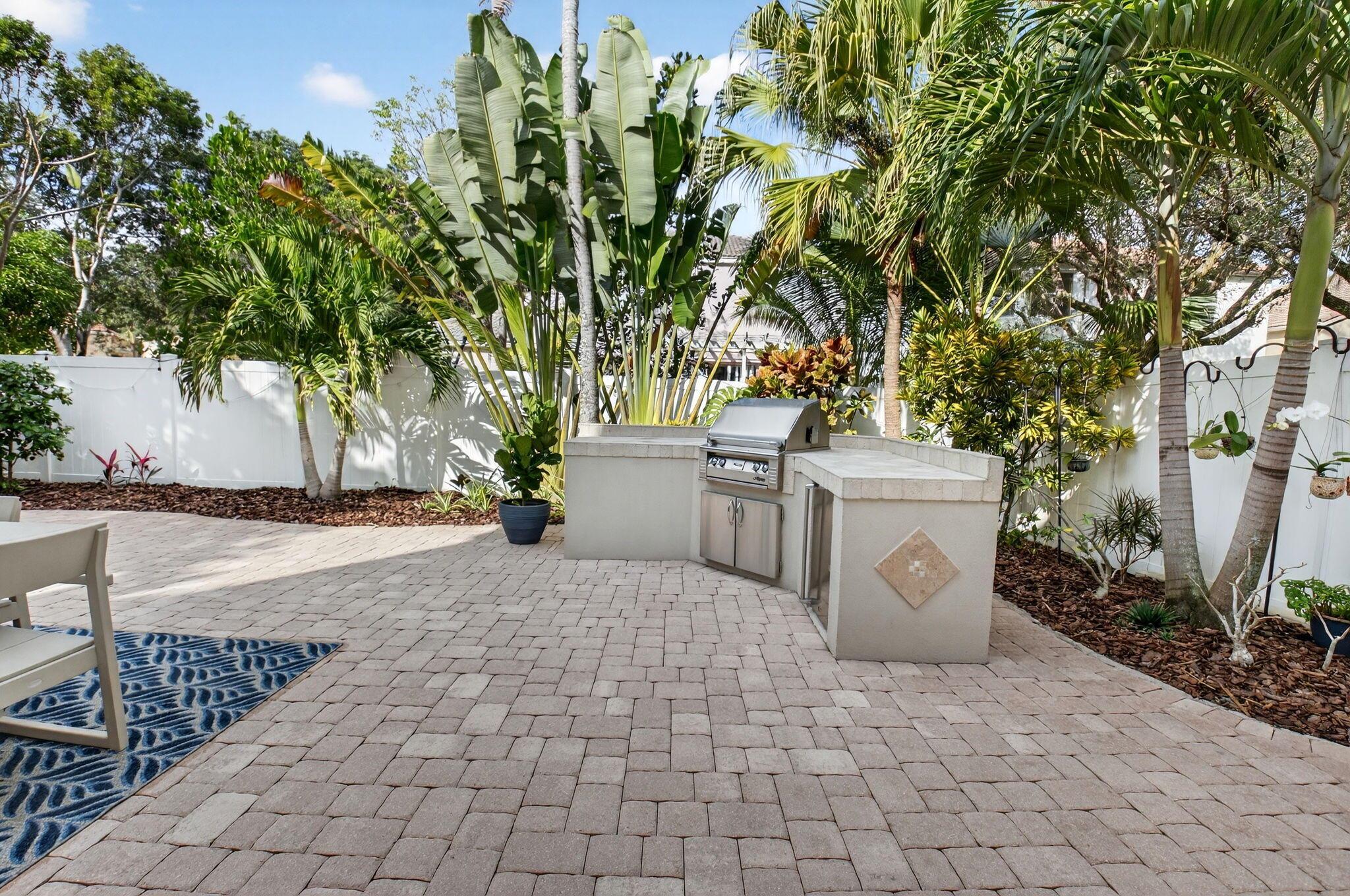Pride of ownership scores a 10 in this exceptionally maintained, beautifully upgraded, stylish, single-owner home! 2022 ROOF & gutters, IMPACT glass/doors, a designer 2020 kitchen with quartz counters & marble backsplash. Renovated half bath & 2nd bath. Engineered wood floors on the stairs & 2nd floor. Additional upgrades include a hybrid smart water heater, UV & air-purifying A/C, generator hookup, and an EV charger hookup. The large, private, fenced-in corner lot is an outdoor sanctuary surrounded by tropical plants including a banana tree, pineapple plants, a gorgeous Royal Poinciana tree & more. Enjoy hours of fun & entertaining with your built-in grill/outdoor kitchen and swing! Plenty of room for a pool! Located in an A-rated school district. Family-friendly community!