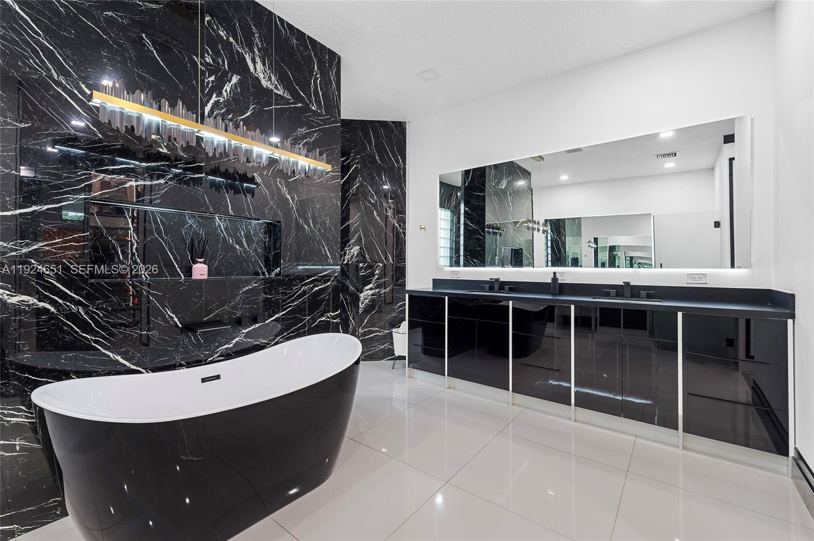 Brand New Roof 2026. Set within the gated enclave of Emerald Springs Estates, this modern elegance is on the community’s largest lot with 1.5 acres of beautifully designed grounds, complete with a private sports court and resort-style outdoor living. Fully remodeled in 2021, the home offers 4 bedrooms and 4 bathrooms, each updated with new showers, designer fixtures, custom closets, and sleek white porcelain flooring that carries throughout the residence. The primary suite is a true retreat, with an oversized room highlighted by a Chanel-influenced walk-in closet with luxury designer flooring. The kitchen is equally impressive, reimagined with top-tier finishes and a complete collection of Fulgor Milano Italian appliances, including two refrigerators, a wine fridge, double oven, drawer microwave, built-in espresso machine, an island beverage fridge, and a Bosch dishwasher. Three A/C units, a new water heater, new washer and dryer, and accordion shutters offer comfort and peace of mind. The pool and spa were fully renovated in 2021. Expansive outdoor space and room to personalize with an outdoor kitchen or additional amenities, this rare Davie estate blends luxury, privacy, and scale in a way few homes can match.
