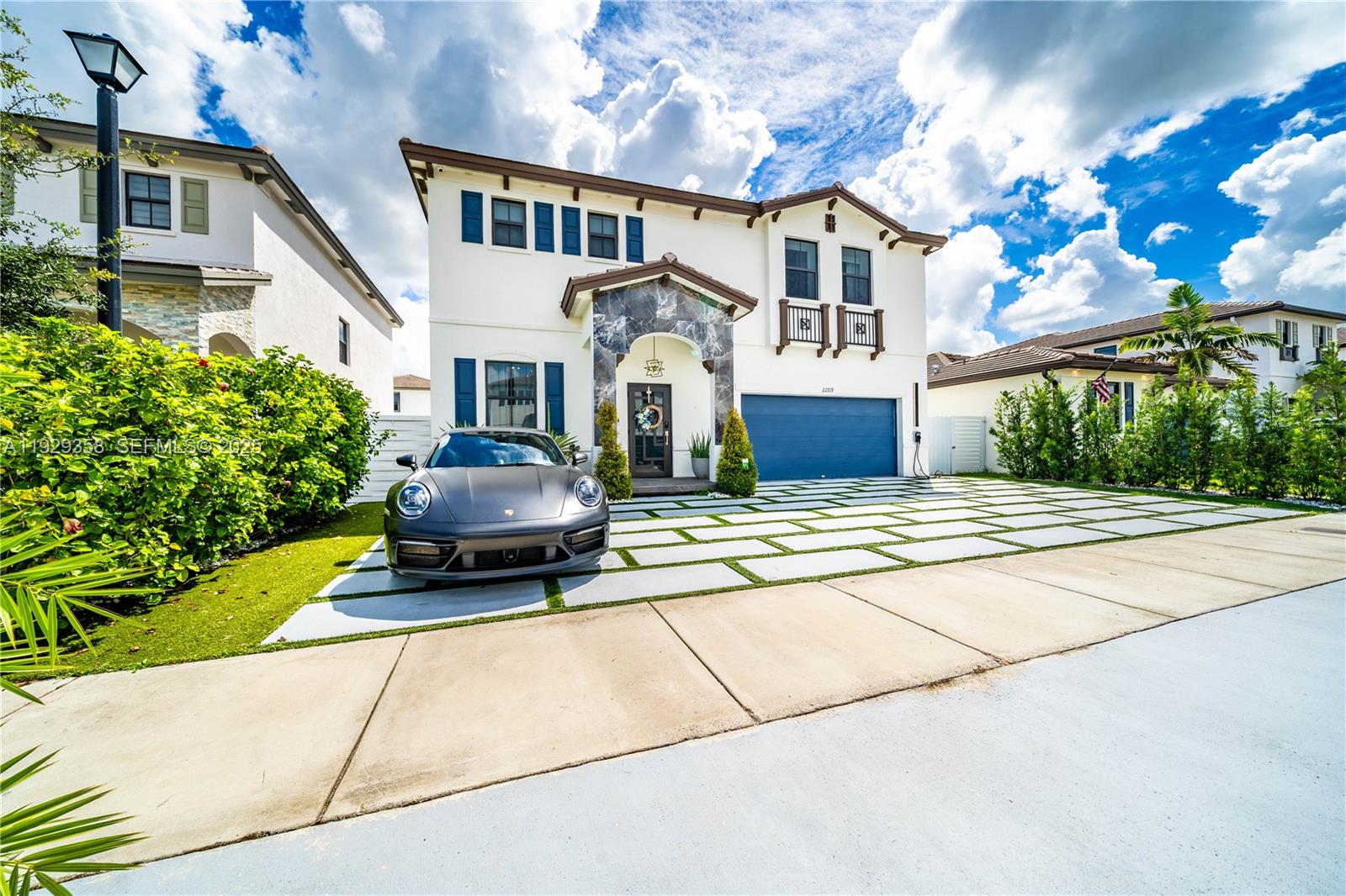 Discover modern elegance in this stunning 4-bedroom + Den, 2.5-bath home featuring luxury finishes throughout. The first floor offers sleek contemporary ceramic flooring and a striking glass staircase that enhances the home’s upscale design. The den has been transformed into a private home theater for your enjoyment. The kitchen comes equipped with a smart refrigerator, adding convenience and a modern touch to your daily living. Step outside to your own backyard oasis with a sparkling private pool—saltwater or regular—ideal for relaxing, entertaining, or hosting a BBQ. The entrance features oversized modern concrete pavers, creating exceptional curb appeal. The property is fully fenced, and best of all, there is NO HOA. Located in one of Florida’s most desirable communities, this home offers not just a place to live, but an elevated lifestyle.