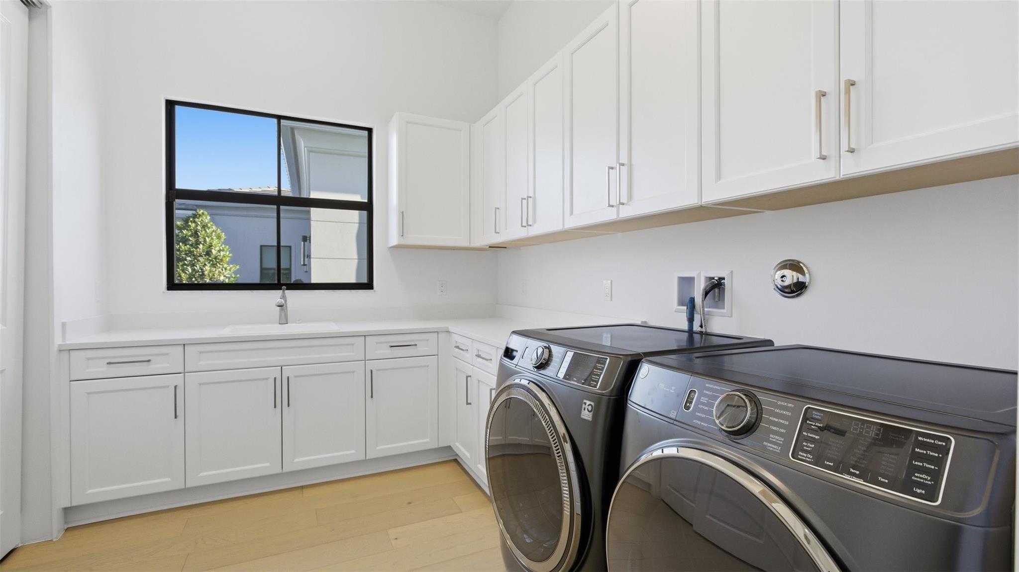 Move In Ready** This brand-new Mondrian floorplan, is situated on an interior waterfront homesite within the gated community of Artistry Palm Beach. This home offers 4 suites, each with ensuite bathroom, an additional half bathroom and a split-3 car garage. Also includes gas cooking in the kitchen, 2nd tier upper cabinets, quartz backsplash, a 3'' quartz kitchen island with waterfall ends and under cabinet LED lighting. The great room includes a 20' wide by 10' tall sliding glass door and the loggia has been extended 4'. The loft has been upgraded to an optional larger game room with an added wet bar. There is an added outdoor summer kitchen.