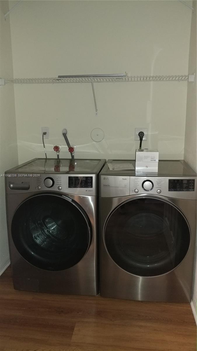 Two Story Townhouse with garage and balcony, parking in rear and front of building. Association fee includes insurance for building exterior, internet and media, alarm service, gated community, use of pool and playground.
