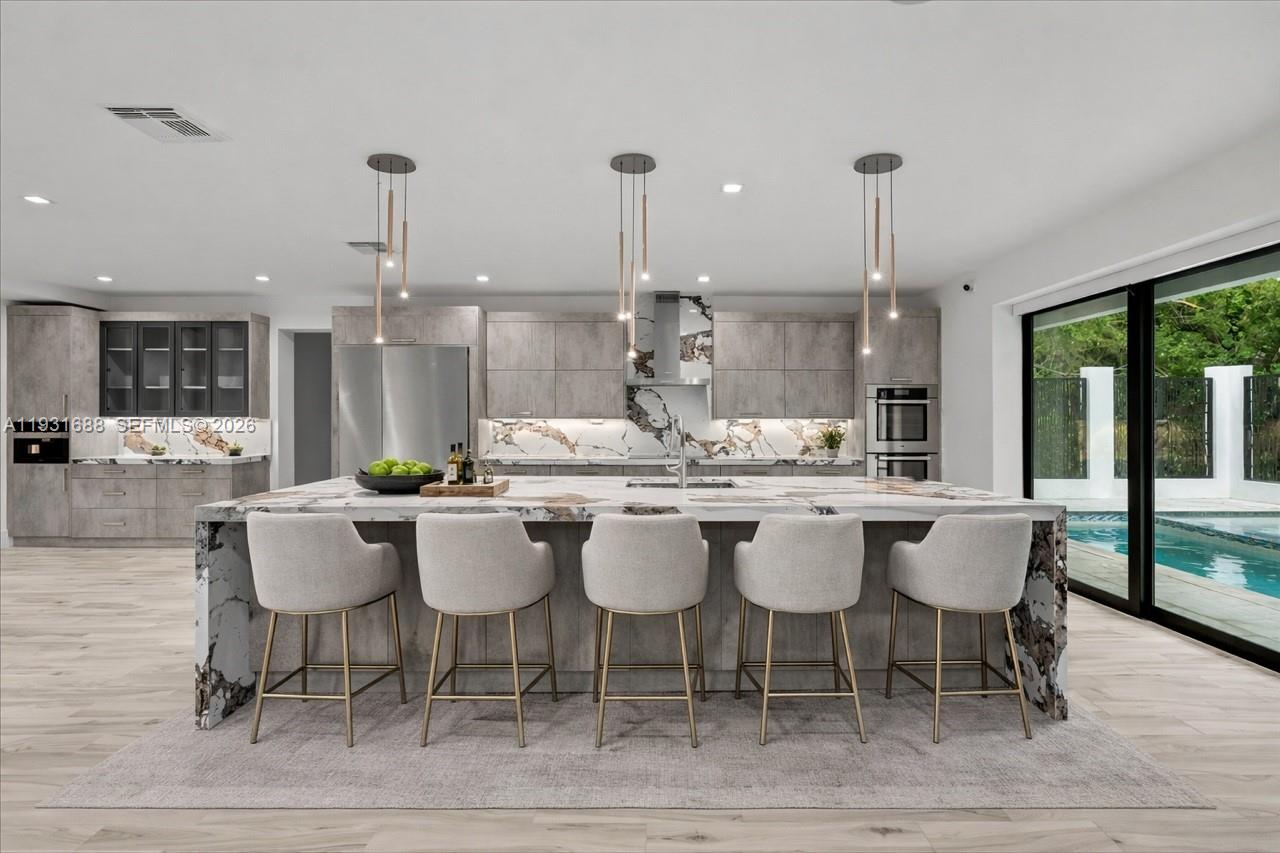 Located across from the water, enjoy waterfront views from entertainers deck! Built in 2023, this exceptional 4-bedroom, 6-bath residence offers the rare opportunity to own a nearly new luxury home in one of Naples’ most sought-after locations—without the premium pricing of waterfront properties. Home features 4 bedrooms and 6 bathrooms with thoughtfully designed living and entertaining spaces throughout. Features include two laundry rooms, a 3-car air-conditioned garage, second-floor wet bar, and multiple indoor-outdoor living areas. The chef’s kitchen is equipped with top-tier appliances, custom cabinetry, and generous workspace, opening seamlessly to the main living areas with soaring ceilings and refined finishes. A private elevator services all levels, including a fully built-out rooftop retreat featuring an outdoor summer kitchen, cabana bath, and water views—ideal for elevated entertaining. Outdoor amenities include a resort-style pool and spa, covered entertaining areas, and lush landscaping. Built with concrete block construction, impact-resistant windows and doors, and premium materials throughout. Ideally located minutes from the Gulf beaches, Venetian Village, and Fifth Avenue South, this move-in-ready home offers luxury living in one of Naples’ most sought-after neighborhood. With new construction comes peace of mind: modern systems, current building standards, and no renovation delays.