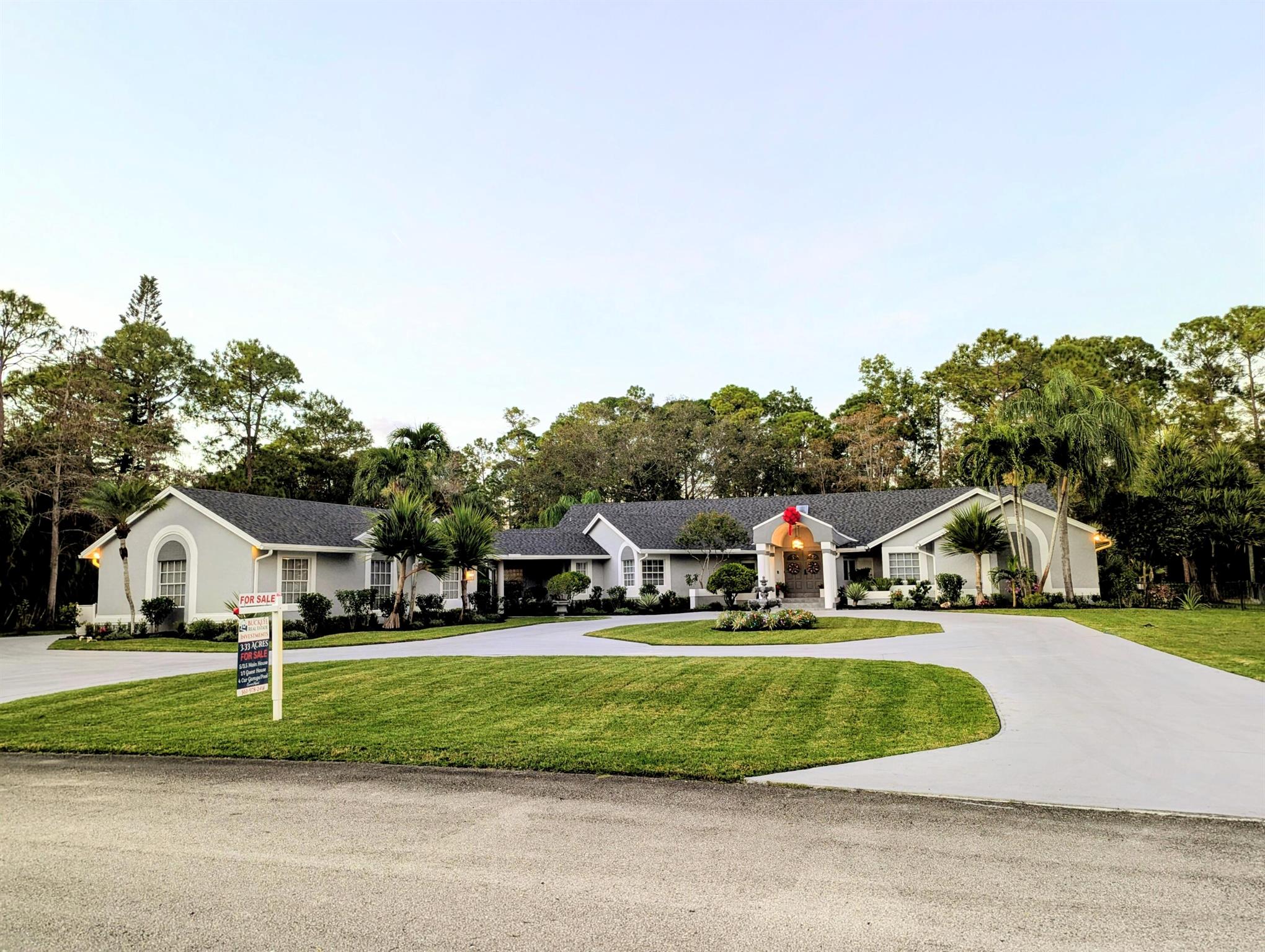 Enjoy privacy, peace and serenity in a park-like setting with this 3.33 acre Paddock Park gem which is one of the largest lots in this highly desirable community, with no HOA. The one story main house features 5 bedrooms and 3.5 baths along with an attached, oversized 4 car garage with AC, separate access and private parking from the main house, along with a detached 1/1 guest house. There is plenty of room to add a tennis, basketball or pickleball court to the backyard or a variety of other projects enabled by the sprawling lot. In terms of land and location, it does not get much better than this. A+ Wellington schools, 20 minutes to PBIA and access to everything Palm Beach has to offer. Your personal finishing touches will make this the family compound you have dreamed about!