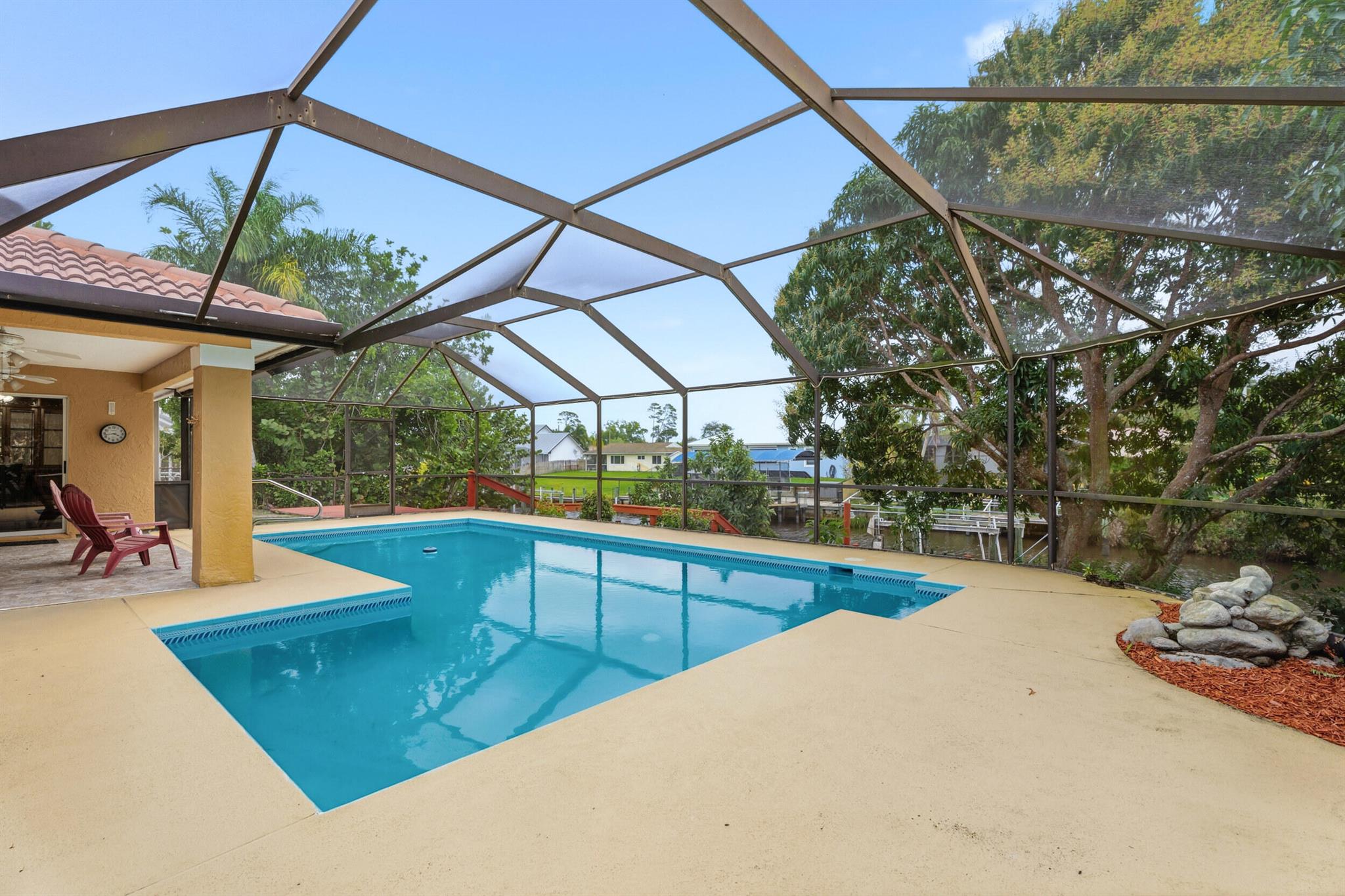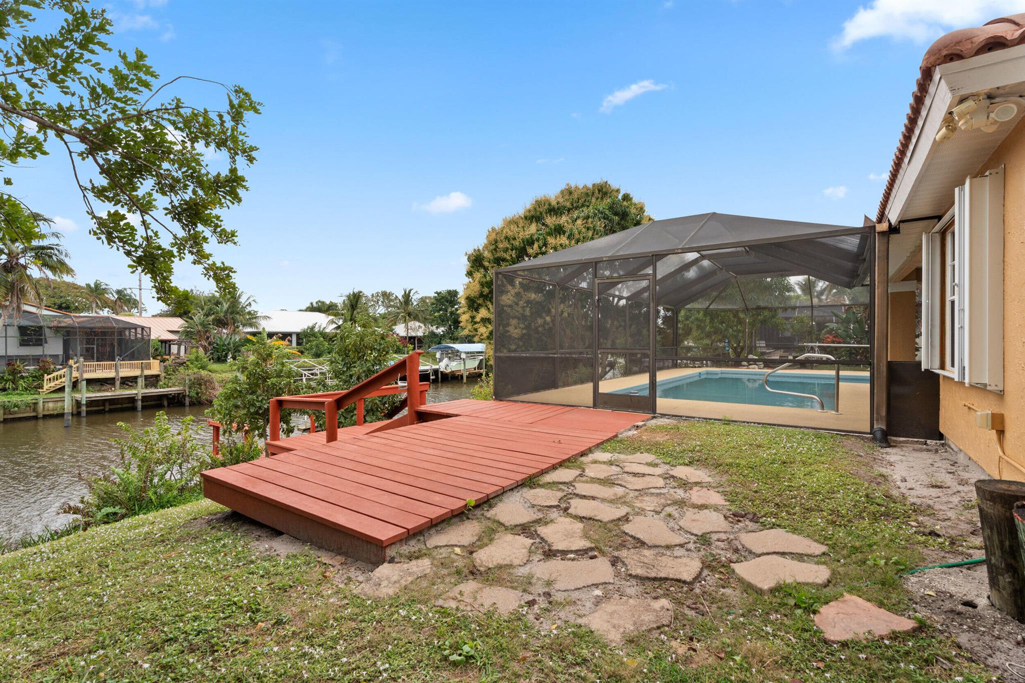 OCEAN ACCESS POOL HOME WITH PRIVATE DOCK WITH BOAT LIFT AND ADDITIONAL DECK LEADING UP TO POOL AREA. LARGE HEATED POOL IS SCREENED IN AND HAS PLENTY OF PATIO SPACE FOR ENTERTAINING. 2 SHEDS FOR EXTRA STORAGE. EAT IN KITCHEN, DINING ROOM AND LIVING ROOM, TILE THROUGHOUT, OVERLOOKING BEAUTIFUL BACKYARD. GRANITE KITCHEN COUNTERS AND STAINLESS-STEEL APPLIANCES. LARGE MASTER BEDROOM WITH BEAUTIFUL MASTER BATH. VAULTED CEILINGS, ACCORDIAN SHUTTERS, BRAND NEW AC. NEW ELECTRIC POOL HEATER, WATER HEATER IN 2021, SOLAR PANELS TO KEEP ELECTIRC BILL TO A MINIMUM. OVERSIZED DRIVEWAY WITH ROOM TO PARK BOAT OR RV
