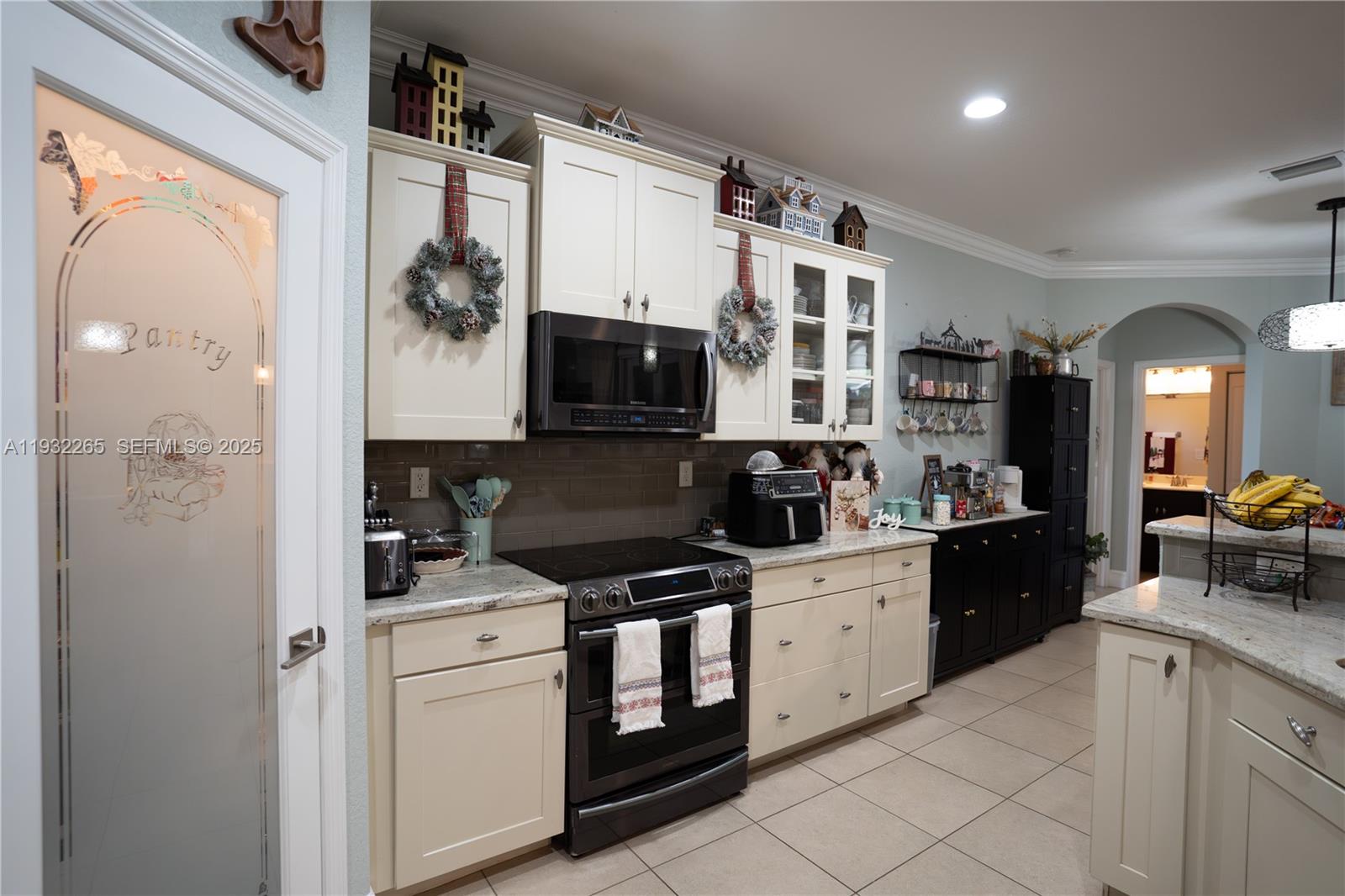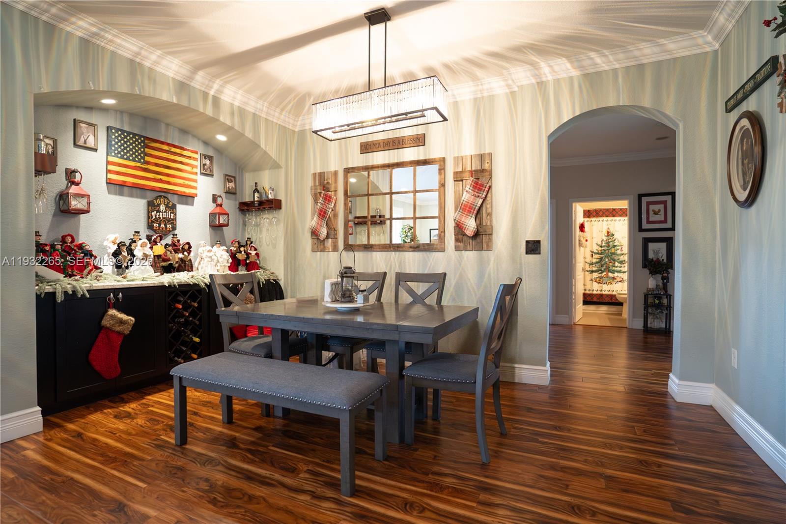 Exquisite Florida living awaits in this stunning 4-bedroom, 3-bath residence, on an oversized lot within a serene, private cul-de-sac. Step outside to your own private oasis, where the fully screened outdoor area is designed for year-round enjoyment. The centerpiece is a 38’ x 15’ saltwater pool with a modern heat pump, a 8’ x 8’ Jacuzzi and a swim-up bar, ideal for entertaining family and guests. The space is designed to take full advantage of Florida’s enviable climate, offering seamless indoor-outdoor living. Inside, the home showcases a highly desirable split floor plan, allowing for privacy and functional living. The interior has been thoughtfully upgraded with crown molding, engineered laminate flooring, and plantation shutters, creating a sense of refinement and timeless elegance. The gourmet kitchen is equipped with new stainless-steel appliances, a stylish tile backsplash, and abundant cabinet space. Beyond the pool and interior spaces, the property offers ample room for boat and RV parking, making it ideal for boating enthusiasts or those with active outdoor lifestyles. A professional-grade security camera system and impact windows and doors adds extra layers of peace of mind. Set in a sought-after location, this home provides the perfect balance between privacy and convenience. Residents enjoy easy access to shopping, dining, and entertainment. Experience the ultimate in Florida living with privacy, luxury, and functionality all in one exceptional property.