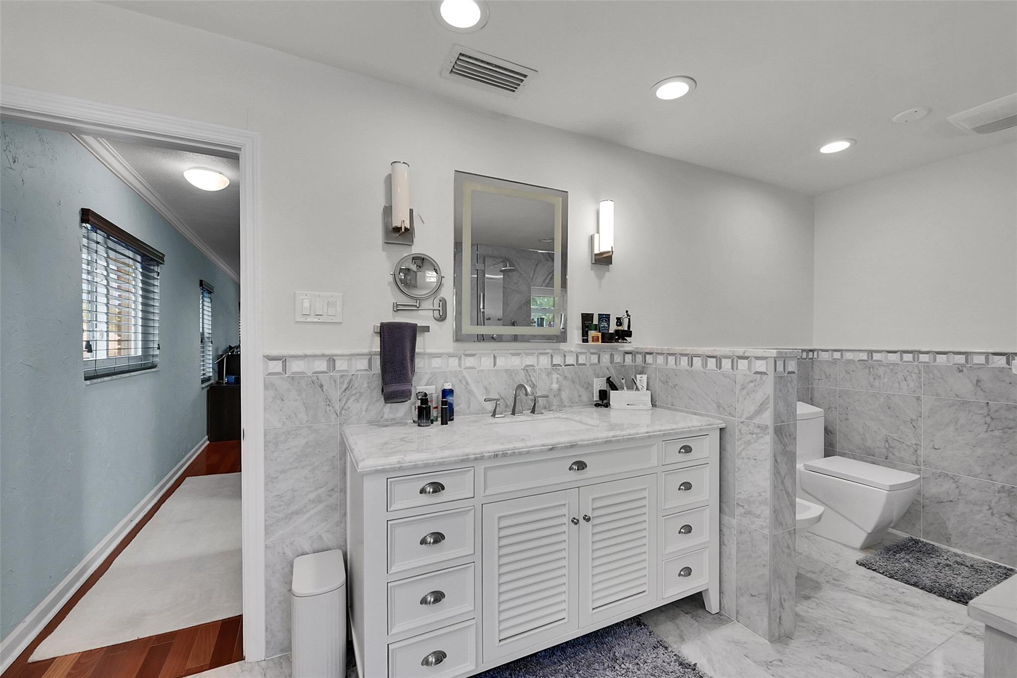 Brick estate home on an oversized, private, corner lot offering nearly 4,000 square feet under air with 4 bedrooms including 2 primary suites, 4 full and 2 half baths. Dramatic 20-foot foyer with curved staircase and high ceilings opens to expansive first-floor living and family rooms with custom fireplace feature wall. Second floor features three bedrooms including a spacious primary suite with huge walk-in closet and renovated spa-style bath. One bedroom with en-suite on the first floor plus a flexible room ideal for office, gym, or guest space. Kitchen with granite counters, center island, stainless steel appliances, double ovens, breakfast area, and separate formal dining. Oversized two car garage and huge pool. Roof 2019, impact windows, and ac units 2023.