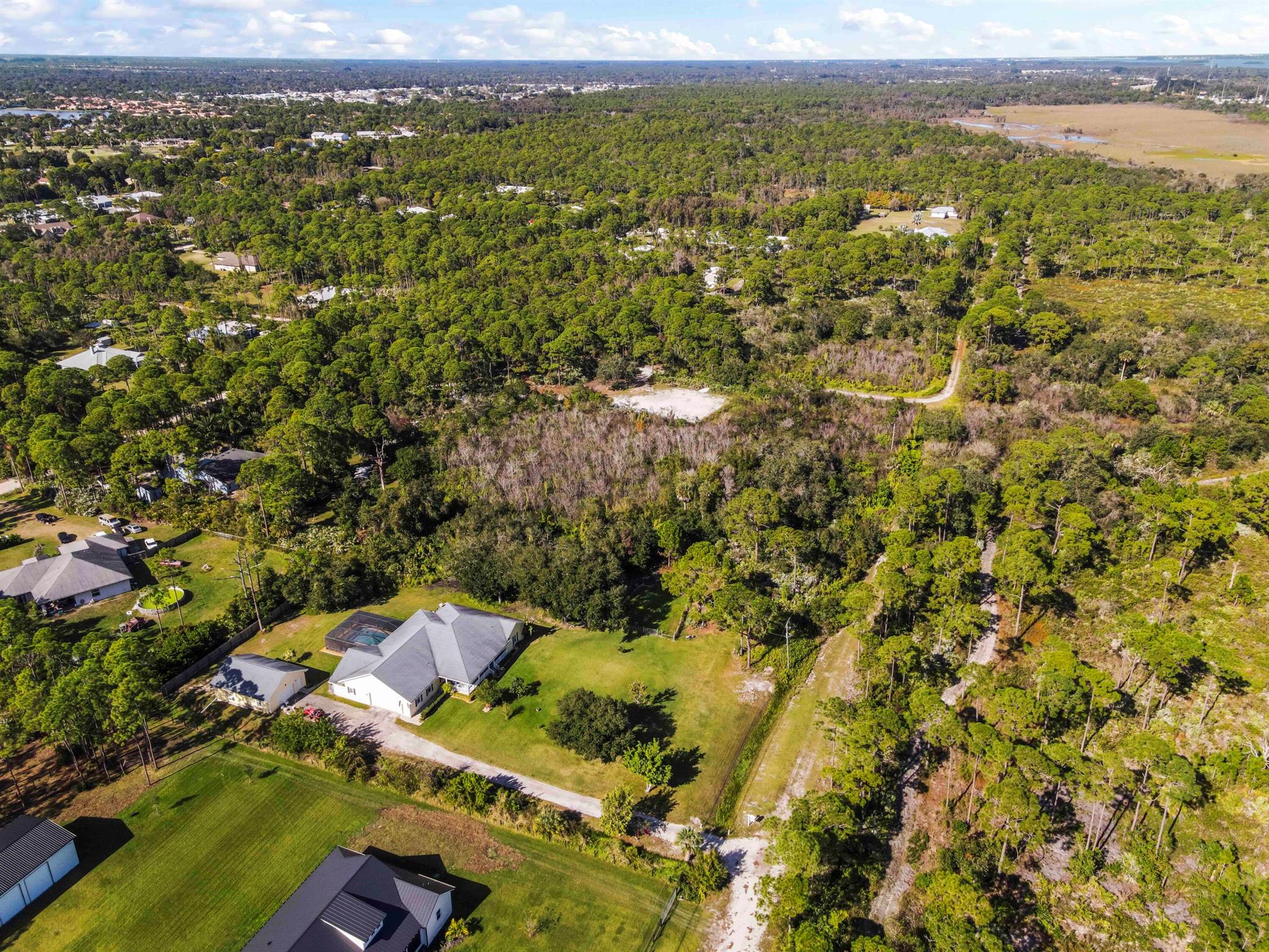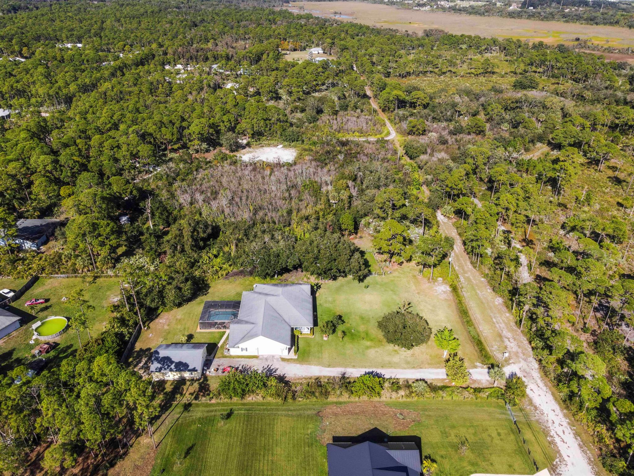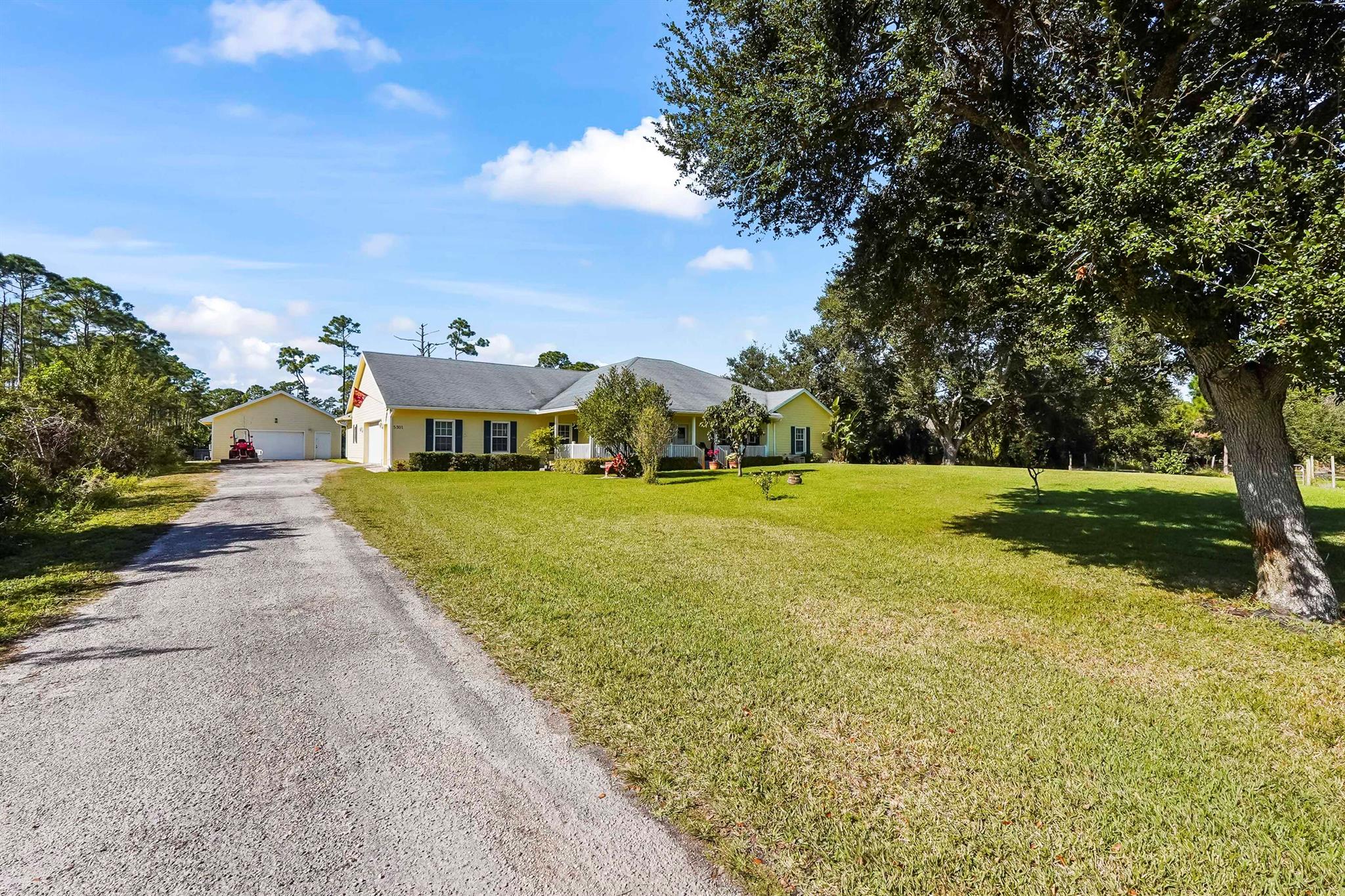 Experience the ultimate freedom of acreage living without sacrificing coastal convenience in this massive 5-bedroom plus den, 3-bath estate. Situated on a sprawling 2.3+ acre compound--comprising a raised 1.15-acre homesite and an included adjacent 1.15-acre parcel--this property offers unparalleled privacy surrounded by 300+ acres of nature preserve. It is a true dream for those seeking the ''farm life'' lifestyle, with ample space to park RVs, boats, and four-wheelers, all while being just 15 minutes from the beach and 7 miles from Downtown Fort Pierce. This community setting provides a serene backdrop of mature trees and Old Florida charm