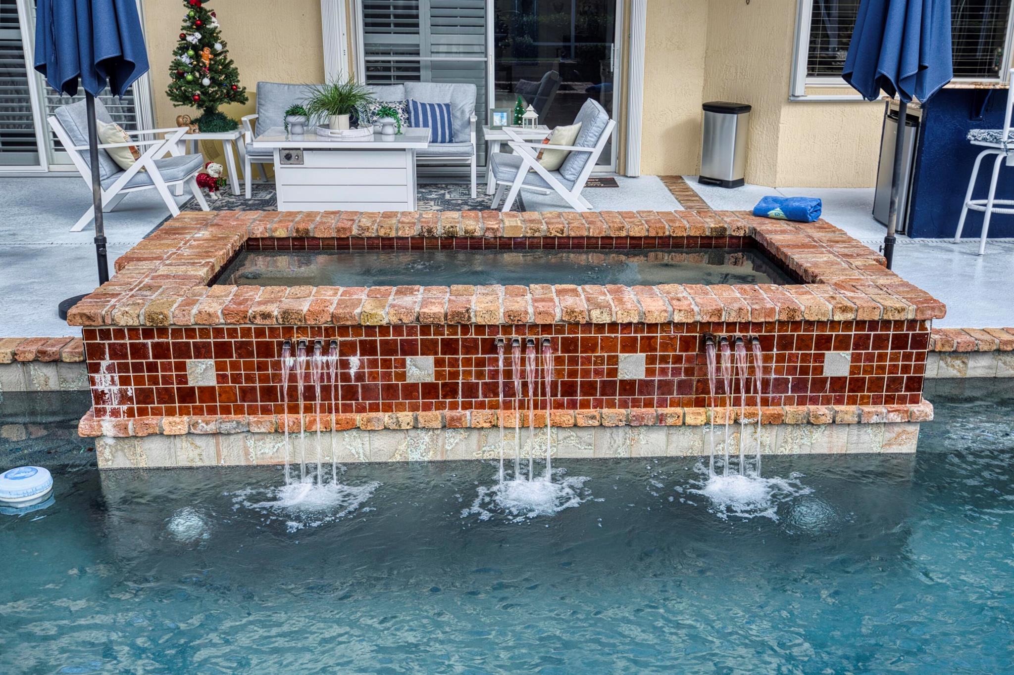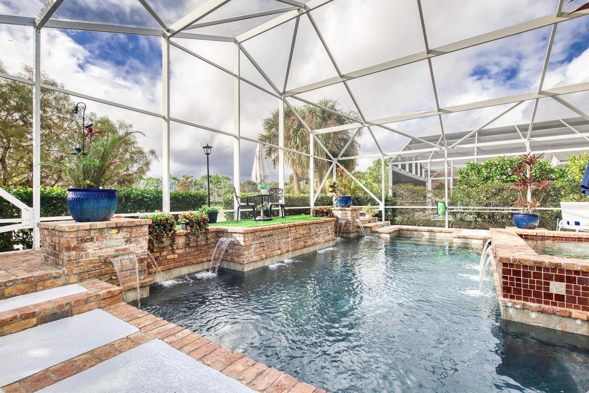 This exceptional home in Heritage Oaks pairs modern construction with extensive upgrades, highlighted by a truly custom resort-style pool and spa. Designed as the centerpiece of the property the enclosed pool features a raised deck with eight cascading waterfalls, finished in Chicago-style brick and overlooking a peaceful lake, creating a striking outdoor retreat ideal for both relaxation and entertaining. The custom outdoor summer kitchen is equally impressive, offering granite countertops, a refrigerator, side burner, and commercial-quality BBQ grill. Inside the home showcases tile and marble flooring, granite countertops in the kitchen and front bath, and lighted plant shelves. With numerous enhancements and priced below the cost of duplication, this home presents an great opportunity.