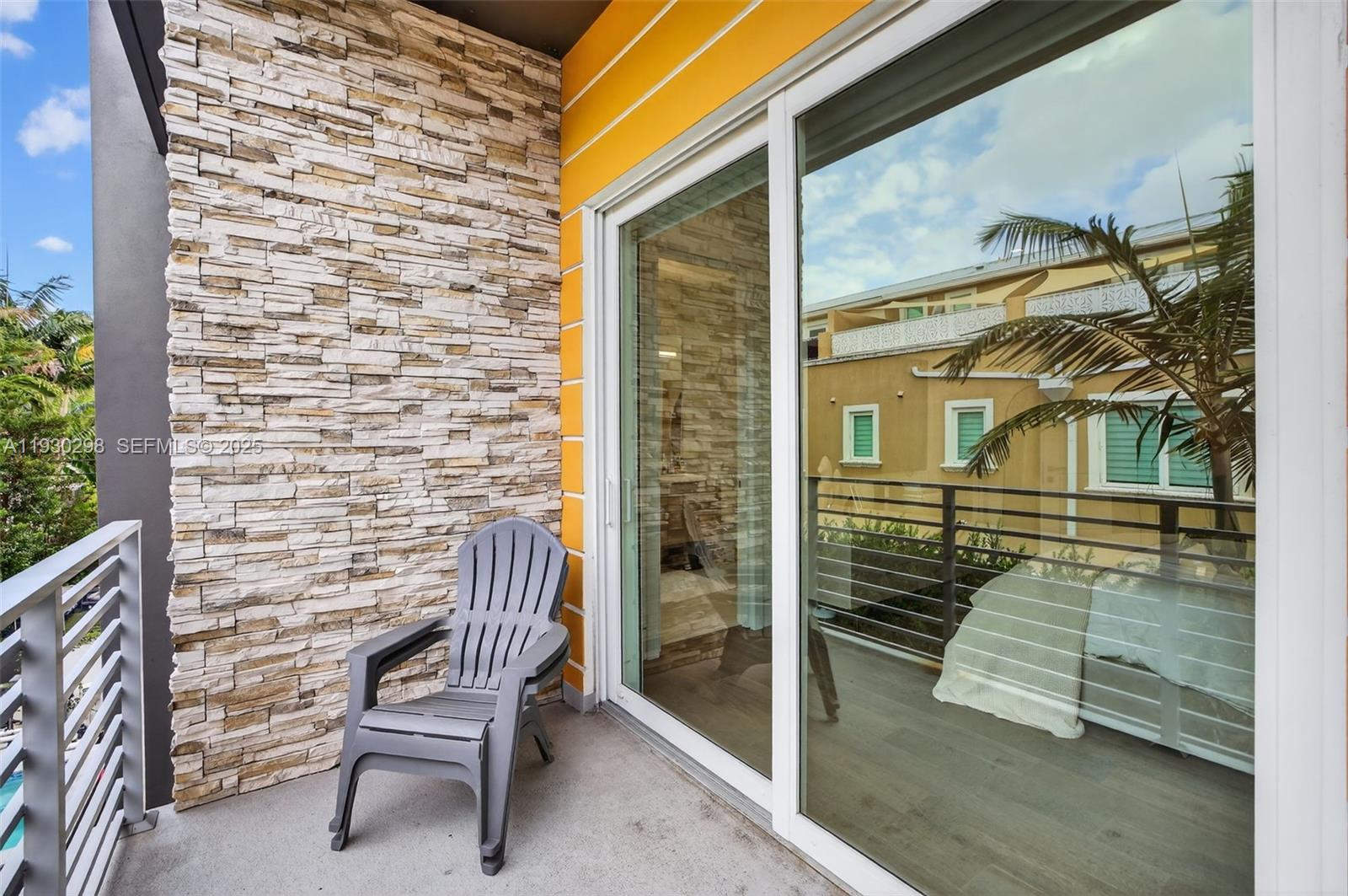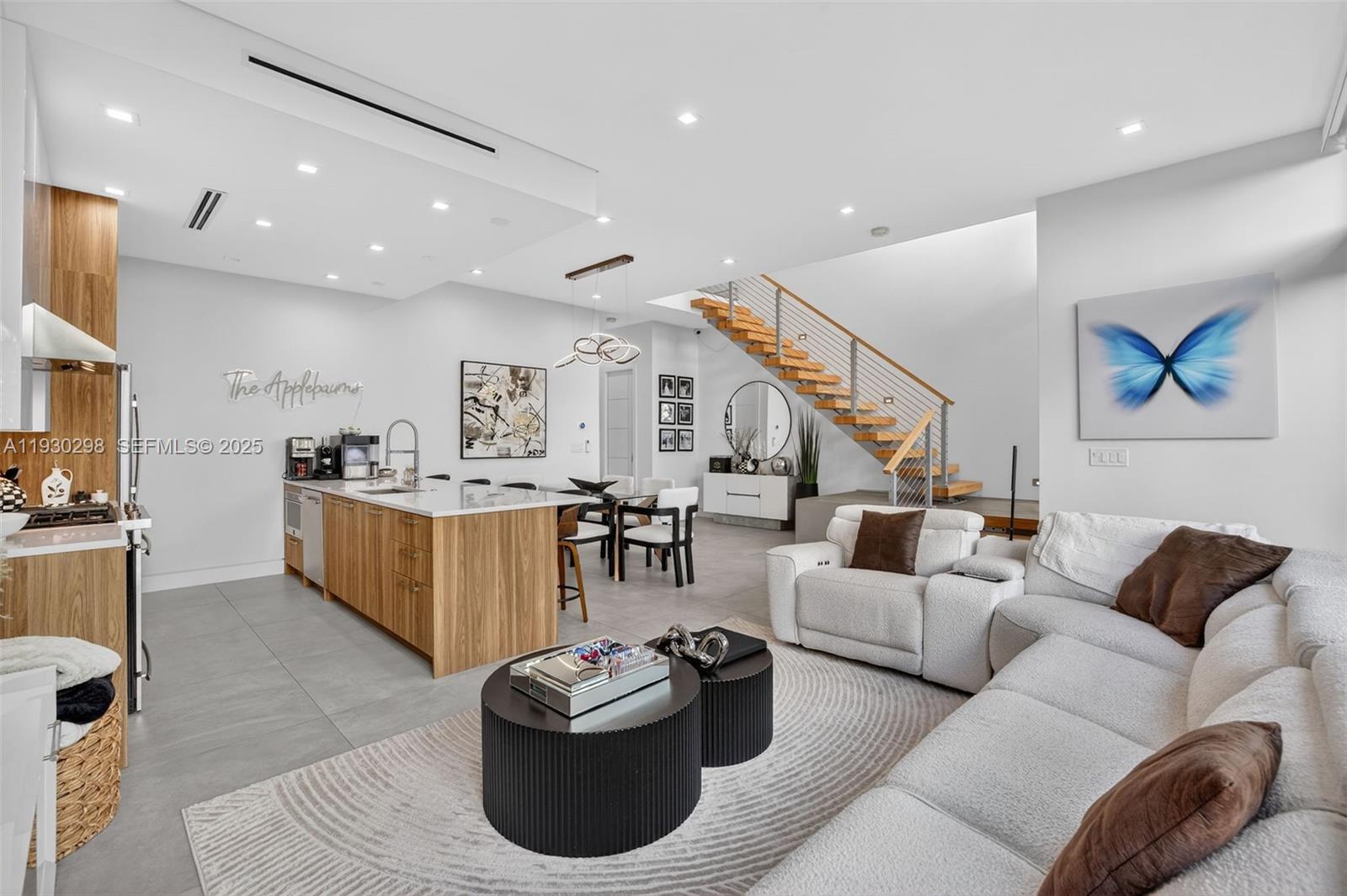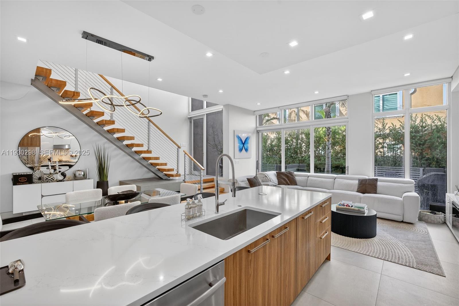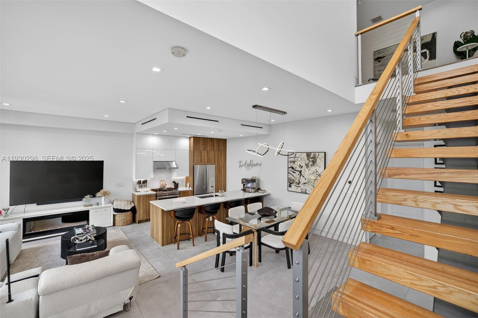 Impeccably maintained modern townhome located in a boutique, eight-unit Victoria Park community. Enter through a dramatic glass-front entry spans two stories, creating a bright, airy atmosphere and effortless indoor-outdoor flow. The open-concept layout is enhanced by soaring 10+ foot ceilings and abundant natural light. A statement floating staircase with stainless accents anchors the main living space. The designer kitchen is outfitted with JennAir stainless appliances, gas cooking, Dell Anno Cabinetry and quartz counter seating. The primary suite serves as a private retreat with its own balcony, walk-in closet, dual vanities, and a spacious glass-enclosed shower and tub. A second-floor loft offers flexible use as a media room or office separating the Primary from the additional two bedrooms. Move right in as this unit comes with custom built out closets, motorized shades, smart home features throughout, and a tankless gas water heater for your convenience. Unbeatable walk-to location near Fort Lauderdale’s newest dining, fitness, shopping, and everyday conveniences. Right around the corner from Holiday Park and the Florida Panthers Practice Facility! Sqft. from Developer is believed accurate.
