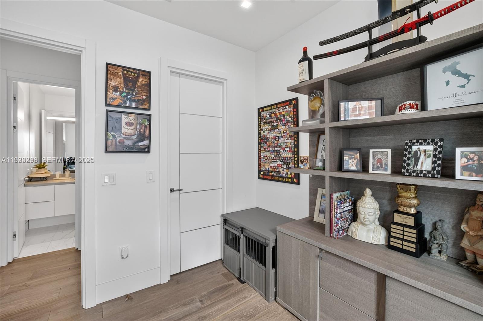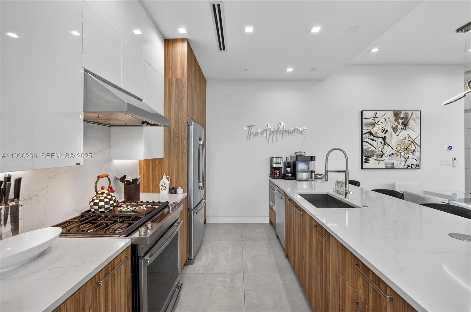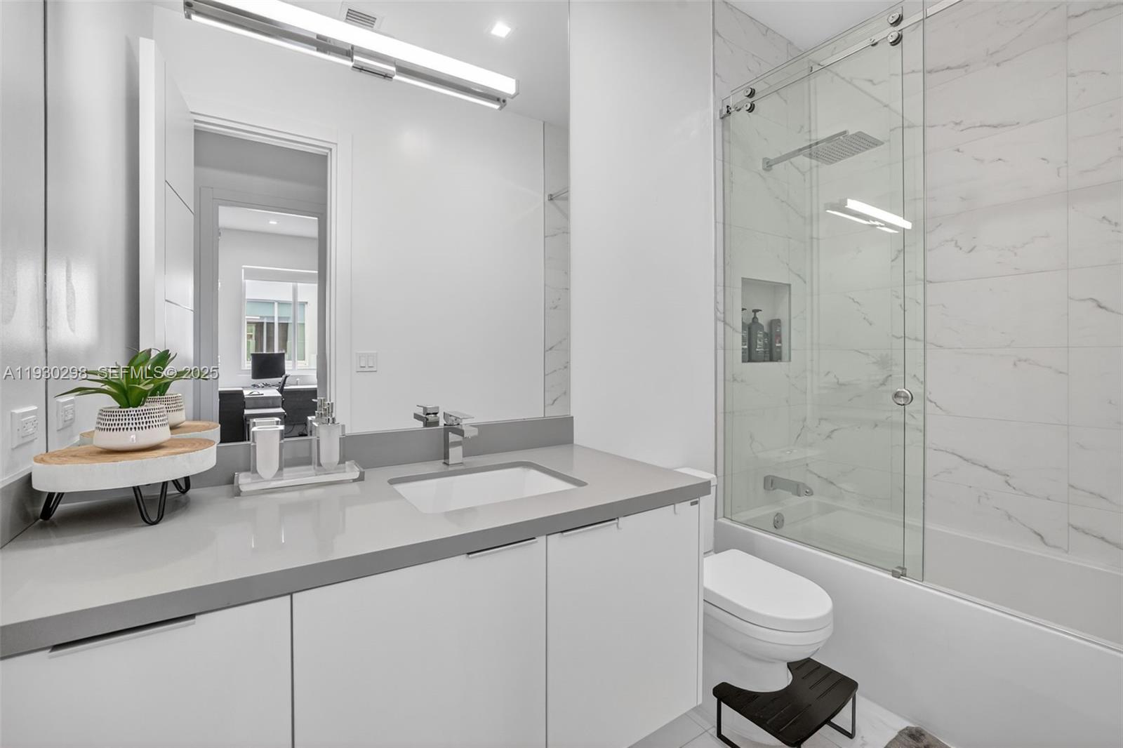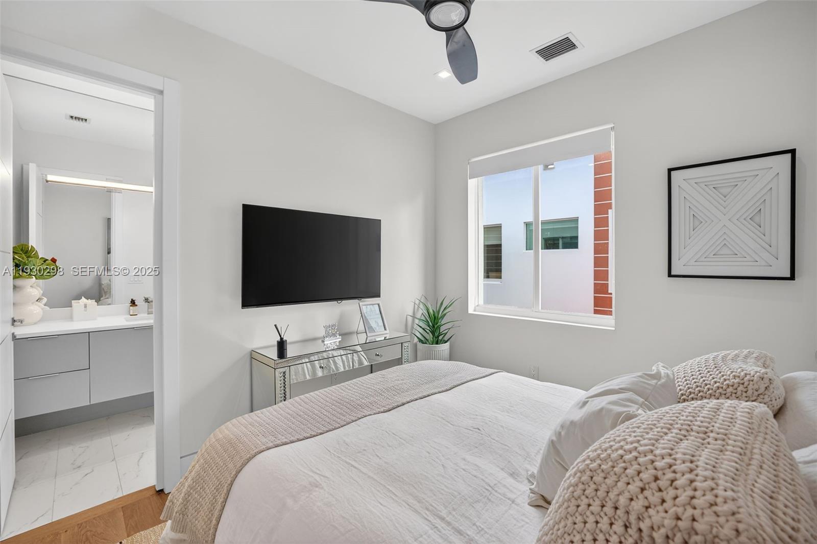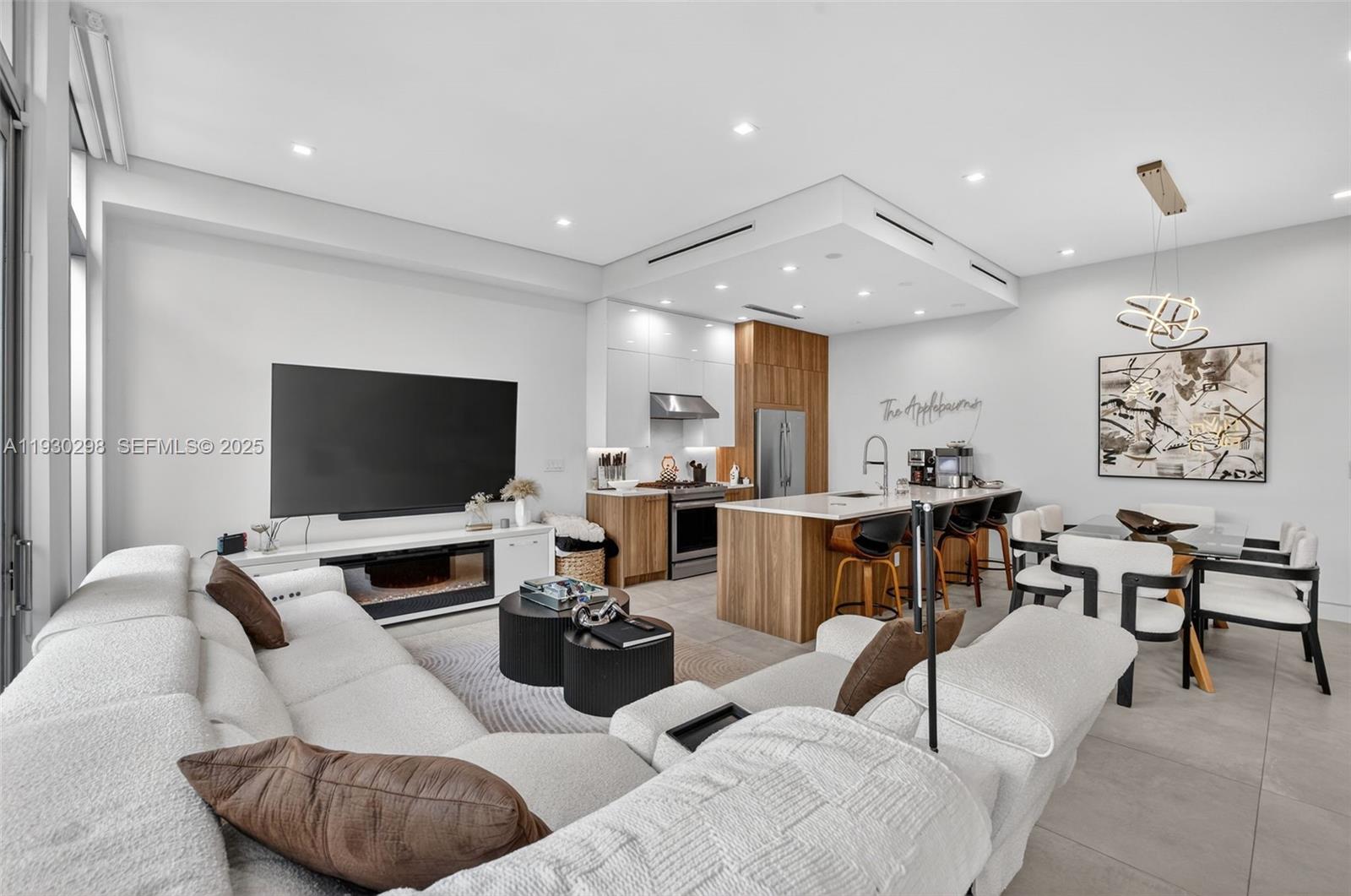 Impeccably maintained modern townhome located in a boutique, eight-unit Victoria Park community. Enter through a dramatic glass-front entry spans two stories, creating a bright, airy atmosphere and effortless indoor-outdoor flow. The open-concept layout is enhanced by soaring 10+ foot ceilings and abundant natural light. A statement floating staircase with stainless accents anchors the main living space. The designer kitchen is outfitted with JennAir stainless appliances, gas cooking, Dell Anno Cabinetry and quartz counter seating. The primary suite serves as a private retreat with its own balcony, walk-in closet, dual vanities, and a spacious glass-enclosed shower and tub. A second-floor loft offers flexible use as a media room or office separating the Primary from the additional two bedrooms. Move right in as this unit comes with custom built out closets, motorized shades, smart home features throughout, and a tankless gas water heater for your convenience. Unbeatable walk-to location near Fort Lauderdale’s newest dining, fitness, shopping, and everyday conveniences. Right around the corner from Holiday Park and the Florida Panthers Practice Facility! Sqft. from Developer is believed accurate.
