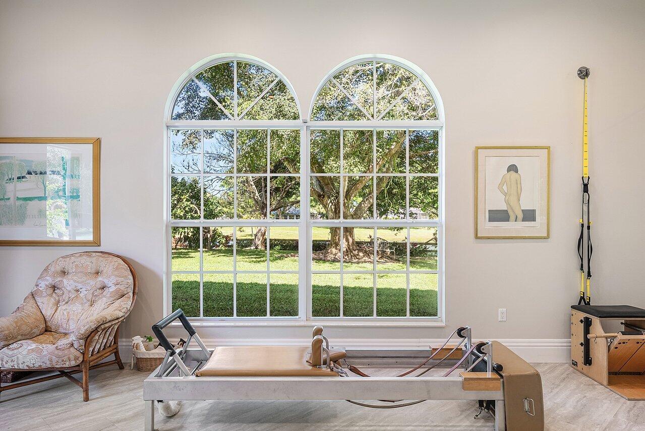 Situated on 2.57 acres of prime lakefront within the exclusive, manned-gated community of Tierra Del Rey, this private estate offers rare acreage, expansive water views, and exceptional lifestyle flexibility. With approximately 458 feet of lake frontage, the property is perfectly suited for equestrian use, sport courts, or an extraordinary seven-car (or more) garage setup, all within a serene, private setting framed by unforgettable sunsets.A private gated entrance leads to a 5-bedroom, 4-bath residence with a split floorplan. Dramatic 22-foot ceilings enhance the living and dining rooms with a featured wine display area, while the west wing hosts the expansive primary suite and a bedroom.