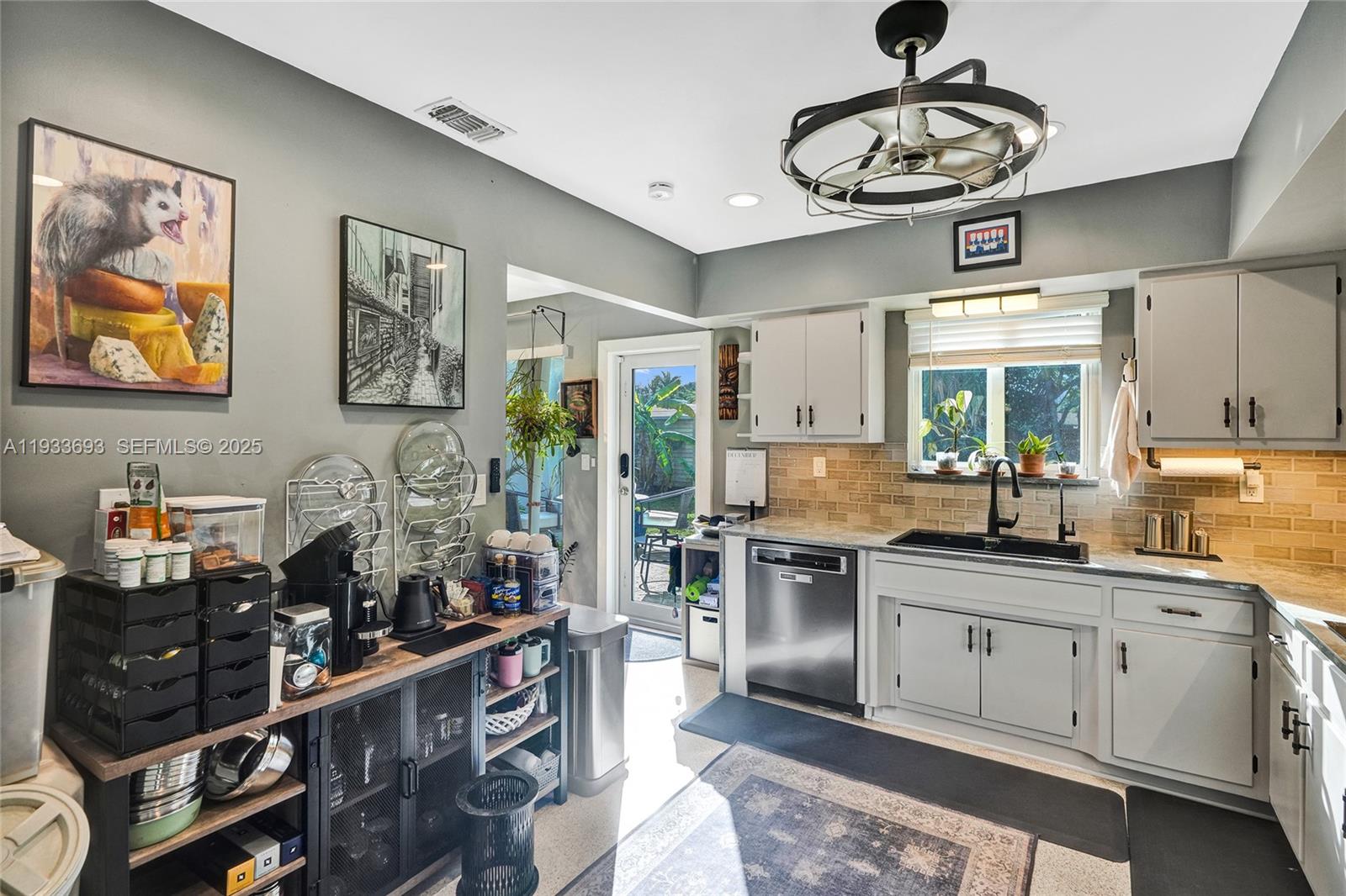 This home is in the charming neighborhood of Sky Lake in North Miami Beach. This currenr seller are the second owners on record, come be the third owner(s). The current owners have loved this home like the first, and they have put a lot of love into the home. Come and view this beautiful home that is awaiting you (and your family) to enjoy it. Located near I-95 and a few minutes access to all major highways for an easy commute anywhere and minutes to worship centers, Aventura Mall, and 20 minutes to the beach. The home boasts plenty of natural light throughout. The newly updated quartz countertops, AC unit, Impact Doors, Impact Windows, home electrical, tankless water heater, and Impact Garage door were all installed in 2023 or sooner. All renovations have been permitted with the city of NMB. Home features original coral terrazzo floor that has been polished back to its original beauty. With an extended paved patio, tropical landscaping, ample lighting and a privacy fence, the backyard is ready to be enjoyed day or night.