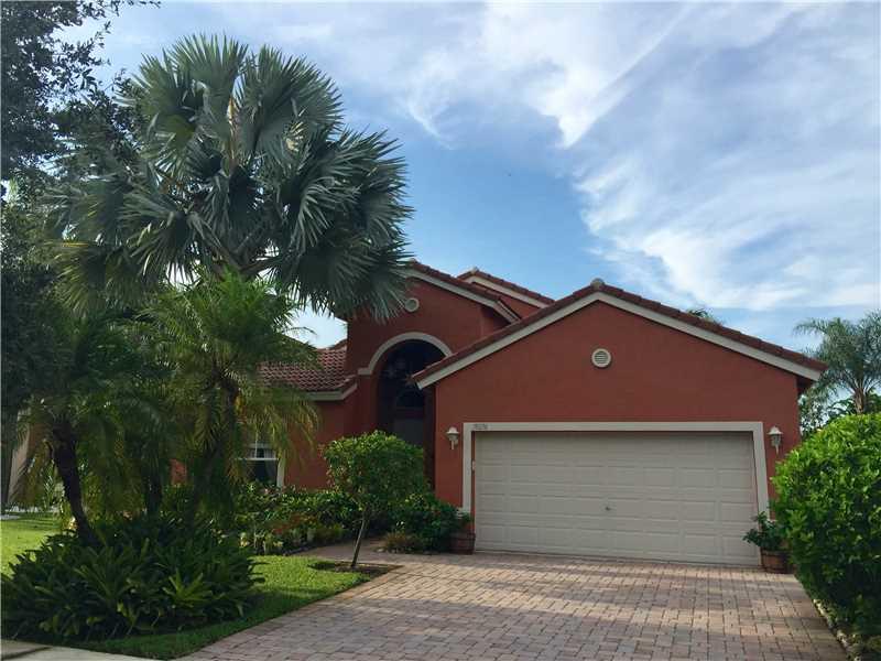 BEST LAKE VIEW, LOCATION & MODEL IN THIS GATED COMMUNITY ! One story house in West Miramar Sunset Lakes gated community.4 large bedrooms,3 full baths. 2 Car garage Large Kitchen, w 42" wood kitchen cabinets / center island ,18inch Tile throughout living area , Very High Ceilings, Open Floor Plan, Lush Landscaping , A Rated Schools & Central Location to all Major Highways make this Property an Amazing Find. Very well maintained home with lots of care from original owners. Showings are fast and easy!