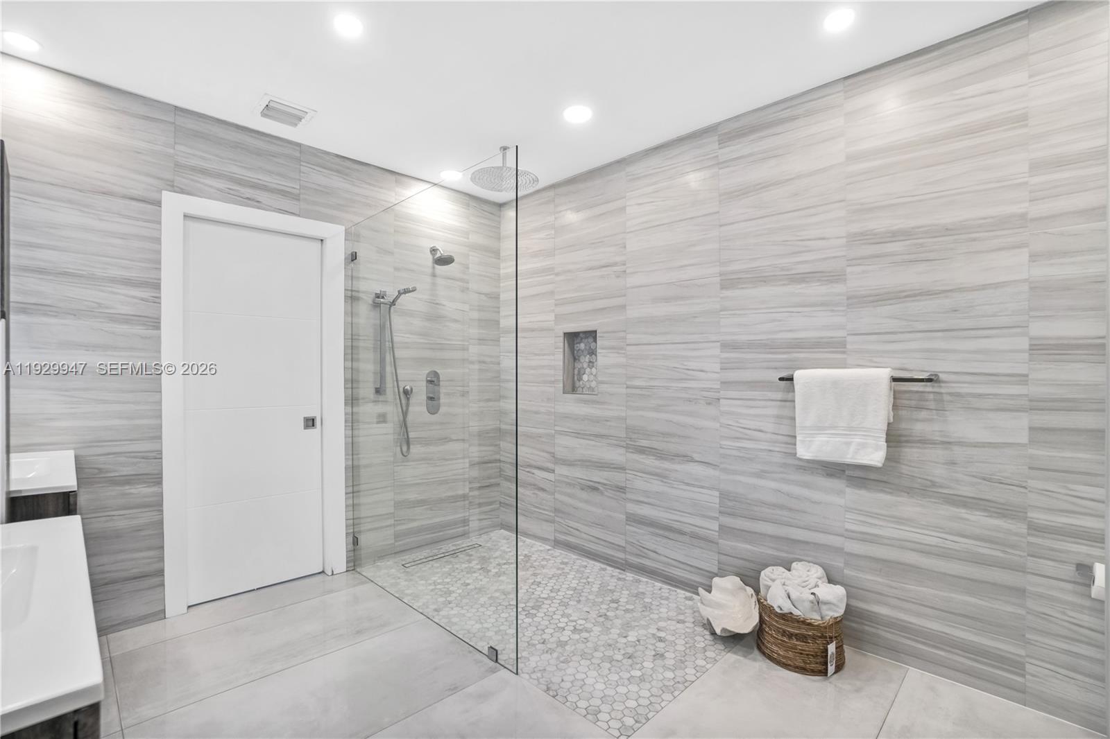 Beautifully remodeled, spacious home on an oversized corner lot. Featuring a great layout with high ceilings, this residence offers 5 bedrooms, 3 bathrooms, and 3 reception areas. The chef’s kitchen includes stainless steel appliances and large pantry. Enjoy a beach-style entry to a heated saltwater pool and spa with smooth finish and automated lighting. Outdoor kitchen with 36" gas and charcoal BBQ, hibachi grill, refrigerator, and ice maker. Additional highlights are an insulated, air-conditioned 3-car garage with cameras, professional half-size basketball court, 24' porcelain tile floors, LED lighting, CAT5 wiring, covered front and back porches and a striking glass staircase. Turnkey and ideal for entertaining.