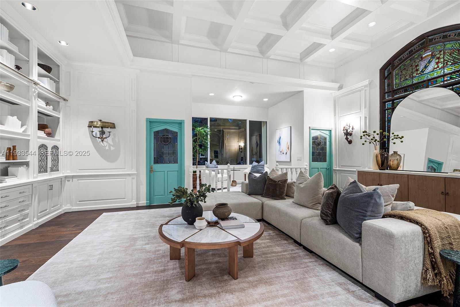 Rare mediterranean estate exuding sophistication and beach vibes in the heart of Miami Beach. Designed by acclaimed architect Carlos B. Schoeppl, this recently updated home is marked with striking original details, living room with cathedral beamed ceilings, fireplace, entertainment room with oak bar, library with soaring ceilings and masterful craftsmanship. The 31,320-SF double-platted corner lot stretching from Flamingo to Pinetree Drive, is secluded with tropical privacy landscape and complete with an immense backyard with lap pool, playground, and space for more amenities. Located minutes to the beach, Bayshore Park, Golf Course, South Beach. Own one of the largest dry lots in MB!