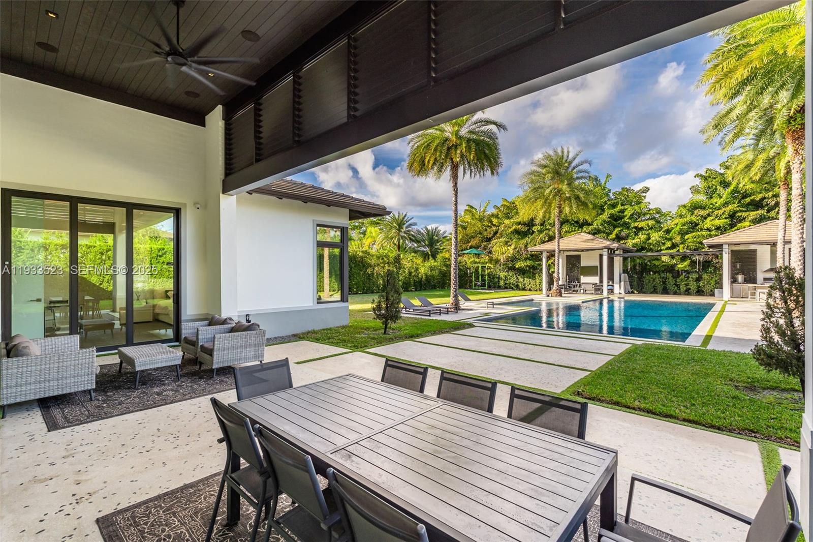 Upon entry, a breathtaking resort-style pool with Bali-inspired cabanas creates an Aman-like ambiance and seamless indoor–outdoor living. Located in the heart of South Miami, within the exclusive Sunset Oak Estates enclave of just six residences, this home defines modern luxury. This rare, fully integrated smart home, designed by a top architect, features massive 16-foot ceilings in the main living area, energy generators, a dedicated outdoor gym, and a fully equipped outdoor kitchen with BBQ and teppanyaki. The 4-bedroom, 4.5-bathroom residence offers refined craftsmanship, high-end finishes, abundant natural light, and exceptional entertaining spaces. Ideally situated near top-rated schools, dining, shopping, and everyday conveniences, this is a rare opportunity for private, resort-style living.