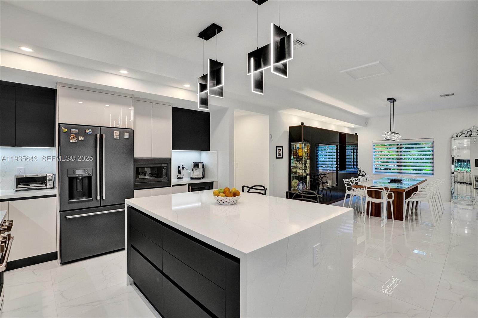 Beautifully renovated 5 bed, 3 bath, home with spacious 2 car garage, boasting soaring 10-foot ceilings located in Skylake. Features spacious living areas with plenty of natural light, ItalKraft kitchen, Cafe Series appliances, open plan layout for entertaining. Elegant porcelain floors, a chef's kitchen with gas stove and custom outdoor summer kitchen, with gas BBQ and lighted pool. Impact windows and doors, split bedroom plan, built in California Closets & closet doors, luxurious Robern medicine cabinet in master bath. Full home 27kw generator. The backyard provides a private oasis for relaxation with a Sonos sound system, custom lighting and landscape design. Move-in ready, just bring your personal belongings. Willing to sell partially furnished. Make it yours today!
