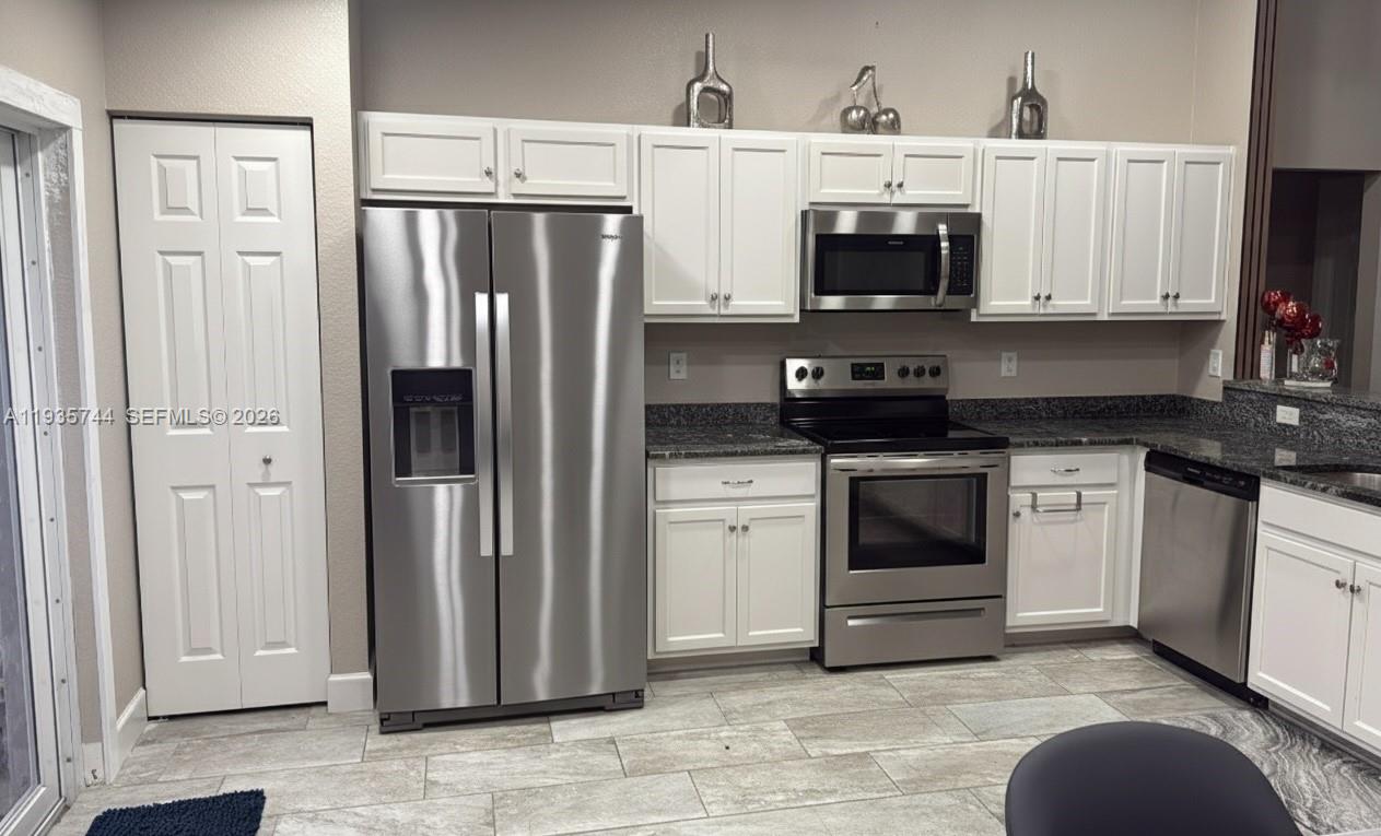 Welcome to this beautifully maintained 3-bedroom, 2-bathroom residence situated on a spacious corner lot, offering a perfect blend of modern interior finishes and expanded outdoor living. The heart of the home features an open-concept layout accentuated by soaring vaulted ceilings and durable ceramic tile throughout the main living areas. The kitchen is equipped with granite countertops, crisp white cabinetry, and stainless steel appliances, all overlooking a central dining area that leads through sliding glass doors to a private lanai, the ideal sanctuary for enjoying the Florida breeze in comfort. The primary suite offers a spacious retreat with a large walk-in closet and an en-suite bath featuring a custom-tiled shower and granite vanity. Outside, the oversized backyard is fully enclosed by a white vinyl fence with double-gate access and includes a newly added storage shed for tools and equipment. This turn-key home is complete with ceiling fans, window blinds, gutters, and an interior laundry room with the washer and dryer included. With ample room on the lot to add a pool, this property offers endless possibilities. Schedule your private tour today to experience this corner-lot gem!