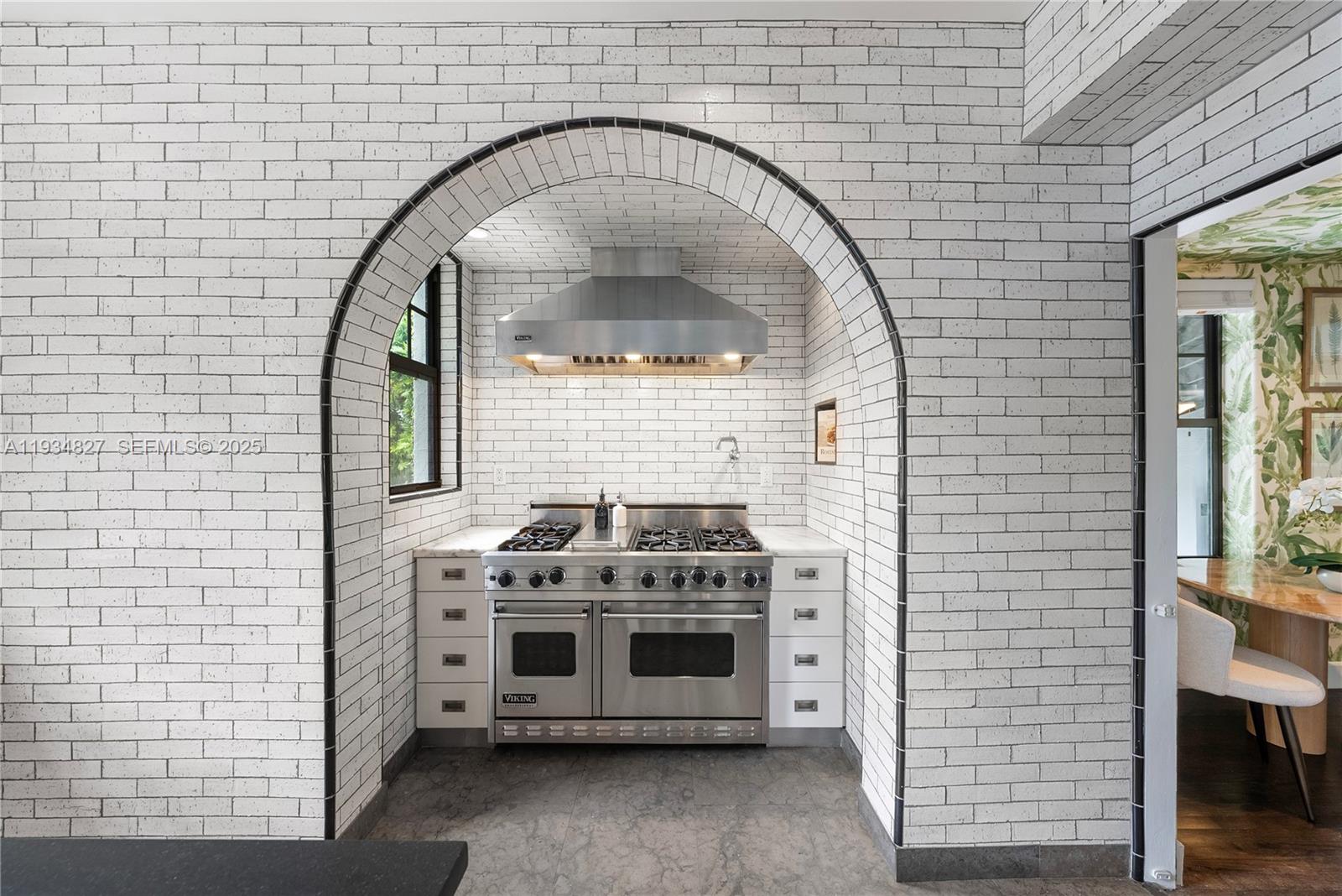 Located on one of the best streets in guard-gated Upper Morningside, this gorgeous 4BD/3.5BA, 3,209SF (total) ivy-adorned residence has been flawlessly renovated with exceptional charm & the highest quality fixtures & finishes. No detail was overlooked in this magnificent home, boasting separate family rooms, bar area, fireplace, Waterworks fixtures throughout, formal dining, upstairs laundry room, full impact glass & new roof. The chef’s gas kitchen features an eat-in island, custom storage & a professional appliance suite. The primary suite includes a stunning bedroom, a dressing area lined with custom-built closets & luxurious en-suite bath. Enjoy a fabulous outdoor patio complete with a pool, water features & a detached 1BD/1BA cabana with a 1-car garage + carport. NOT IN FLOOD ZONE!