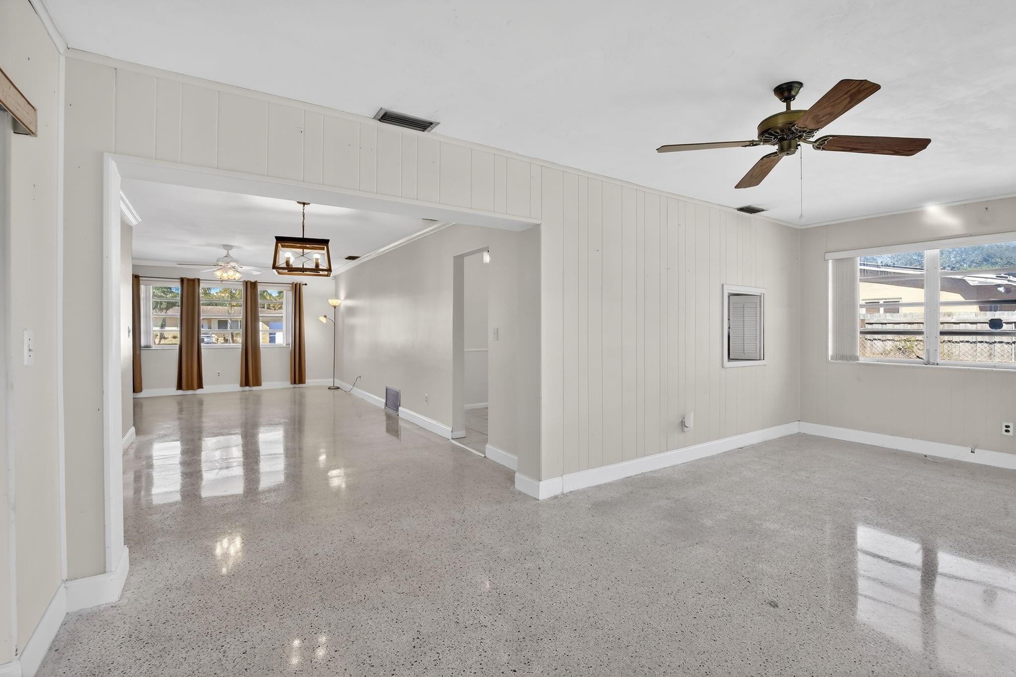 This 3 bdrm/2 bath, pool home has a rare 2 Car garage, which has storage for organizations or hobbies, and offers comfort with endless potential. Two patios, a screened in patio and an open patio around the pool for relaxing or entertaining all year round. The home features a living room and a separate family room, highlighted by classic terrazzo floors. Living area freshly painted. Panel shutters and hurricane proof garage door, no HOA! conveniently located near shopping, restaurants & trnpke. Make this home your own.