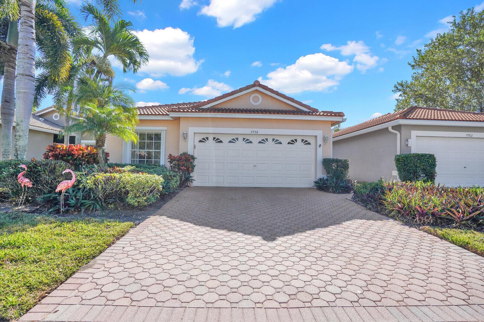 Spacious and light-filled 3-bedroom, 2-bath home featuring a desirable split-bedroom floor plan and a walk-in laundry room. Both the family room and primary bedroom have been custom-extended four feet beyond the builder's standard plan, creating generous living spaces ideal for everyday comfort and entertaining. The primary suite offers double vanities, a Roman tub, and a separate walk-in shower. High ceilings throughout enhance the open, airy feel, while the bright southern exposure fills the home with natural light. Ideally located just a short walk to the club house. The Grove in Boynton Beach is a well-established 55+ community set among scenic lakes, offering peaceful surroundings and beautiful water views. Conveniently located in central Palm Beach County.
