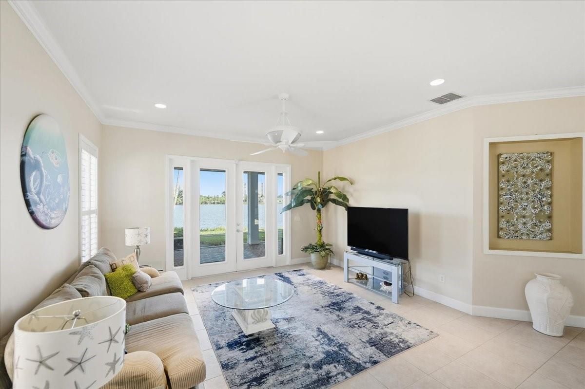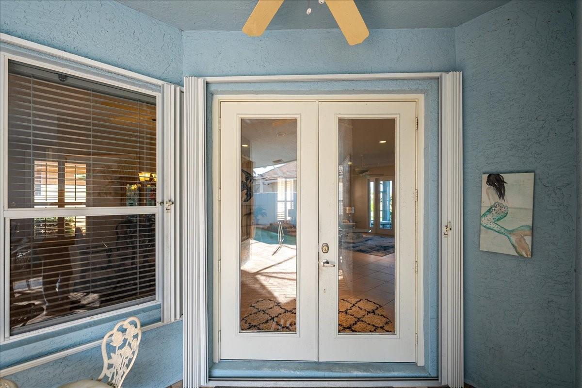 Experience the ultimate coastal lifestyle in this stunning 3BR/3.5BA courtyard pool home, perfectly situated on an extended lot just steps from Pepper Park, the Navy SEAL Museum, and private beach access. This unique property offers a rare blend of river and ocean living with available boat slips and a private walkway leading directly to the sand. The heart of the home is a secluded, screened-in courtyard featuring a private pool, summer kitchen, outdoor shower, and a dedicated pool bath, making it an entertainer's dream. Inside, the residence exudes elegance with volume ceilings, crown molding, tile flooring, and plantation shutters throughout