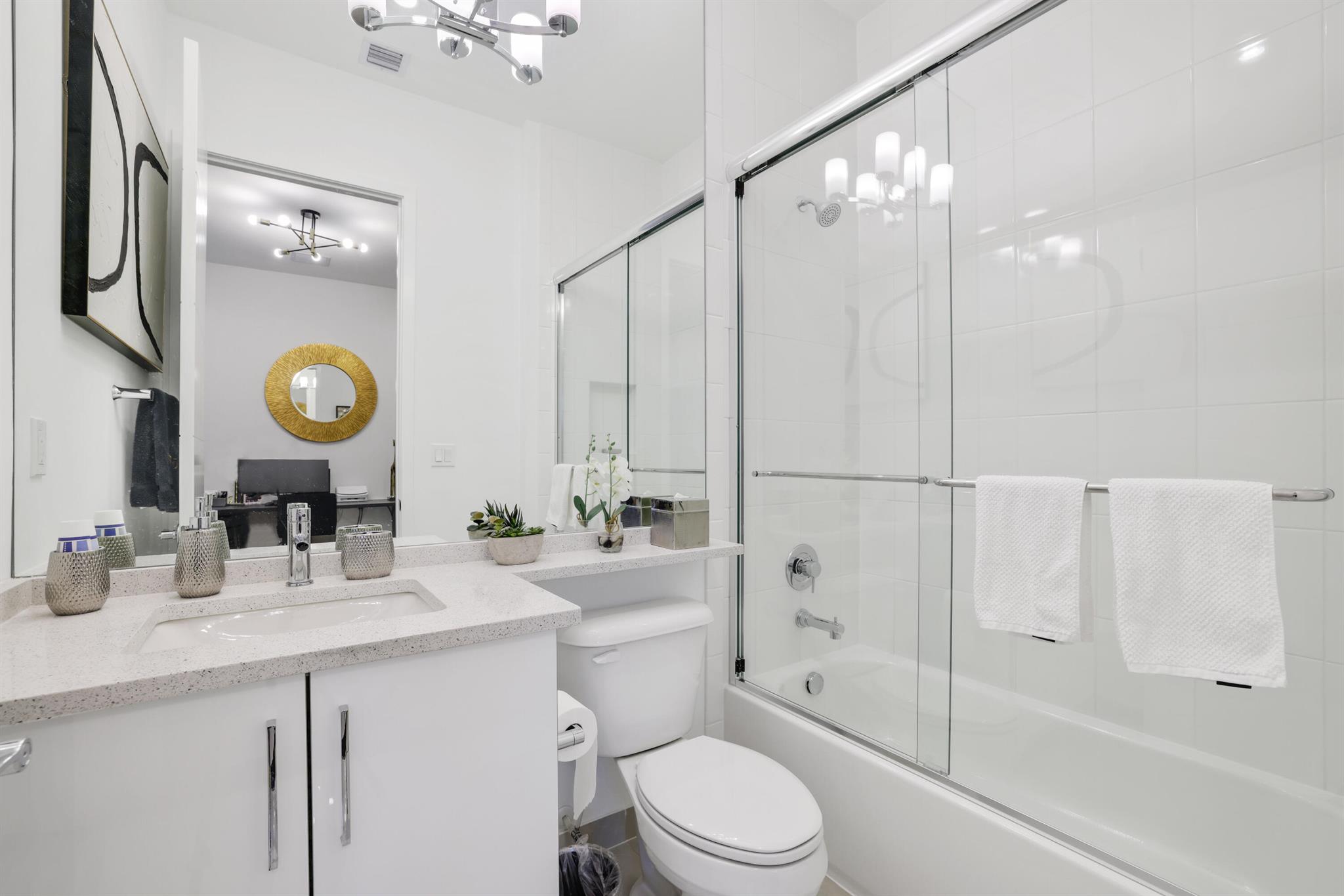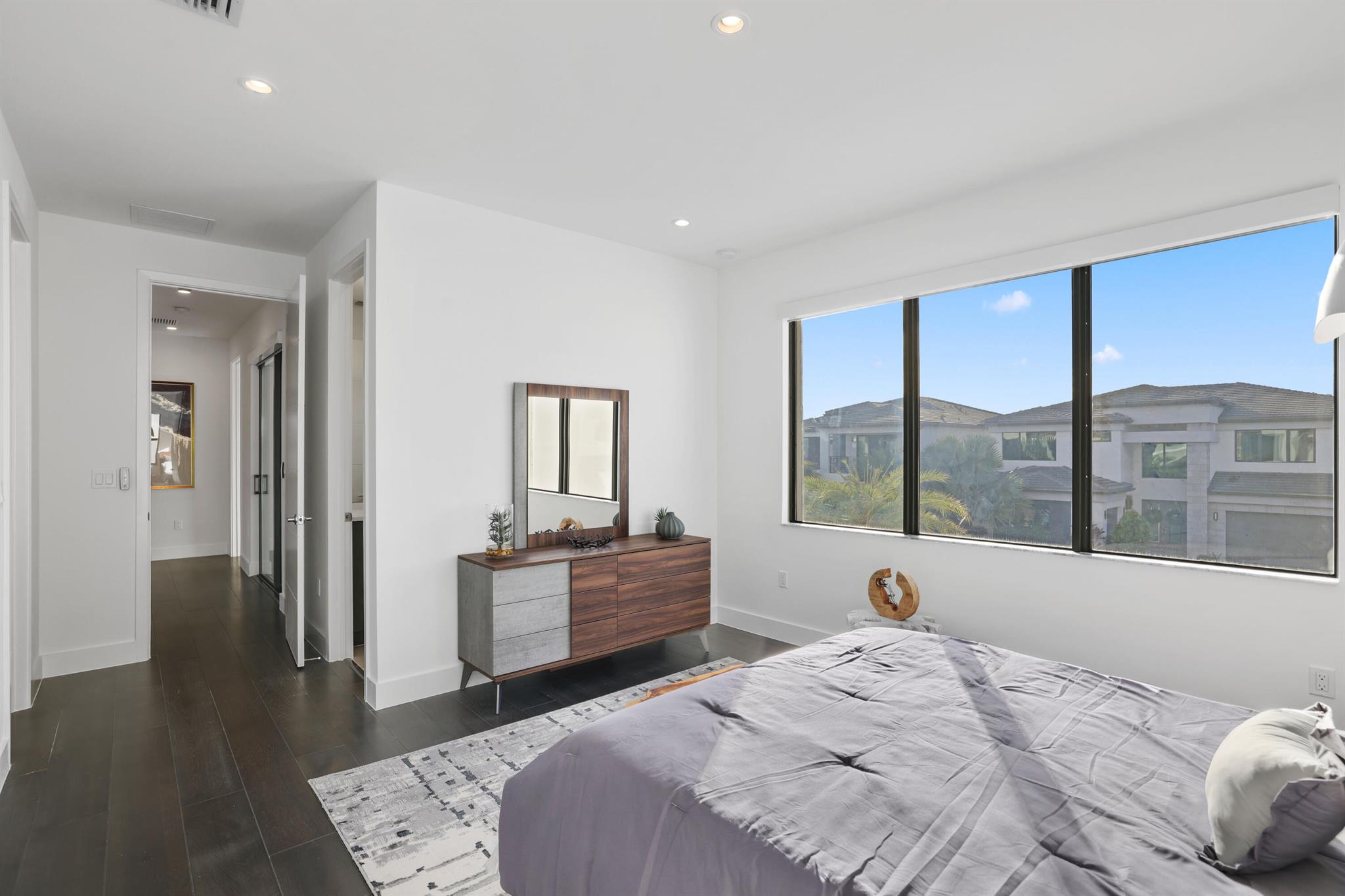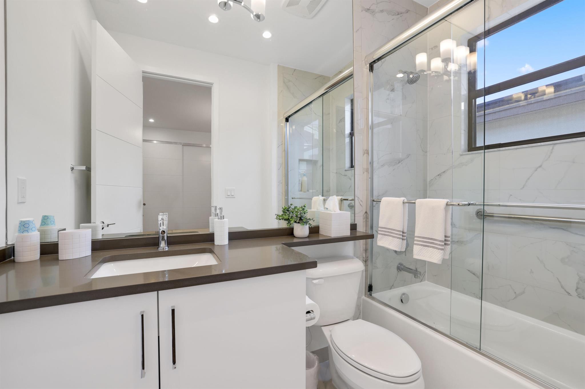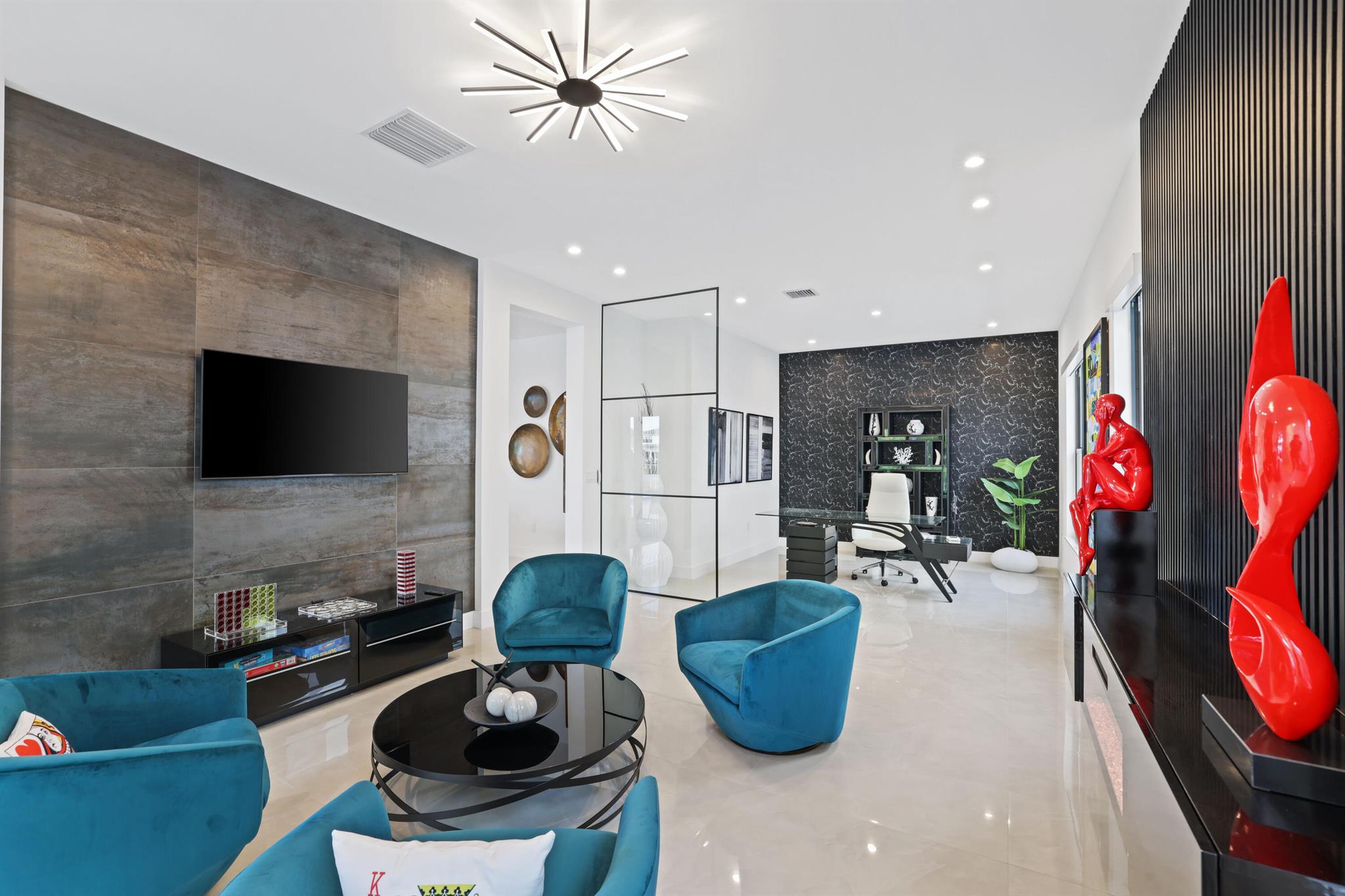 Turnkey luxury in Boca Raton's most prestigious community, the Maldives model in Lotus by GL Homes. This meticulously upgraded residence offers a total of 7,246 square feet with 5,378 square feet under air, featuring an array of premium finishes and smart design throughout. The gourmet kitchen showcases Wolf appliances, upgraded cabinetry, and a generous center island, while the first floor boasts Italian porcelain tile (4x4) and rich wood flooring upstairs. The spa-inspired master bath features a soaking tub and frameless glass shower, and contemporary details include a glass wall in the Club room, a glass door wine closet, and glass banisters. Electric shades throughout, upgraded light fixtures, and designer wallpaper and wall treatments complement the home's refined aesthetic.