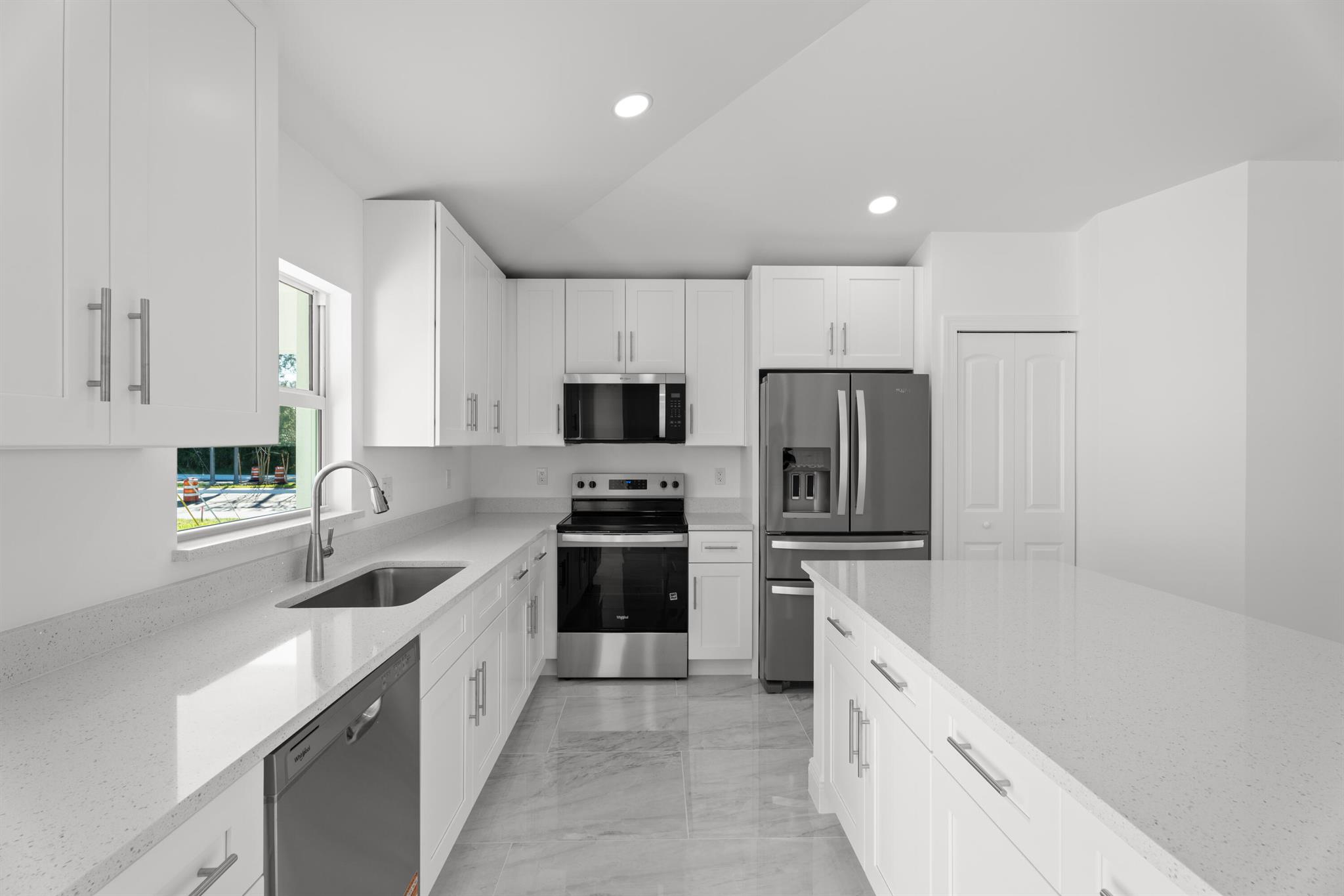 Step into luxury and style in this beautifully designed new construction home. Featuring a Standing Seam metal roof, PGT Impact windows and doors, Top Rated Icicle foam insulation (even over the garage). Covered entry, oversized driveway, huge corner lot. Open kitchen with Quartz, Stainless appliances. High ceilings, gorgeous large porcelain tile flooring throughout for a bright and seamless finish. Primary suite with dual walk-in closets, double sinks, separate tub and shower. This home is move-in ready and perfect for anyone looking to enjoy a low-maintenance, high-style lifestyle. Located in a growing neighborhood close to shopping, schools, and easy access to the Turnpike and I-95.