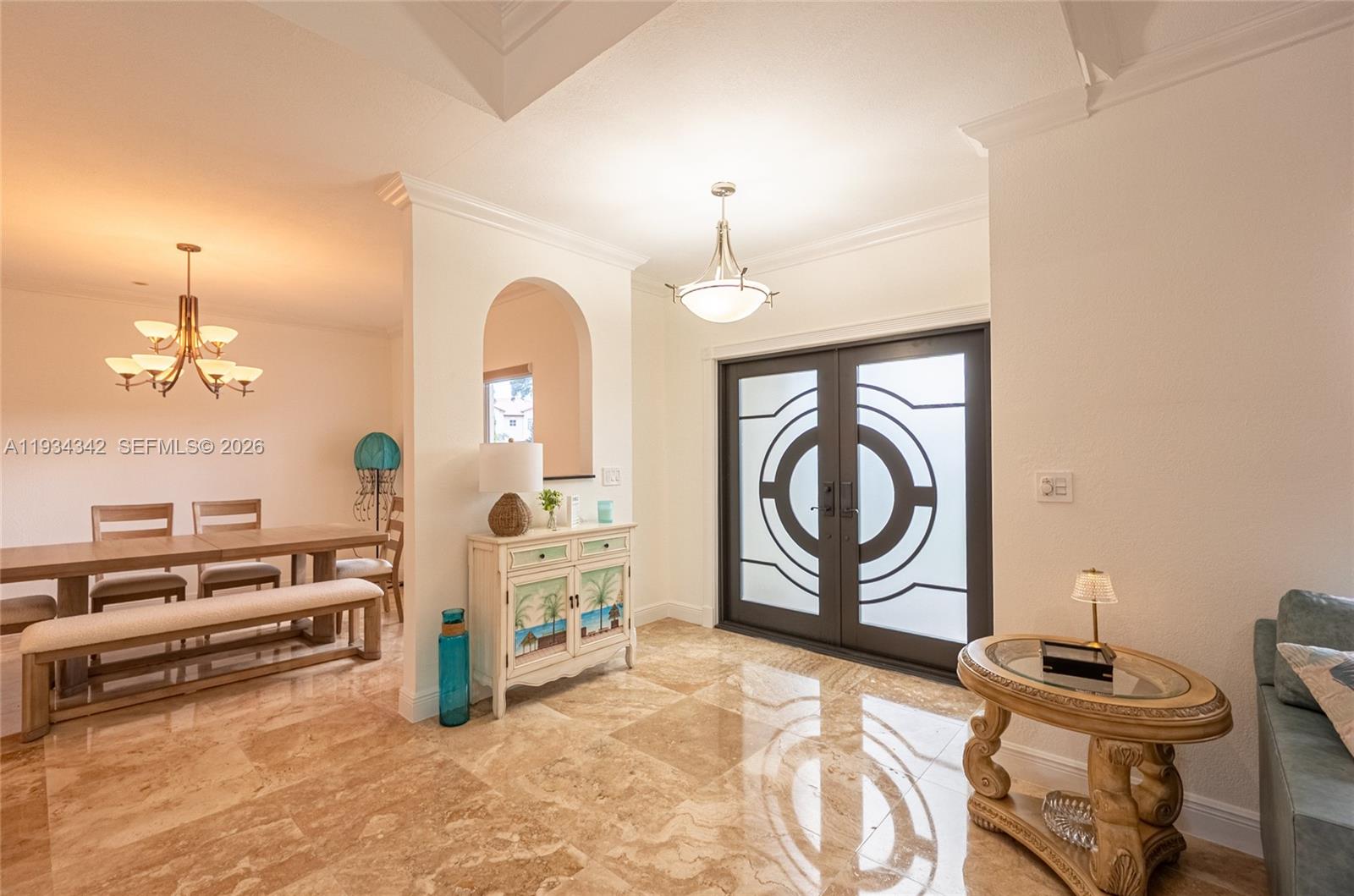 Spacious and well-maintained 3-bedroom, 2.5 bath plus a den that can easily be converted into an additional bedroom, office, or flex space. The interior showcases elegant marble flooring throughout, enhancing the home's bright and open feel. Spacious living areas flow effortlessly into the outdoor space, where you'll find a private pool, ideal for entertaining or relaxing year-round. The home also includes a convenient interior laundry room. Situated on an oversize lot, the property offers generous outdoor space and privacy. Pride of ownership is evident throughout this move-in-ready home, making it an excellent opportunity for buyers seeking quality, functionality, and flexibility.