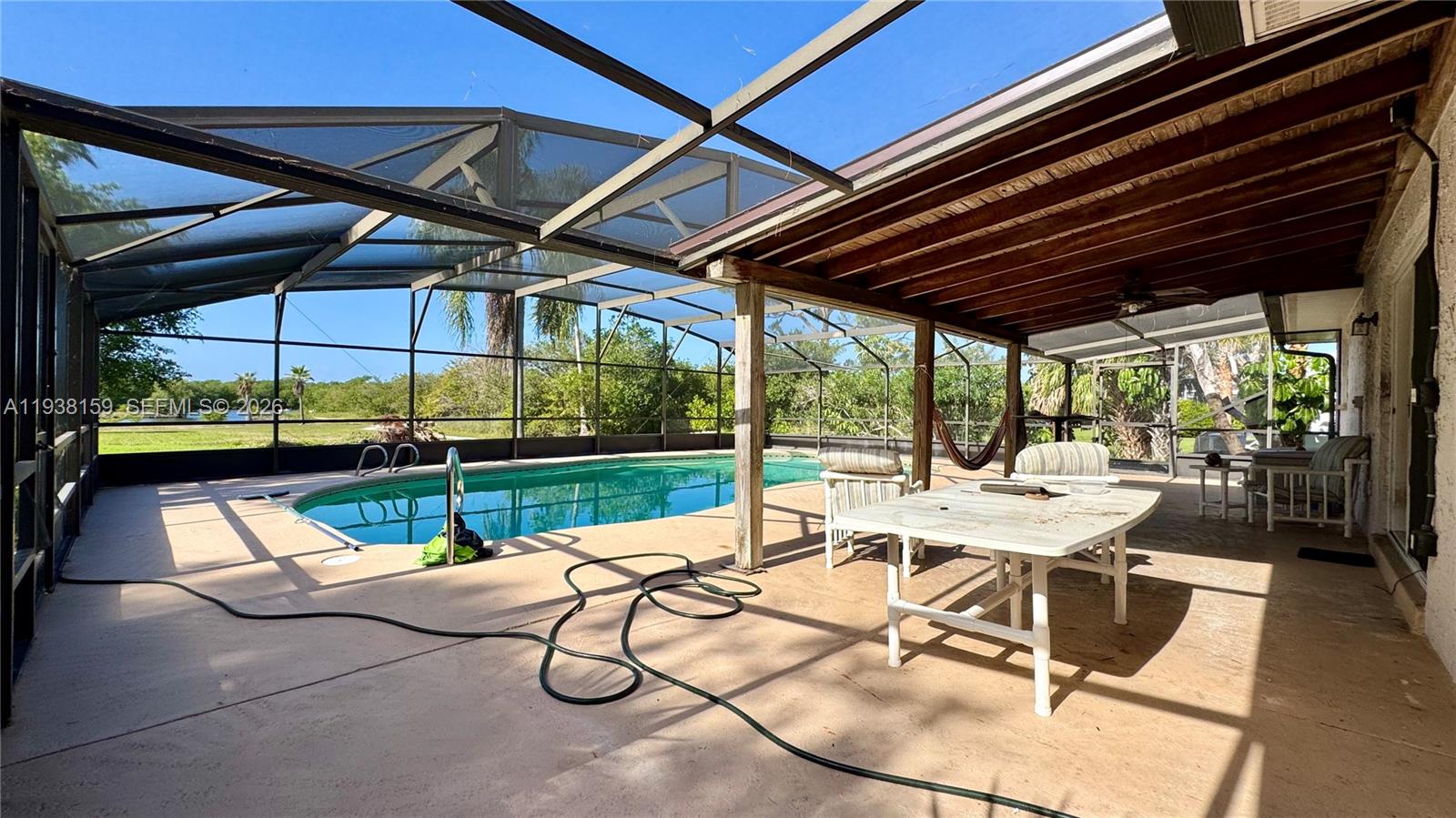 Screened-In-Pool Home, with 1.99 ACRES on NEWFOUND HARBOR/RIVERFRONT, in BEAUTIFUL, Merritt Island, Florida! This Single Family Home is Concrete Block Constructed with 3Bedrooms, 2Baths, High Impact Windows installed, ROOF was REPLACED in 2023, AC REPLACED in 2023 and NO HOA TO WORRY ABOUT! WELL on property! Plenty of room for a boat and RV. 4 MILES AWAY from Cocoa Beach sand! Plenty of Shopping close by with Top Rated Schools in all directions! Home needs some TLC/Updating.