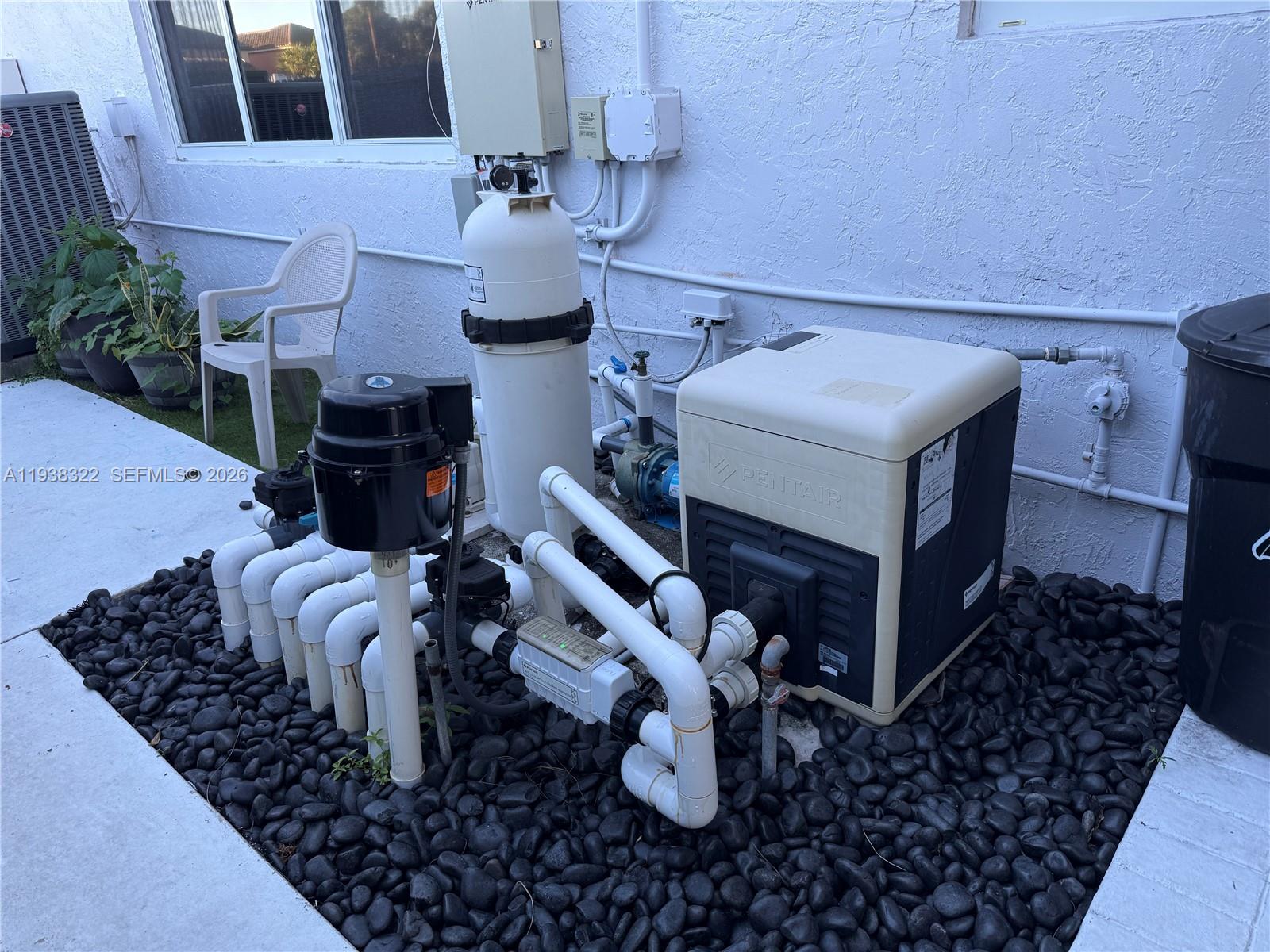 This meticulously remodeled home is situated in the desirable Marbella Park community. Officially designated as a three-bedroom, two-bathroom residence, the property includes an office space exceeding 10 x 10 feet, which offers potential for conversion into a fourth bedroom. The enclosed two-car garage provides versatility and may be restored for traditional use. Recent updates include a comprehensive refurbishment of the swimming pool in 2023, featuring new equipment, replacement of pipes, and updated back pavers. Front pavers were installed in 2024. The home is appointed with modern gas appliances, such as a stove, pool heater, tankless water heater, and clothes dryer. A generous walk-in pantry measuring 4.5 x 10 feet adds convenience. Additional amenities comprise an outdoor kitchen, six raised planter beds, a shed, and sprinklers installed in 2024 that source water from the lake. The roof was replaced in 2020, ensuring durability. Residents enjoy a range of community offerings, including a walking path encircling the lake, dog park, swing set park, and playground, all contributing to an inviting and comfortable living environment.