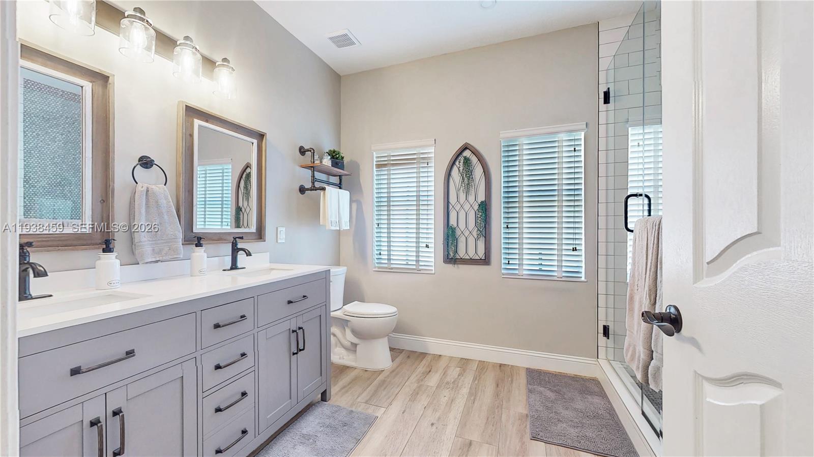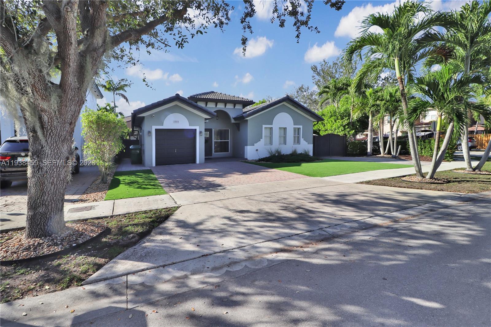 Discover this West Kendall gem featuring modern upgrades. The interior showcases sleek porcelain tiles throughout the main living areas, complemented by warm wood-like laminate flooring in the bedrooms. Elegant crown moldings lead into a fully updated kitchen complete with quartz countertops, a stylish backsplash, and recessed lighting. Both bathrooms have been tastefully modernized. For added peace of mind, the home is equipped with impact-resistant front and back doors. The exterior is an entertainer's delight, featuring a pergola overlooking a refreshing pool and ample side space for parking a boat. This move-in-ready home combines comfort, style, and utility in a highly sought-after location.