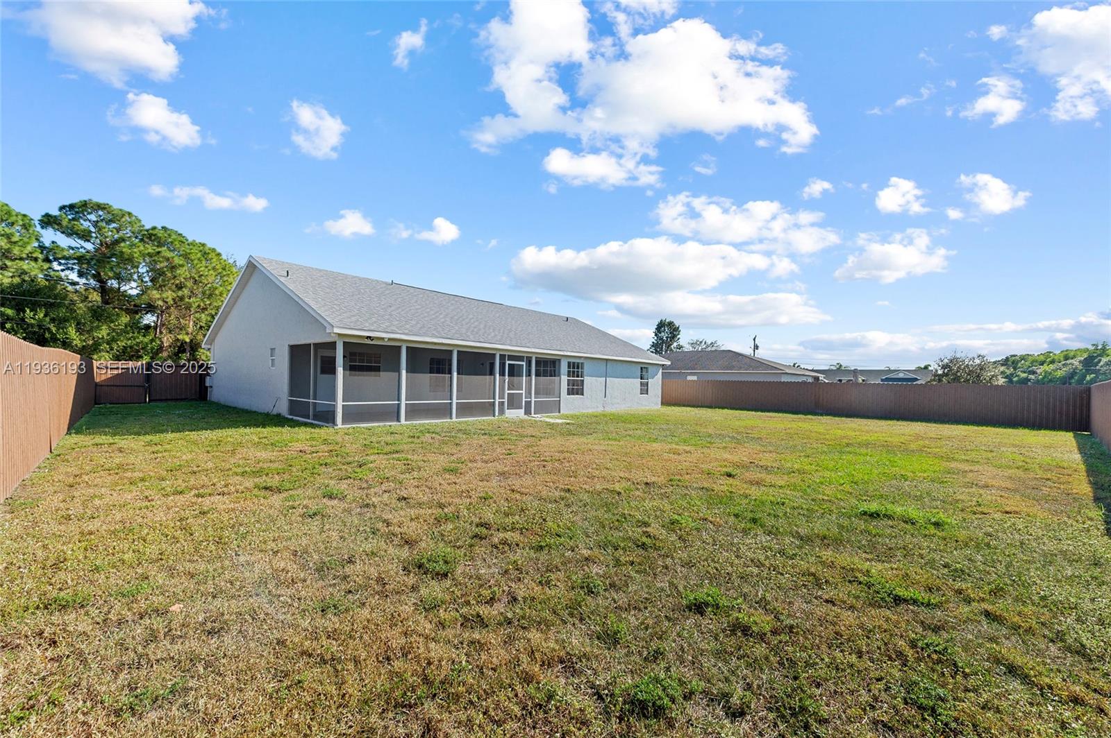 Welcome to this beautifully maintained 3-bedroom, 2-bath home located in the heart of Port St. Lucie. Offering approximately 1,900 square feet of living space, this single-story residence features a highly desirable split floor plan and an open-concept layout perfect for both everyday living and entertaining. The kitchen is a true centerpiece, showcasing rich cherry wood cabinetry, granite countertops, stainless steel appliances, a pantry, and an oversized island ideal for cooking, gathering, and hosting. Vaulted ceilings and tile flooring throughout enhance the home’s bright, airy feel. The spacious primary suite offers a private retreat complete with a large walk-in closet and a generous en-suite bathroom. Step outside to enjoy Florida living at its best with a screened-in patio overlooking a massive, fully fenced backyard - perfect for relaxing, pets, or future outdoor enhancements. Additional highlights include NO HOA, 2022 Roof, 2020 A/C, and 2022 water heater, providing peace of mind for years to come. Conveniently located just minutes from shopping, dining, schools, parks, and major highways. This home truly checks all the boxes - schedule your private showing today!